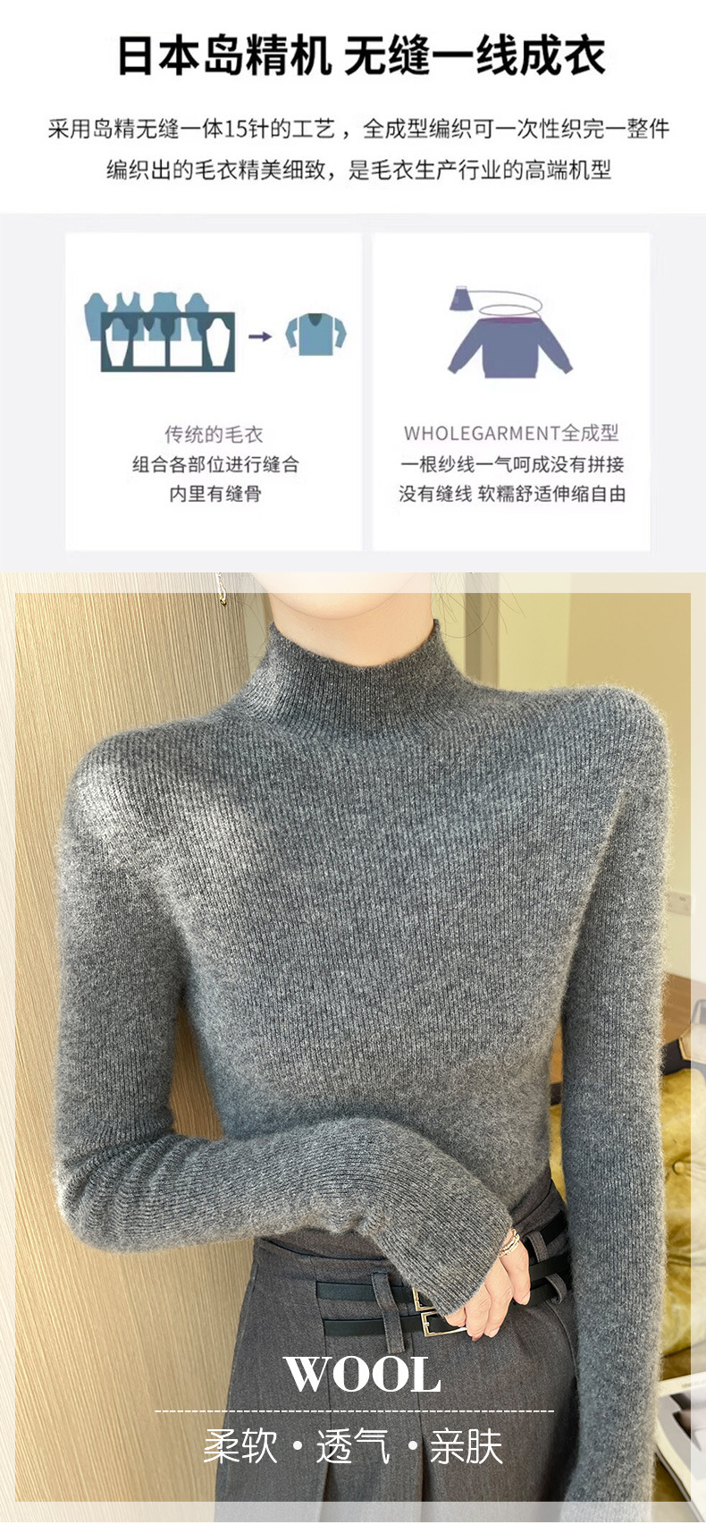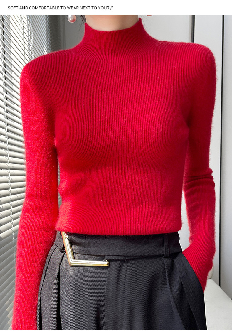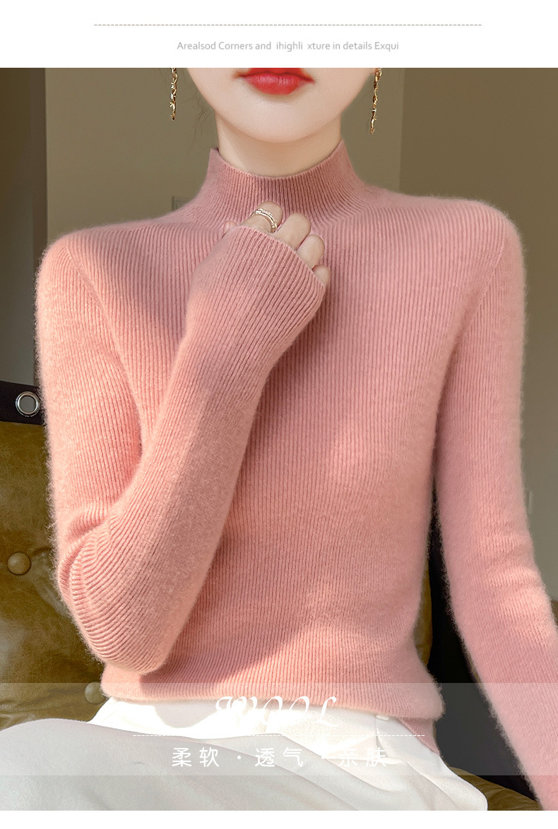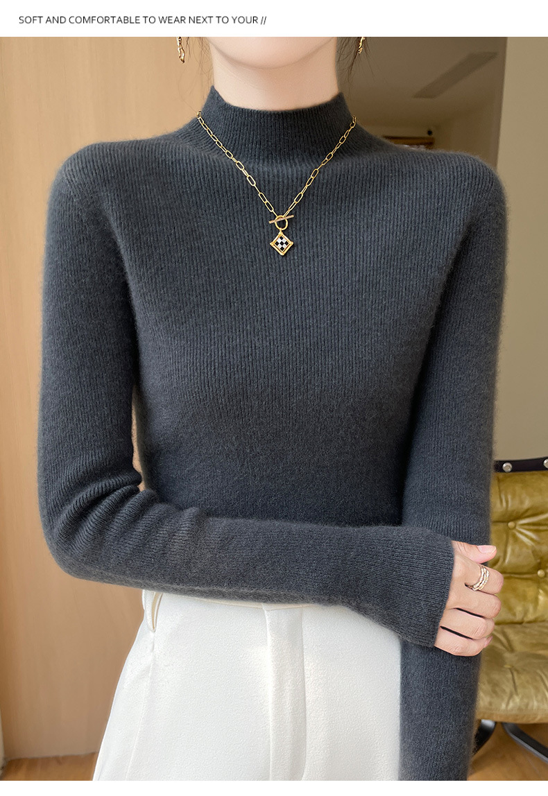 批发一线成衣无缝半高领打底衫秋冬修身针织衫女百搭高领毛衣内搭