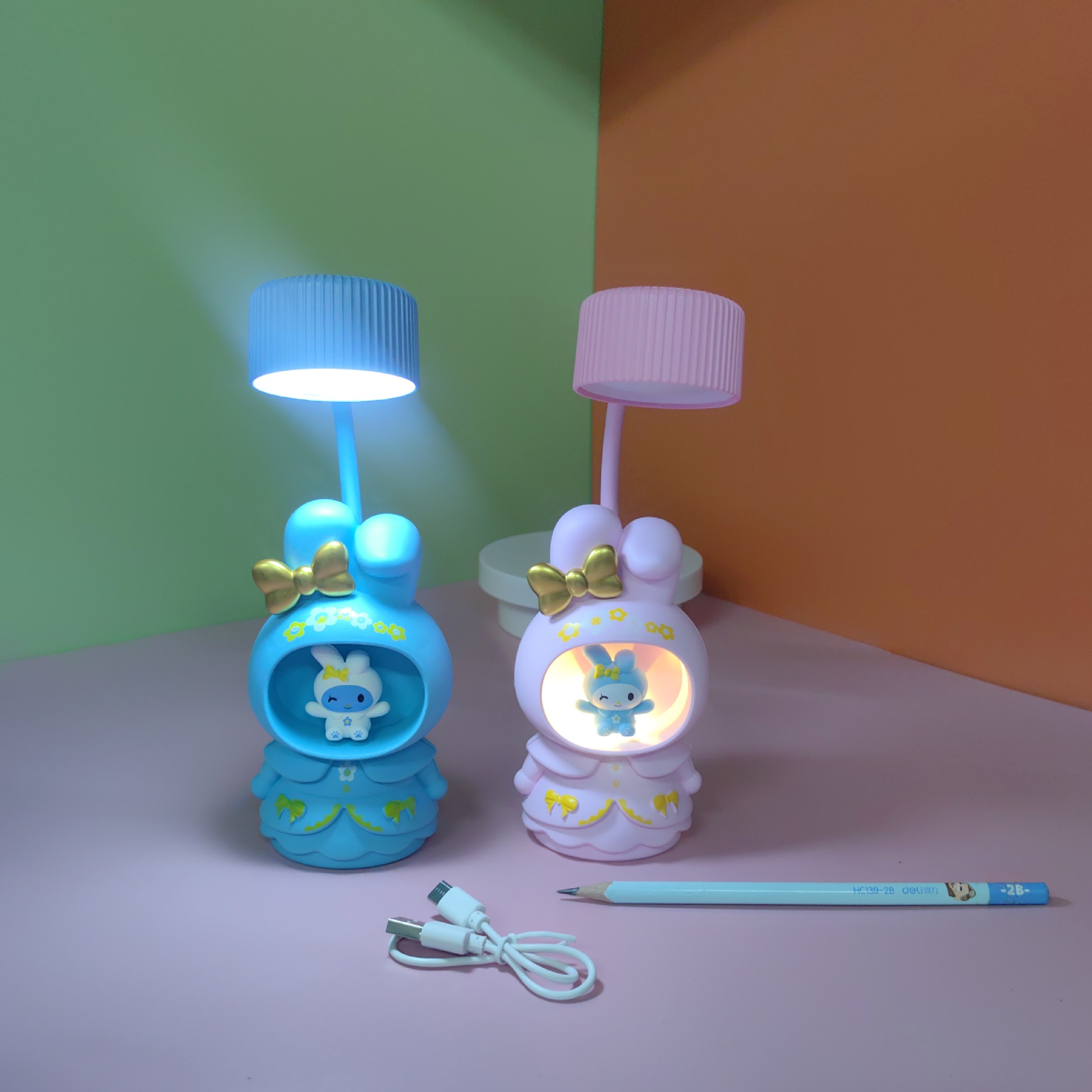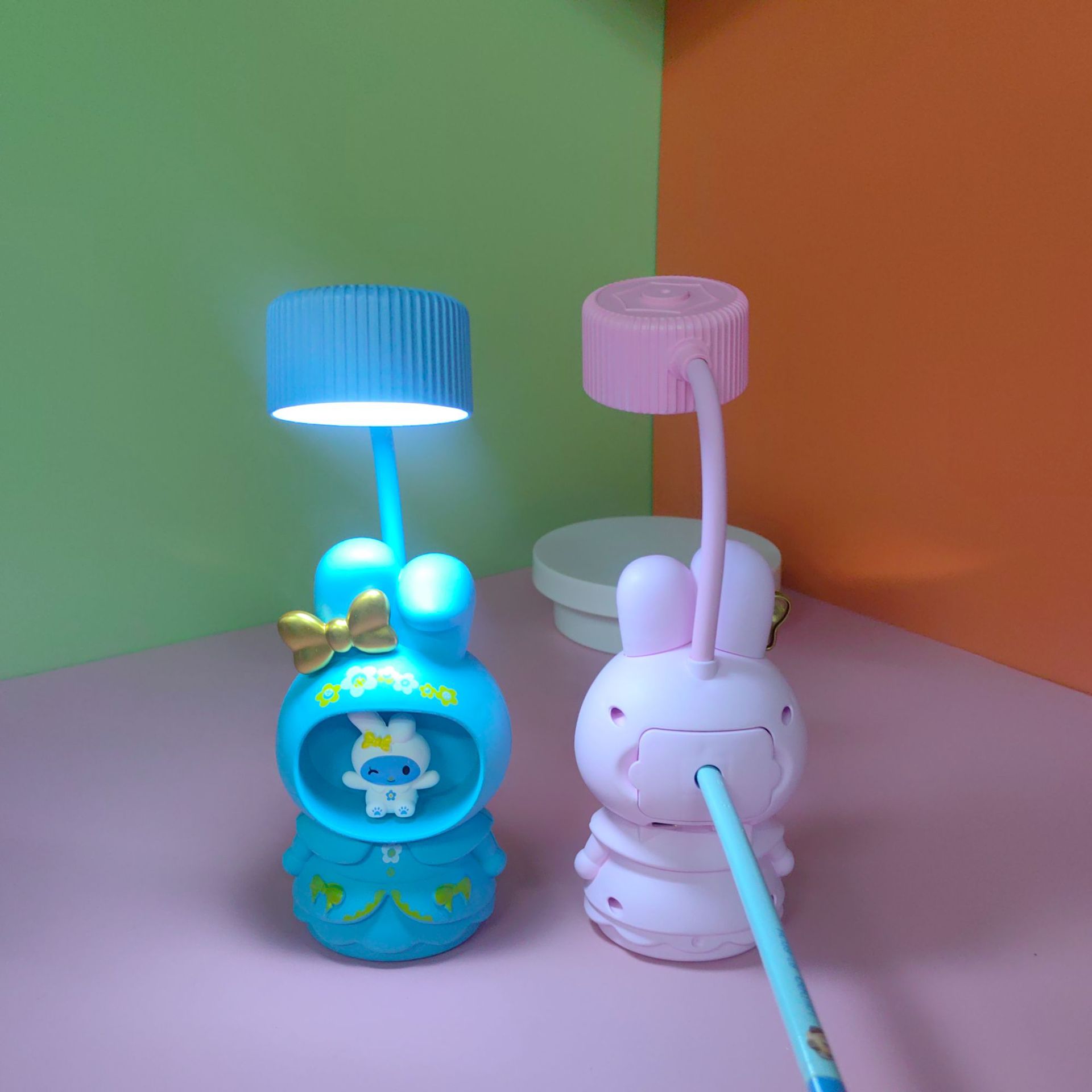 台灯小兔子铅笔削学生专用护眼轻奢高级感学习够亮充插两用台灯