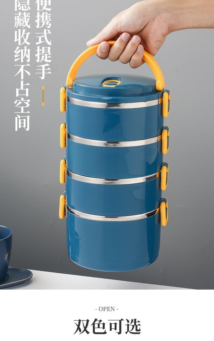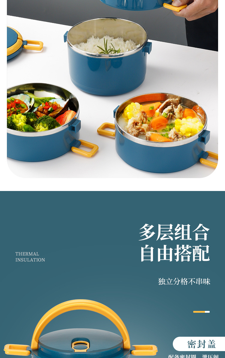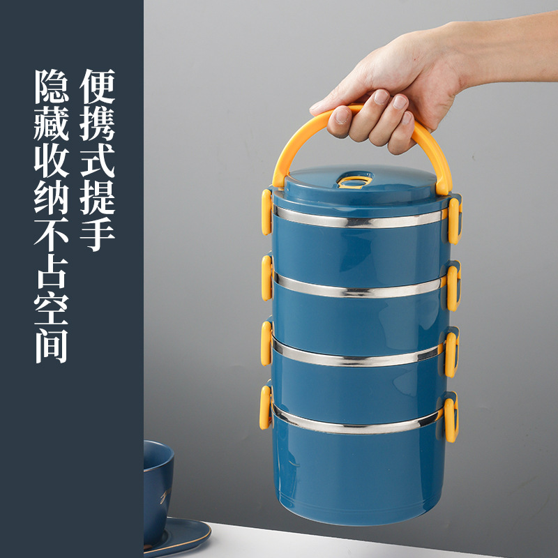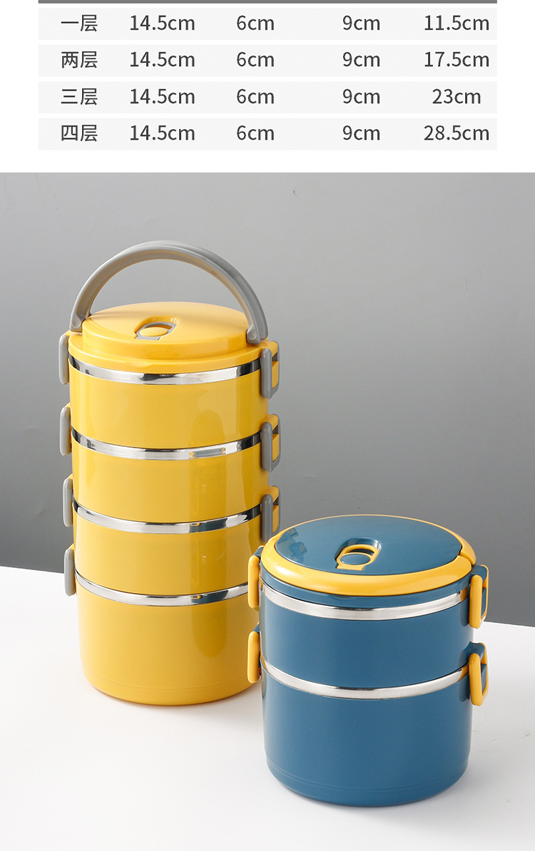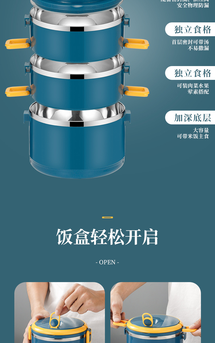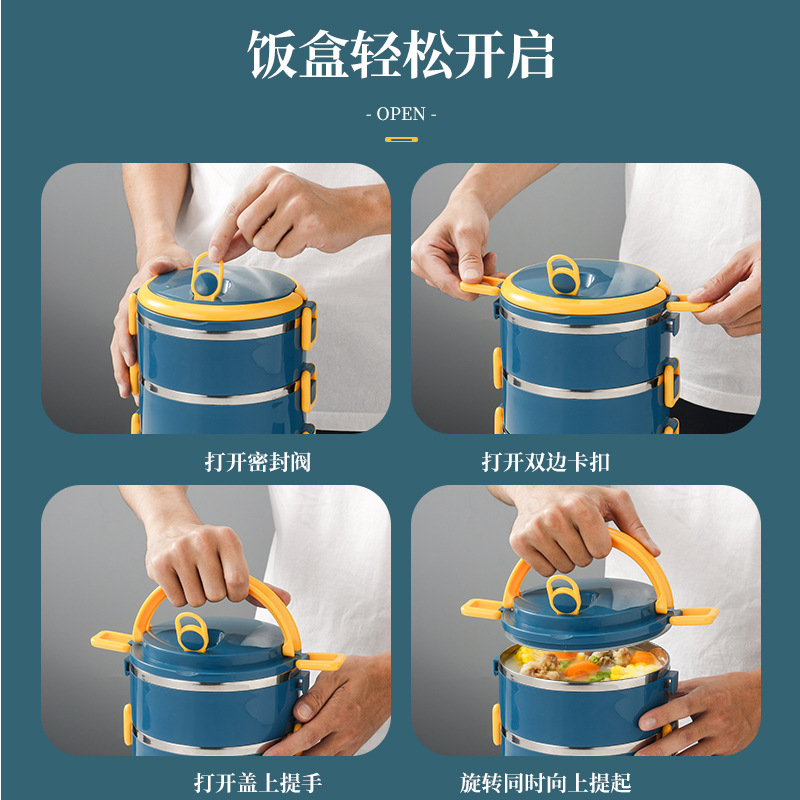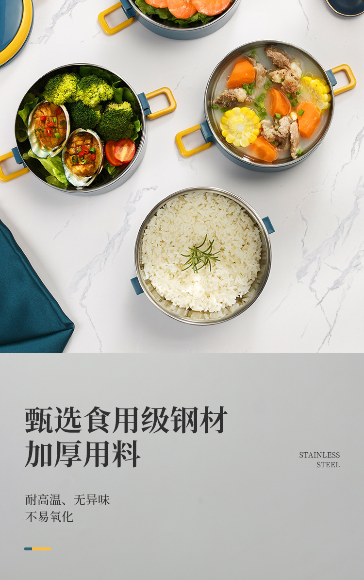 厂家直供不锈钢保温饭盒多层圆形便当盒大容量分格餐盒印刷LOGO