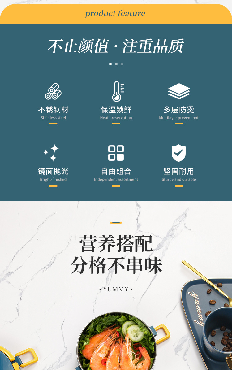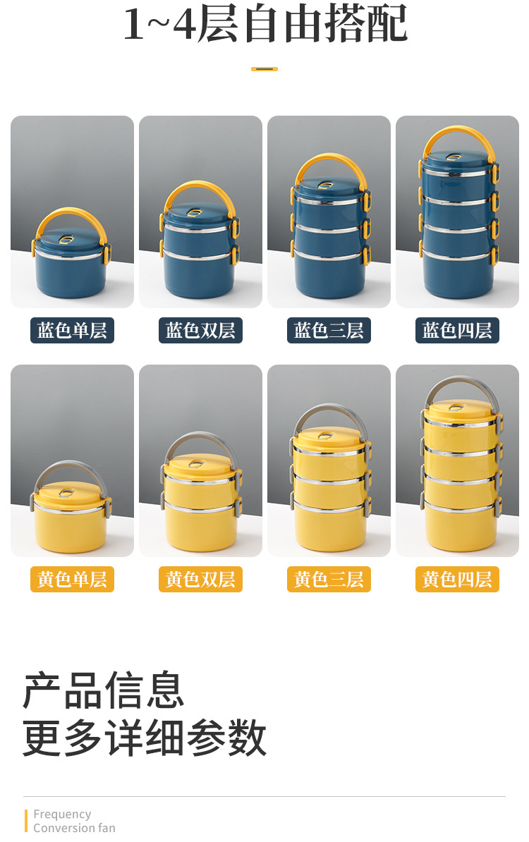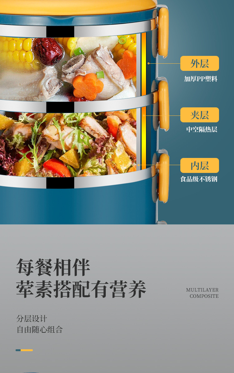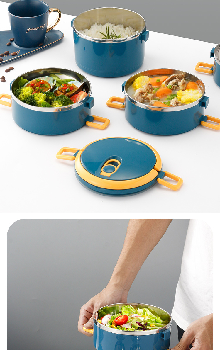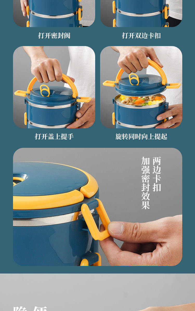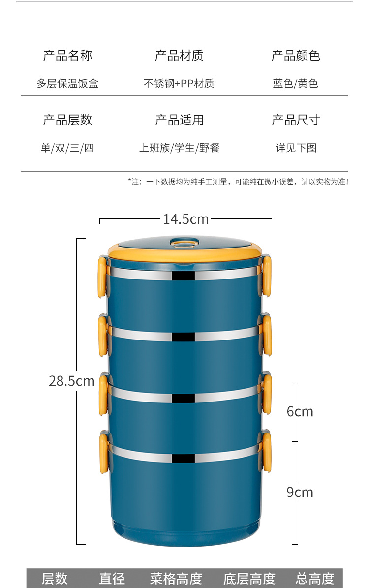厂家直供不锈钢保温饭盒多层圆形便当盒大容量分格餐盒印刷LOGO