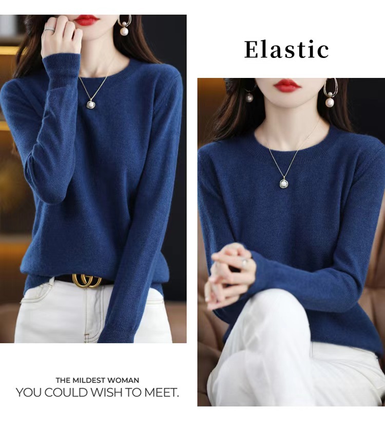 新款秋冬圆领羊毛针织衫打底衫宽松内搭羊毛女毛上衣时尚百搭潮牌