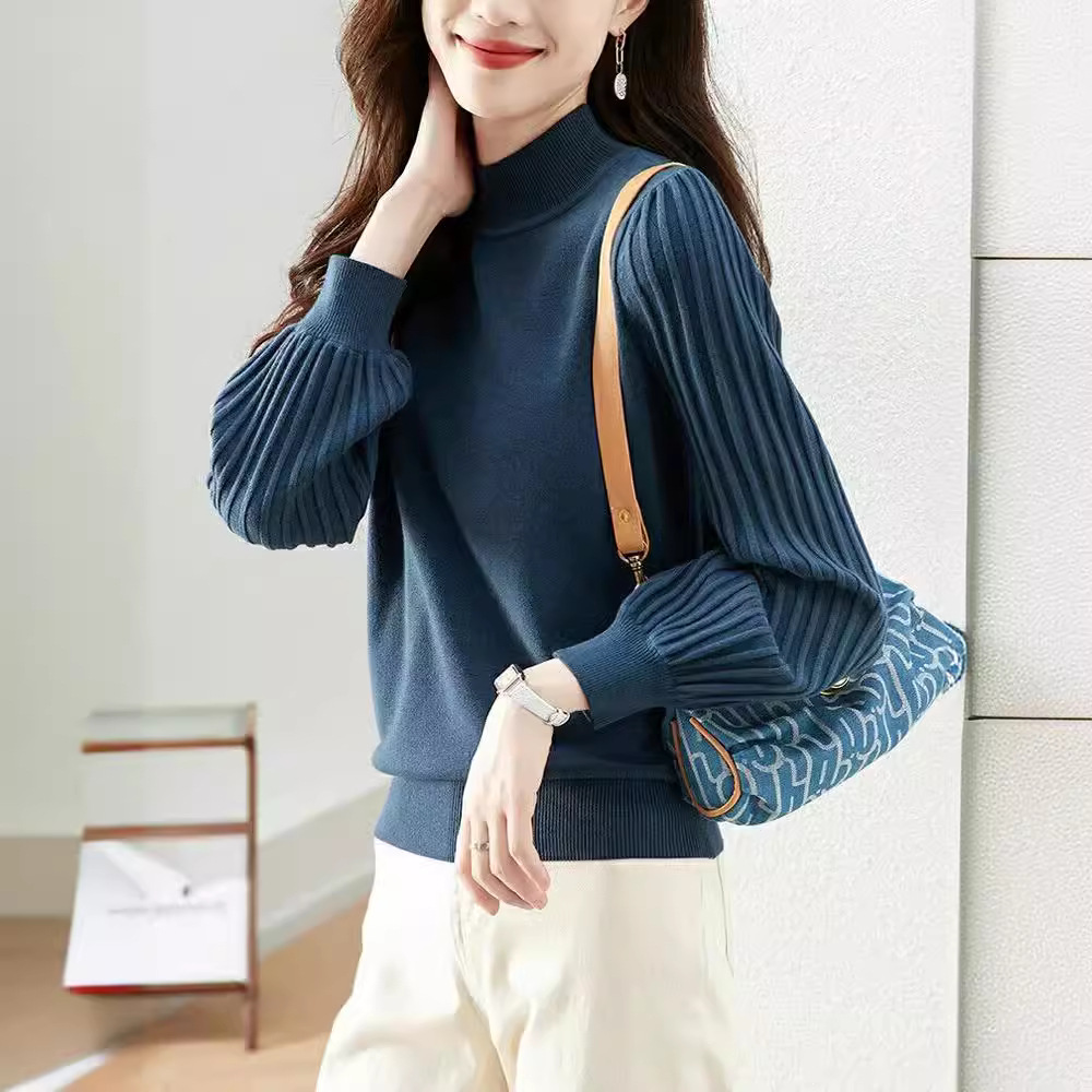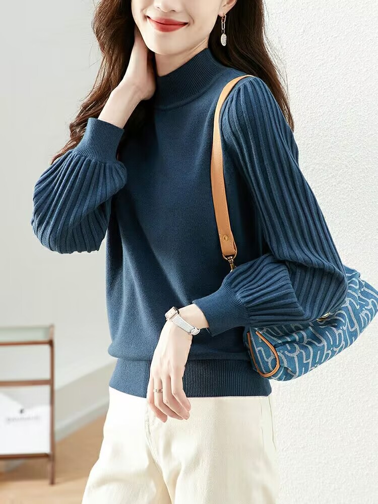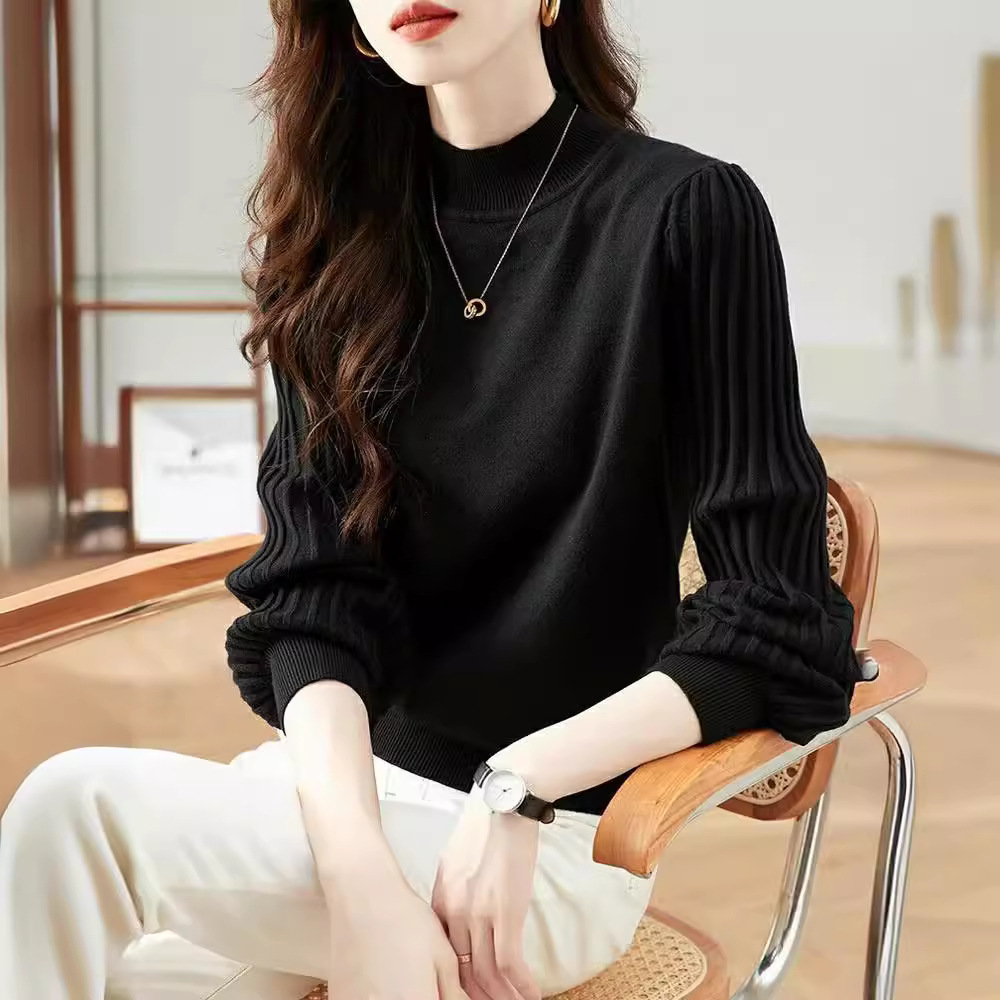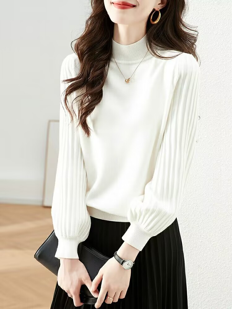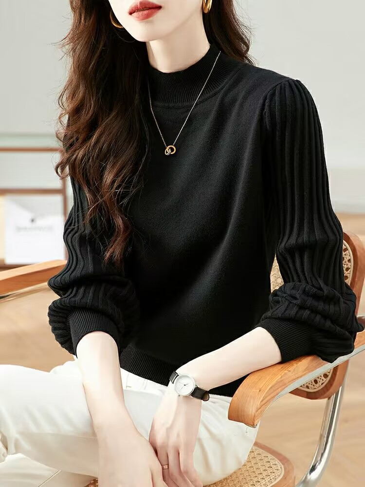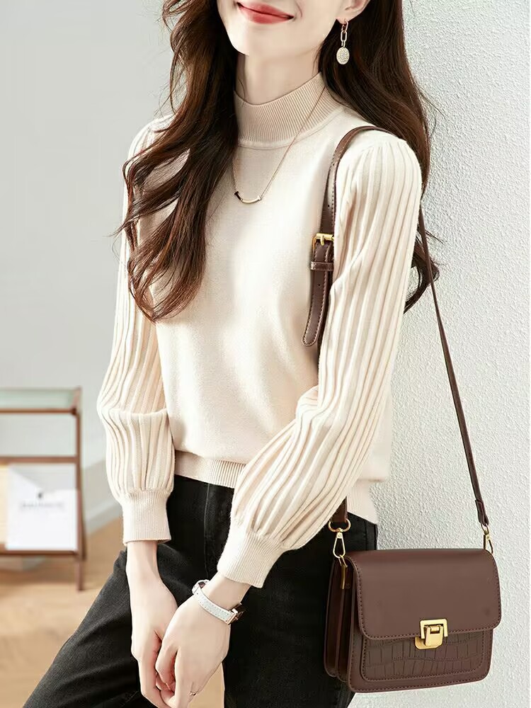 半高领打底衫轻奢洋气秋冬显瘦百搭休闲坑条长袖套头羊绒保暖毛衣