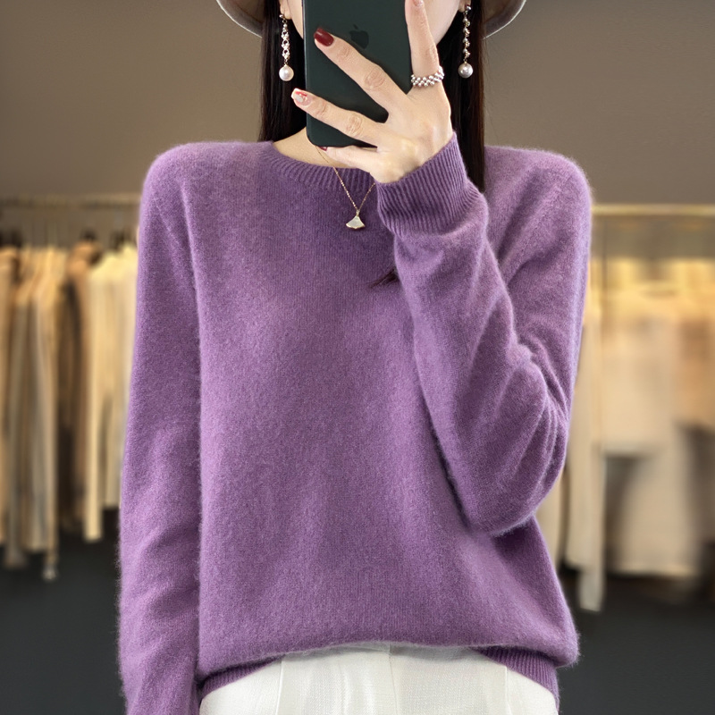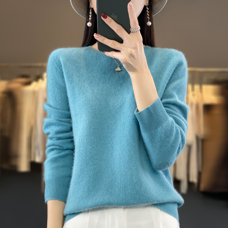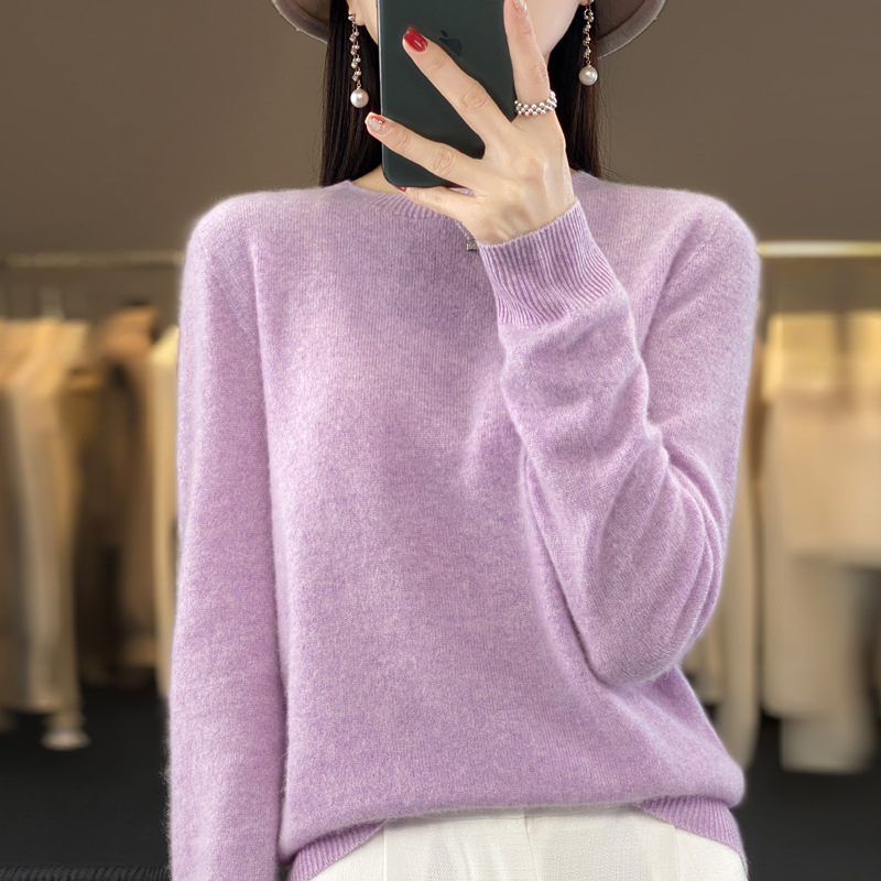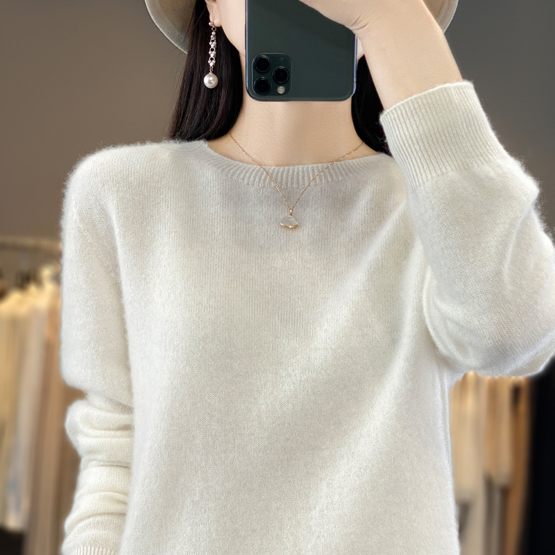一线成衣圆领羊毛衫女宽松针织打底毛衣长袖纯色上衣秋冬新款套头