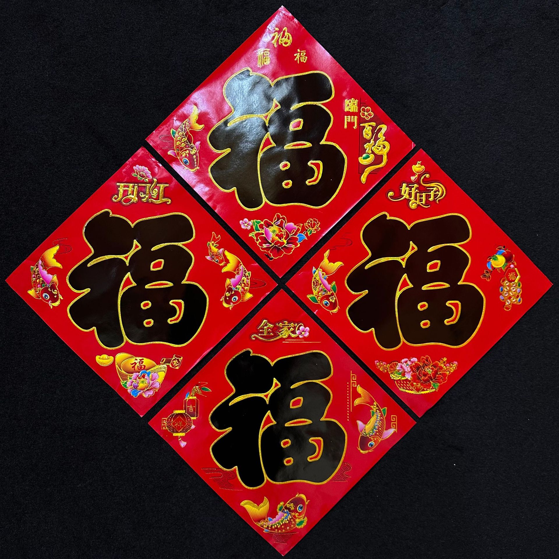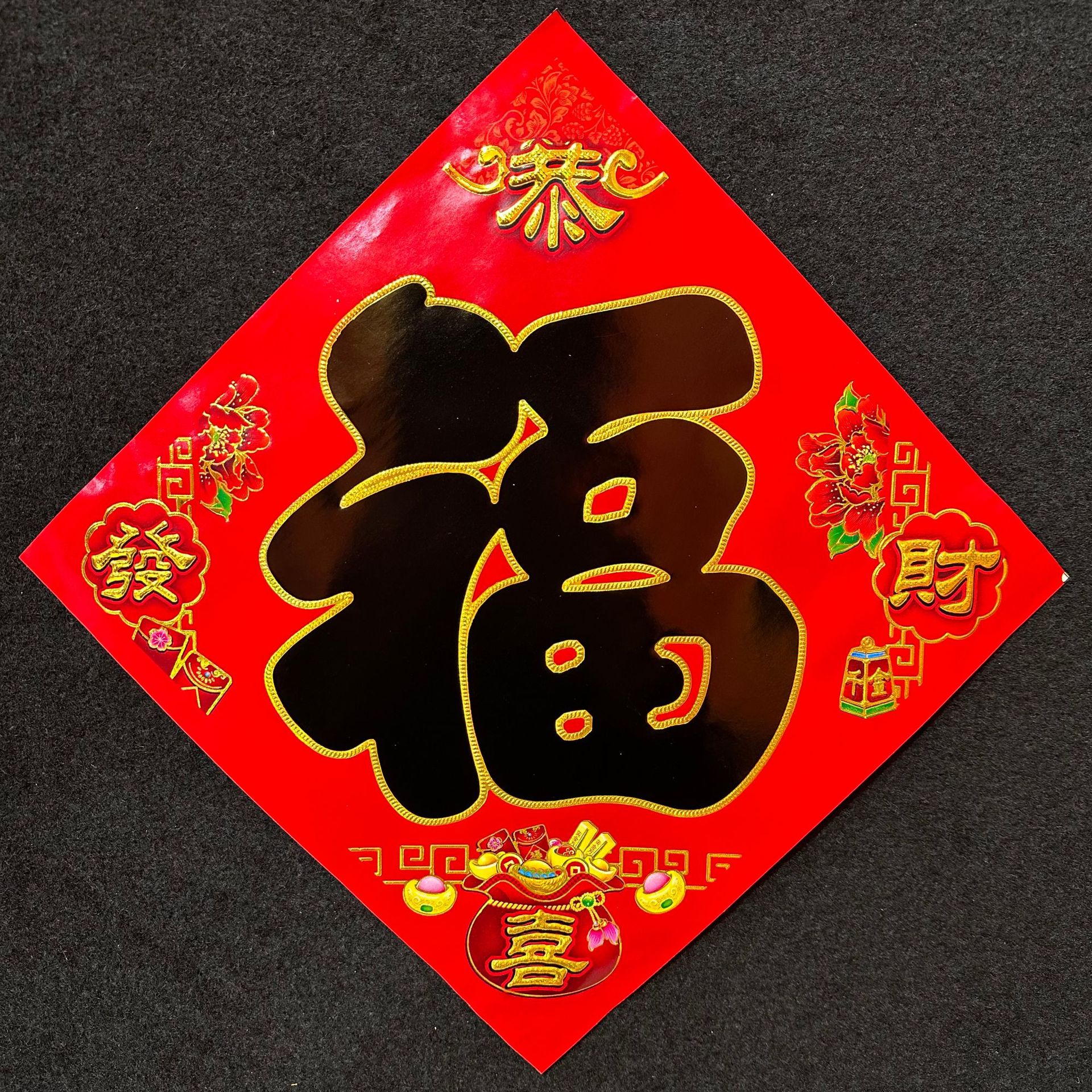 彩金铜版纸烫金福字金字满烫金福大门中国风斗方黑字金字福字厂家