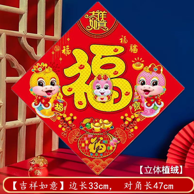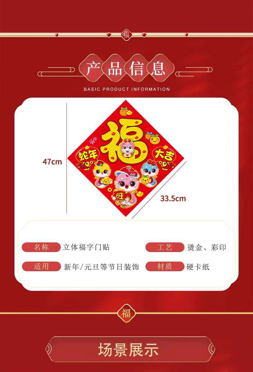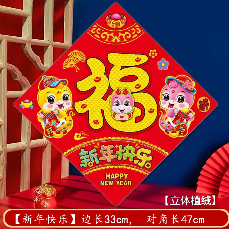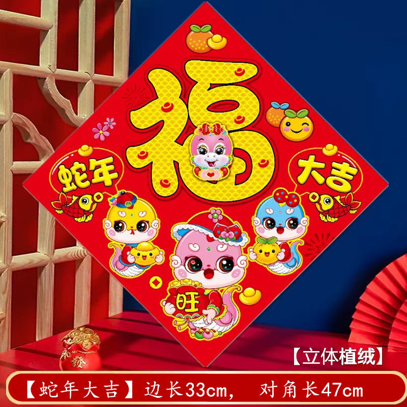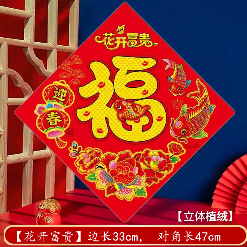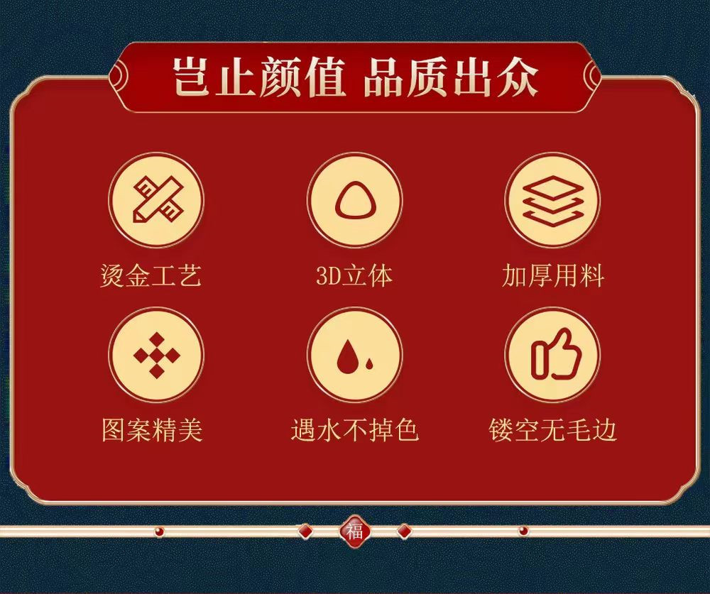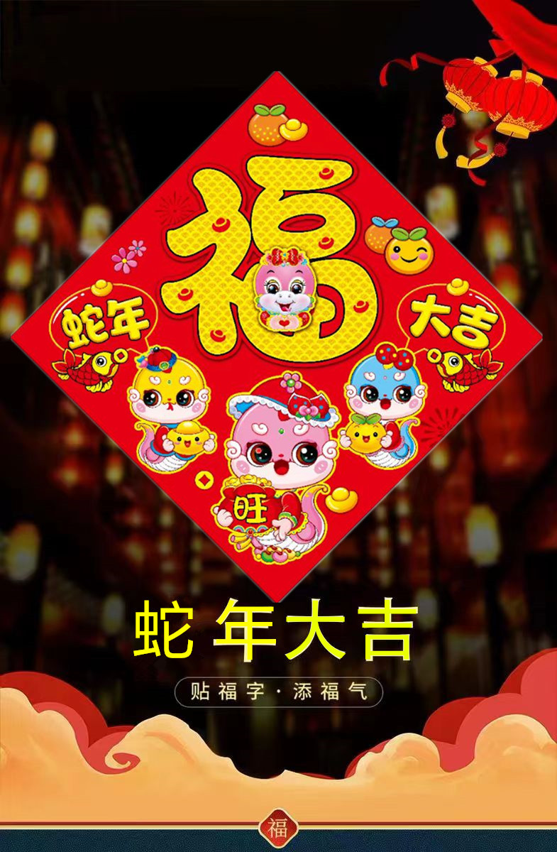 春节生肖福字新款高档植绒金粉立体福字门贴 春节生肖福字贴年画