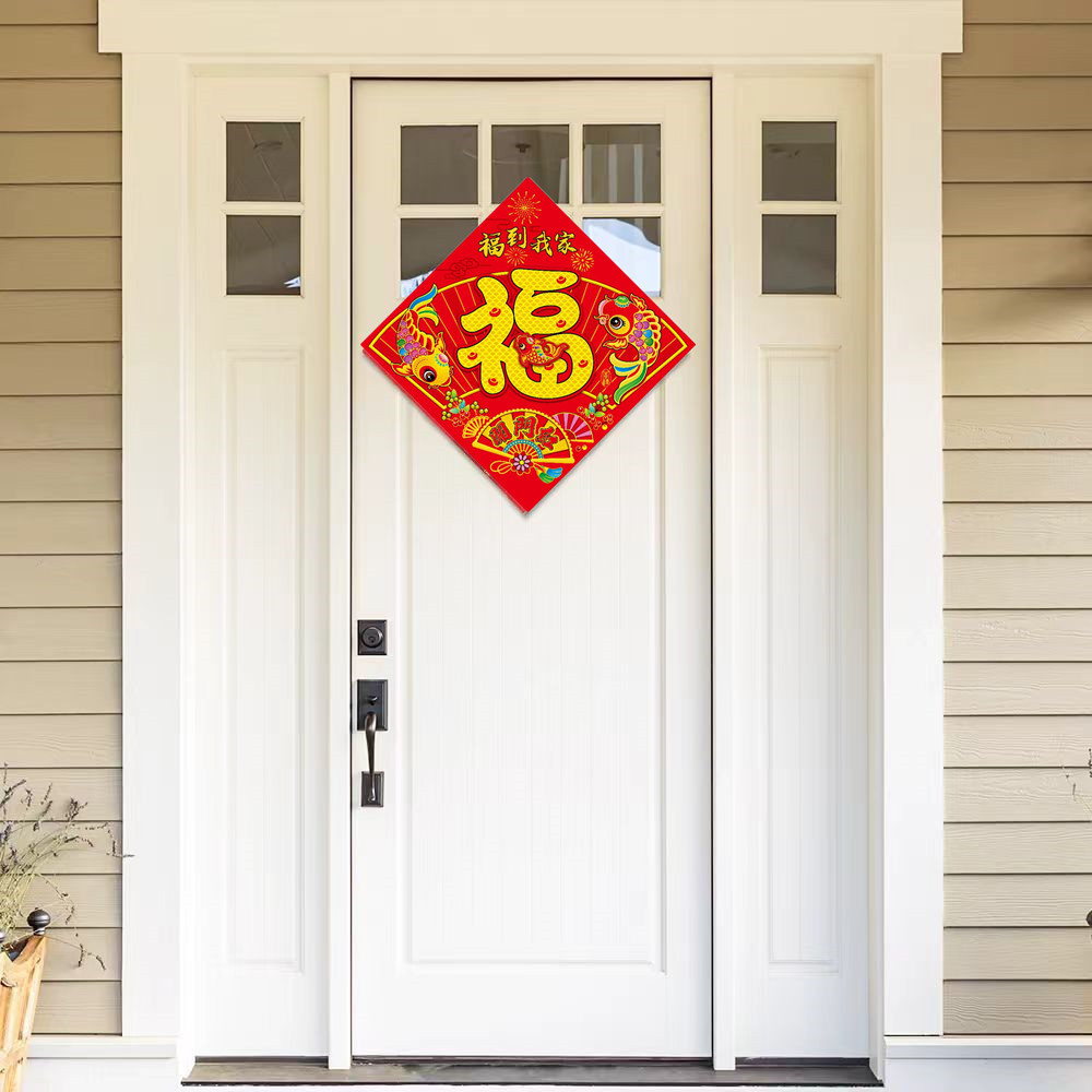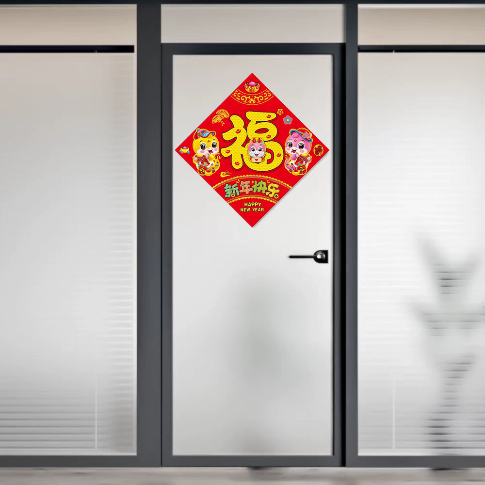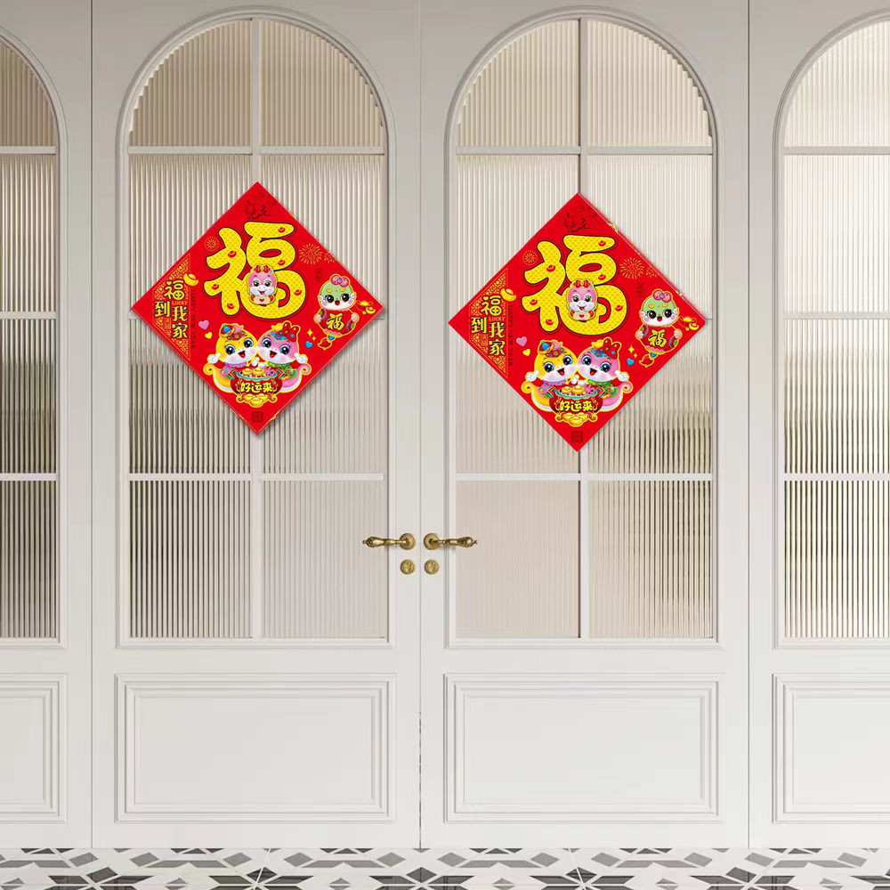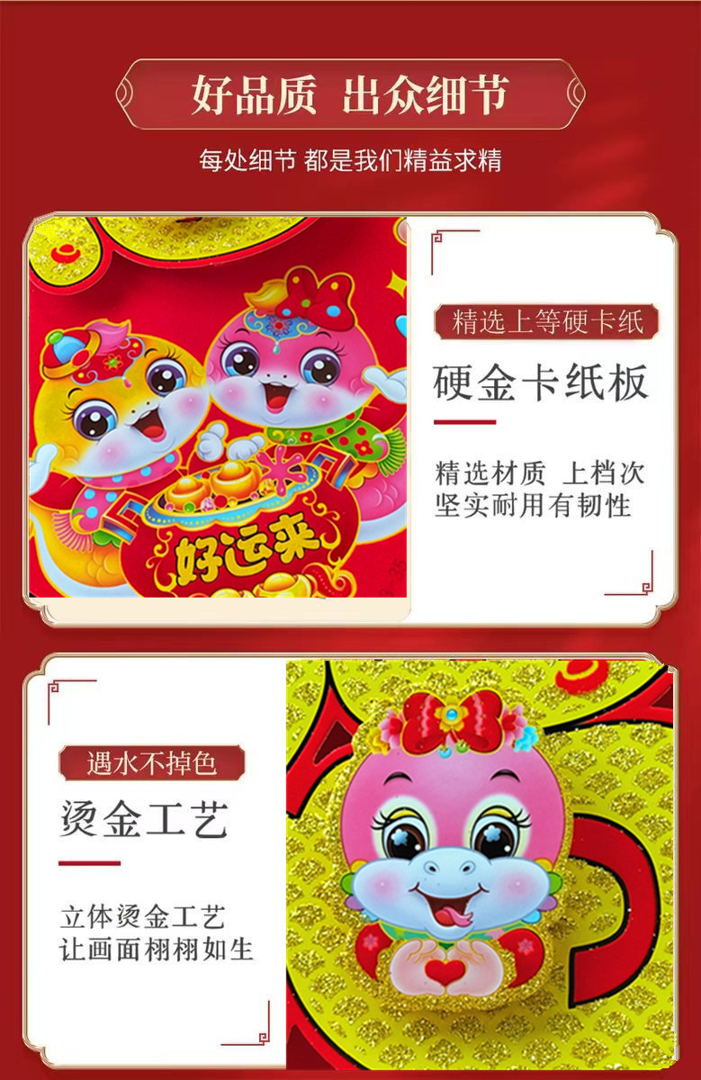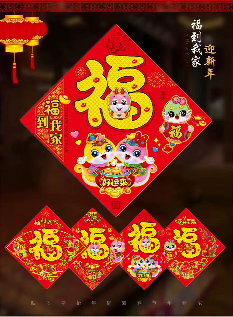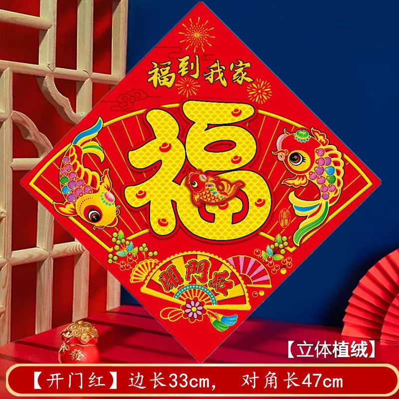 春节生肖福字新款高档植绒金粉立体福字门贴 春节生肖福字贴年画