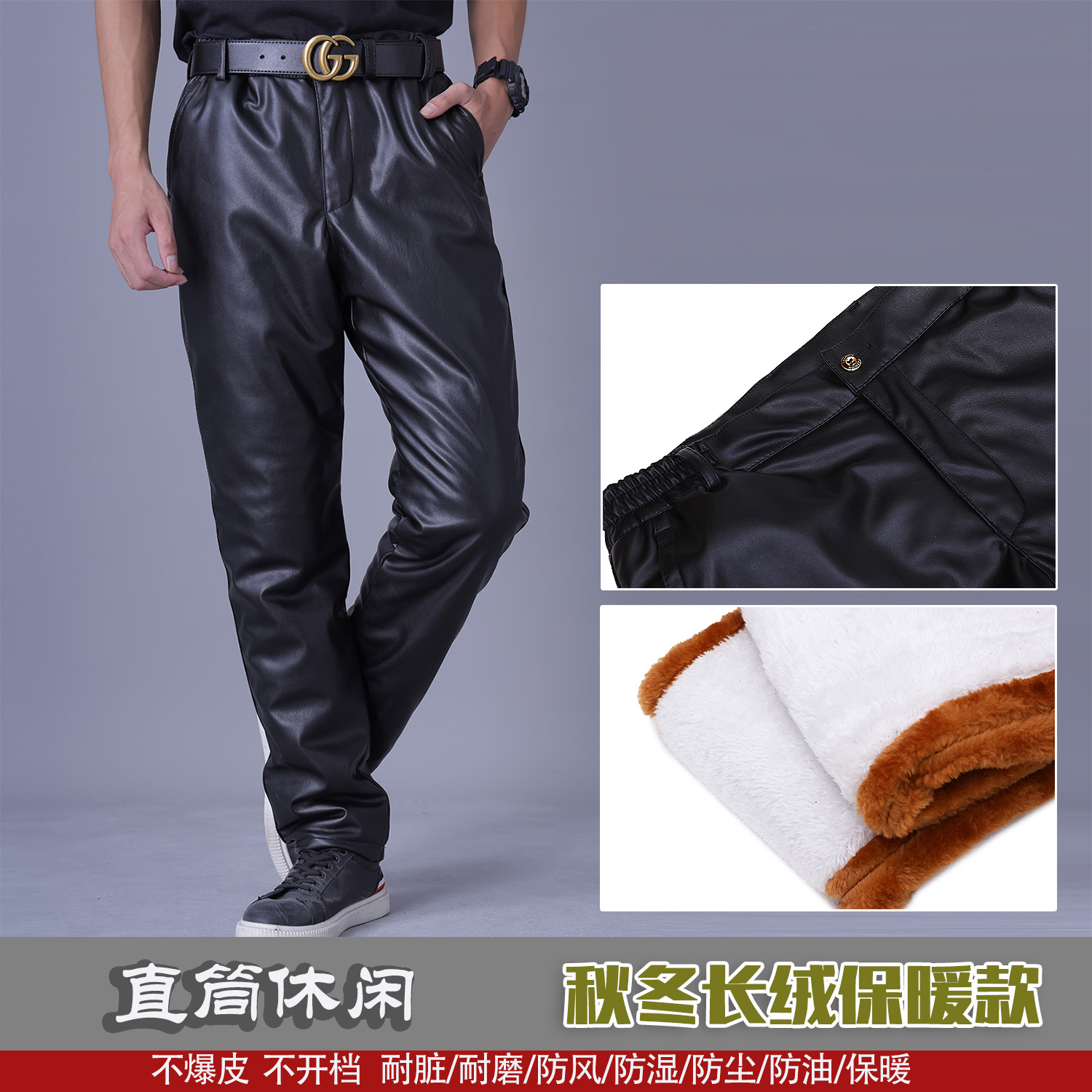 秋冬款男式皮裤男挡风直筒机车保暖男士中老年加绒加厚PU皮裤