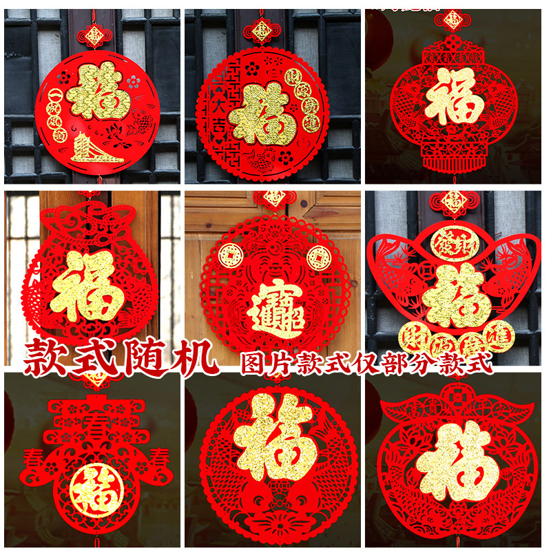2025新年春节过年福字挂件中国结绒布毛毡布装饰 无纺布挂饰批发