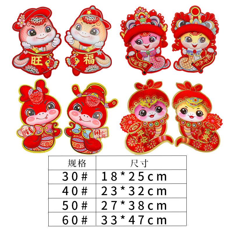 2025蛇年新款高档立体金粉福字 生肖植绒三层烫金福 春节年货批发