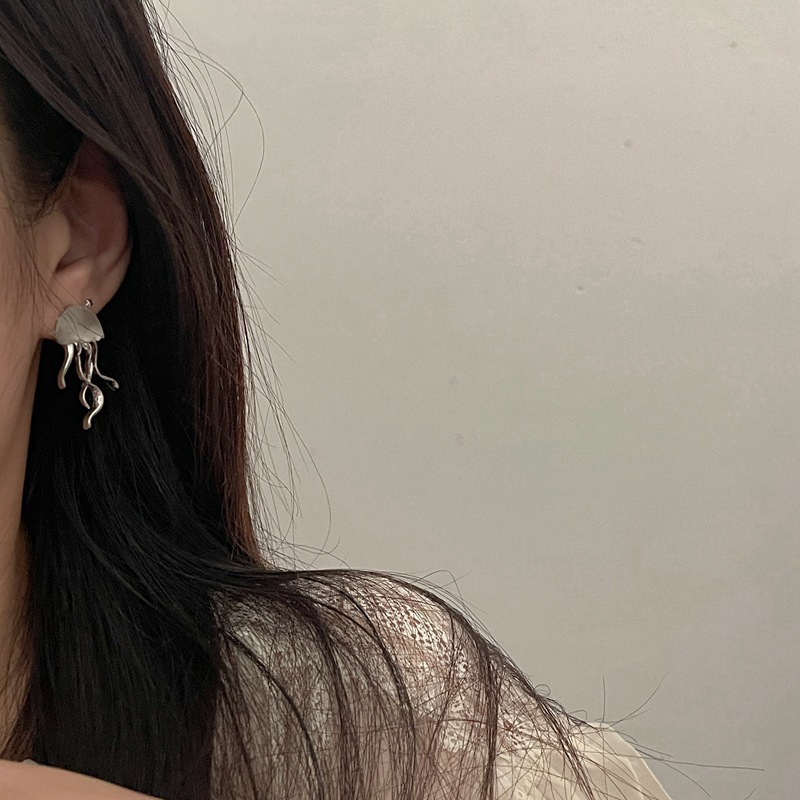 银针韩国东大门新款水母耳环时尚创意设计感耳钉小众冷淡风耳饰女