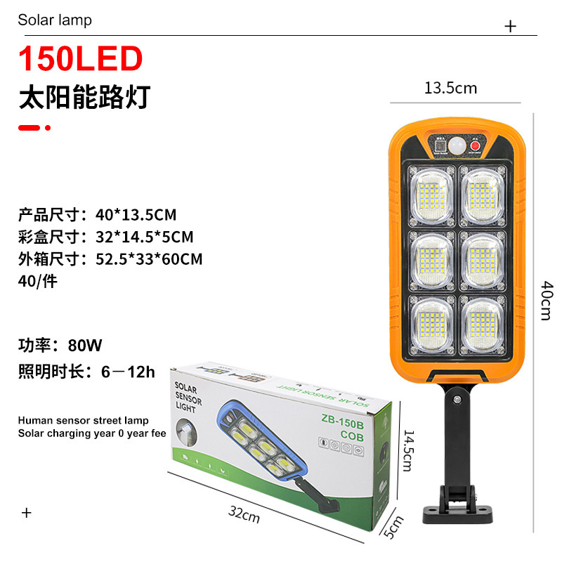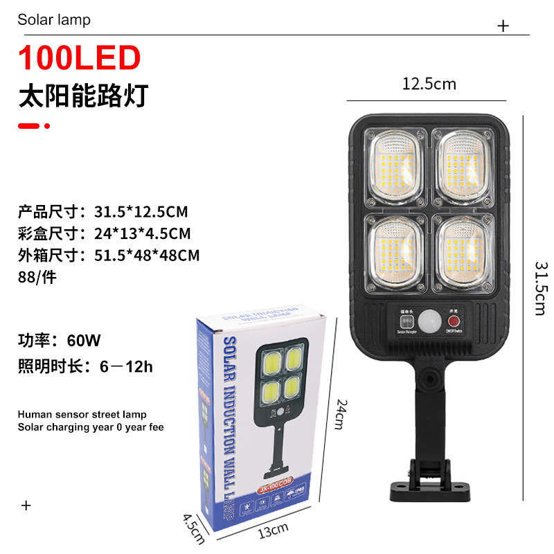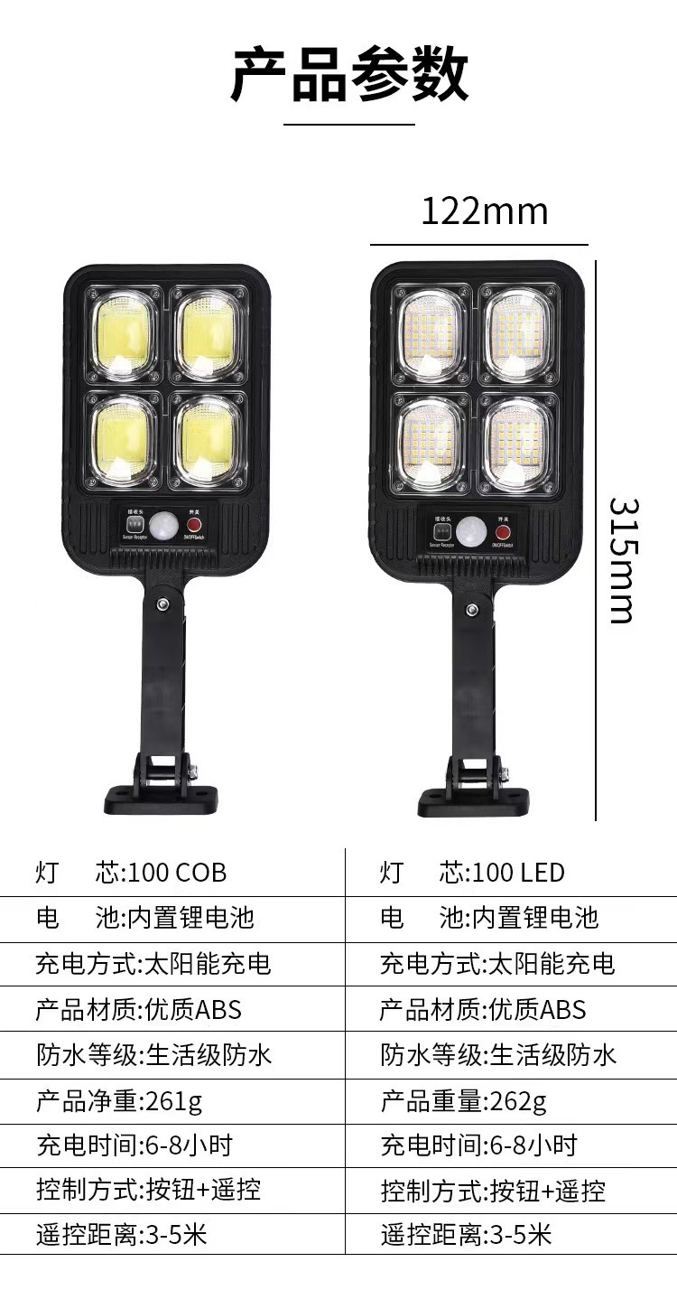跨境户外太阳能板感应路灯LED一体家用照明COB庭院壁灯solarlight