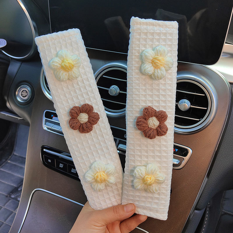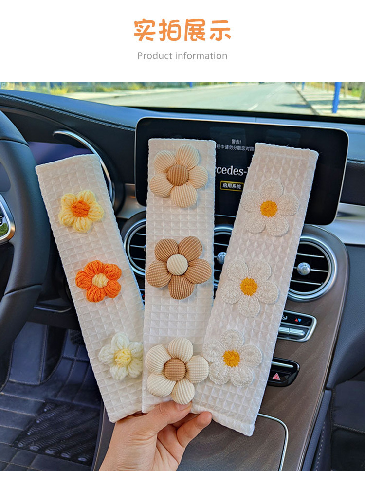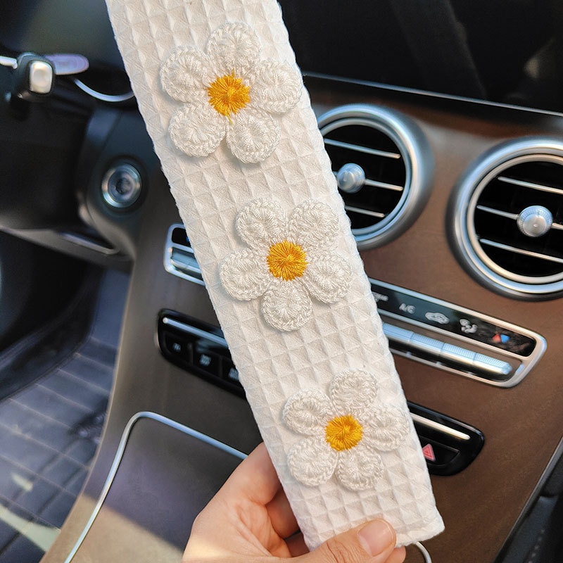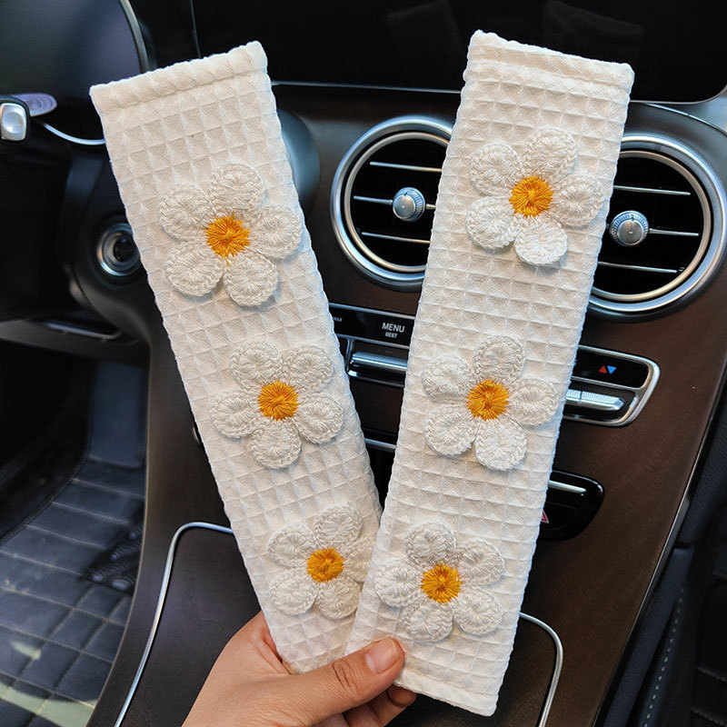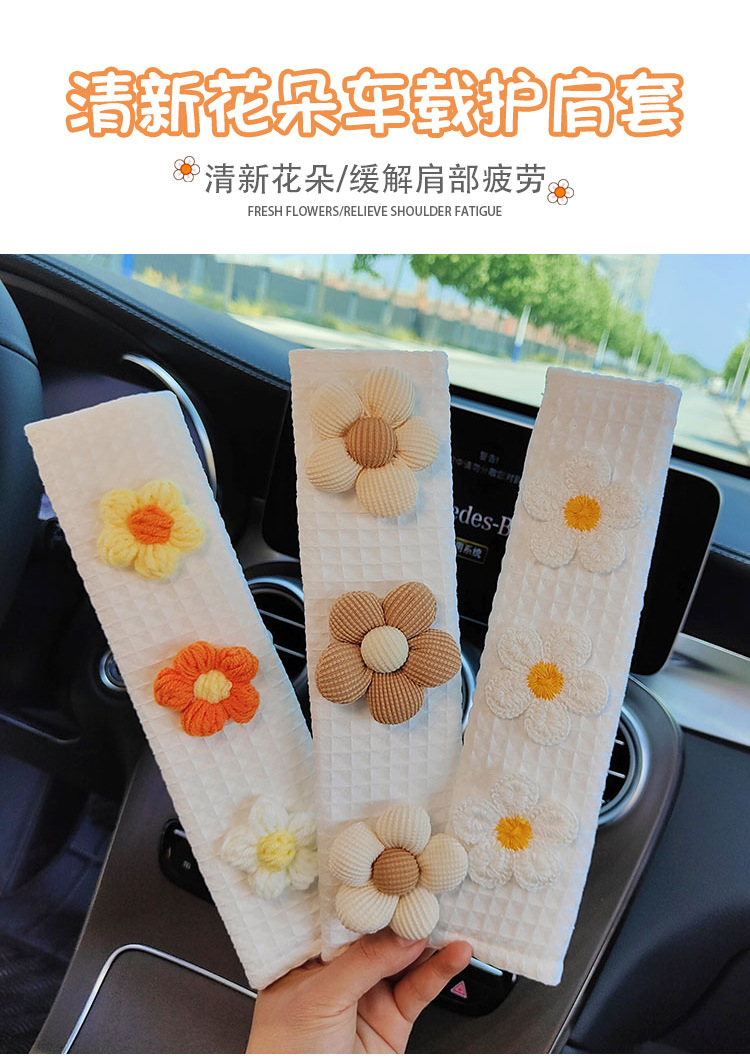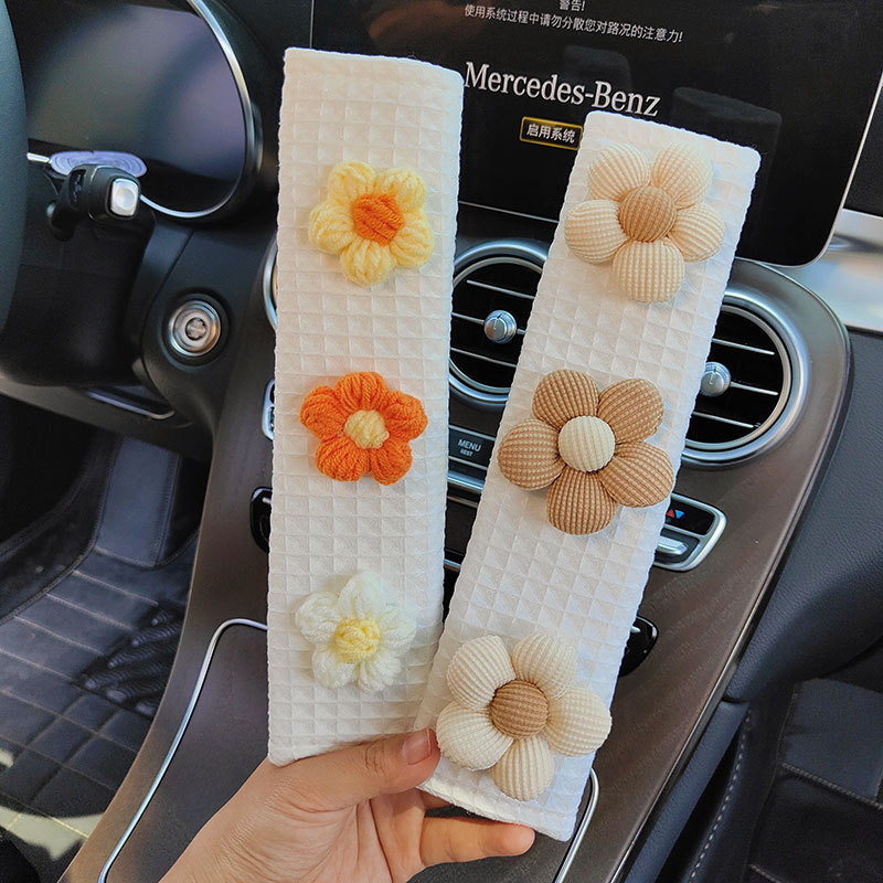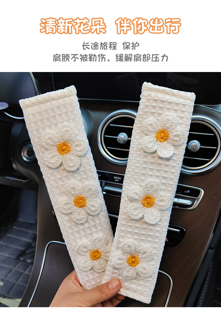 汽车带护肩套女可爱小清新花朵车载保险带套一对四季通用