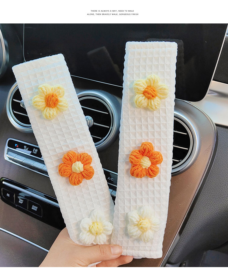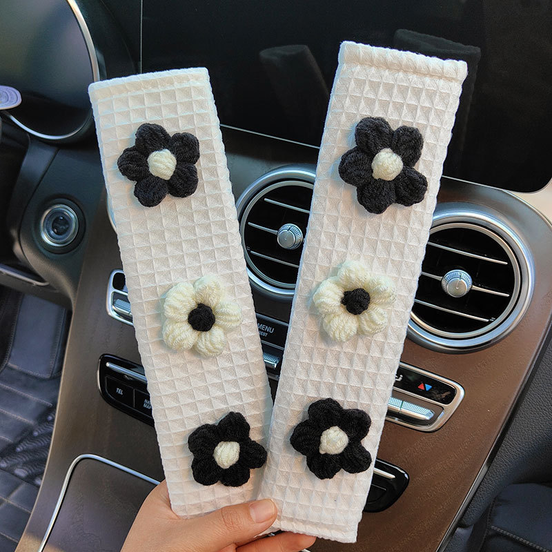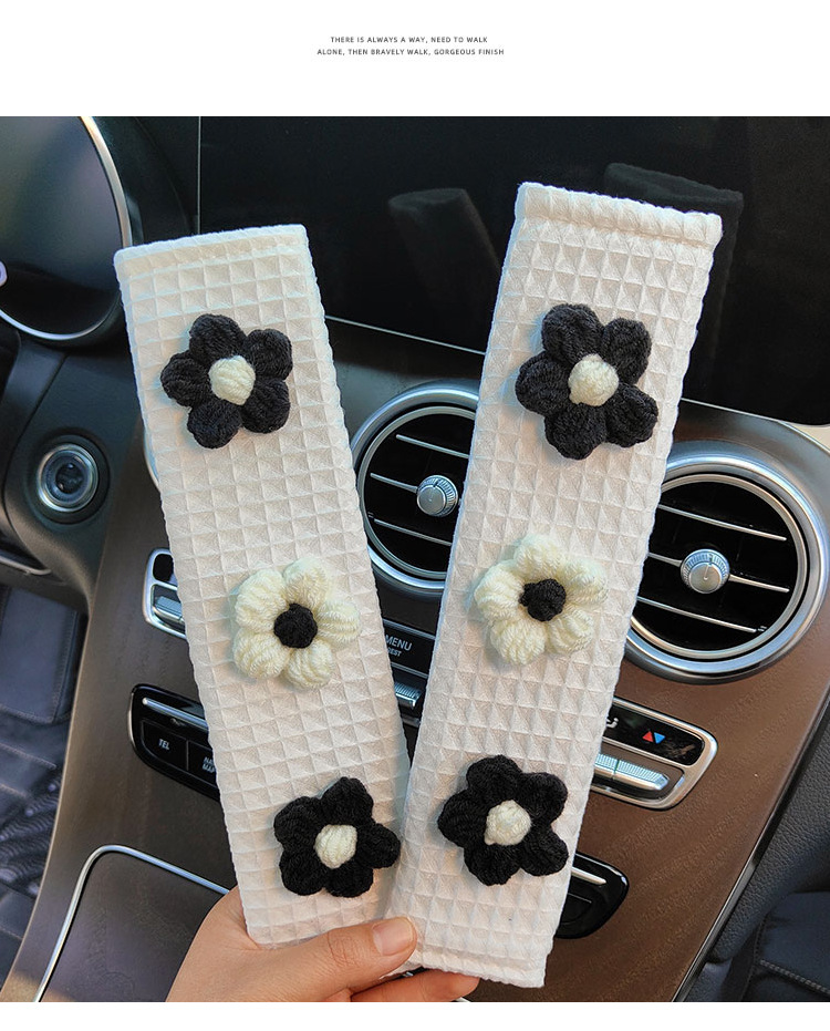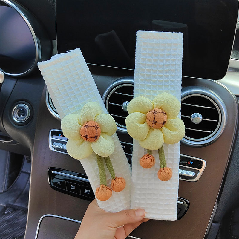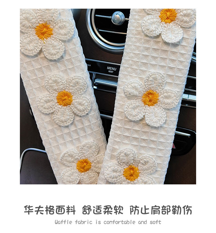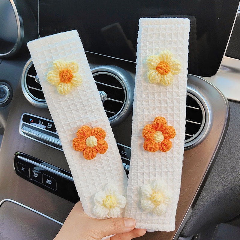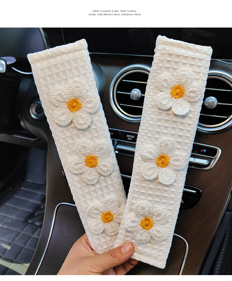 汽车带护肩套女可爱小清新花朵车载保险带套一对四季通用