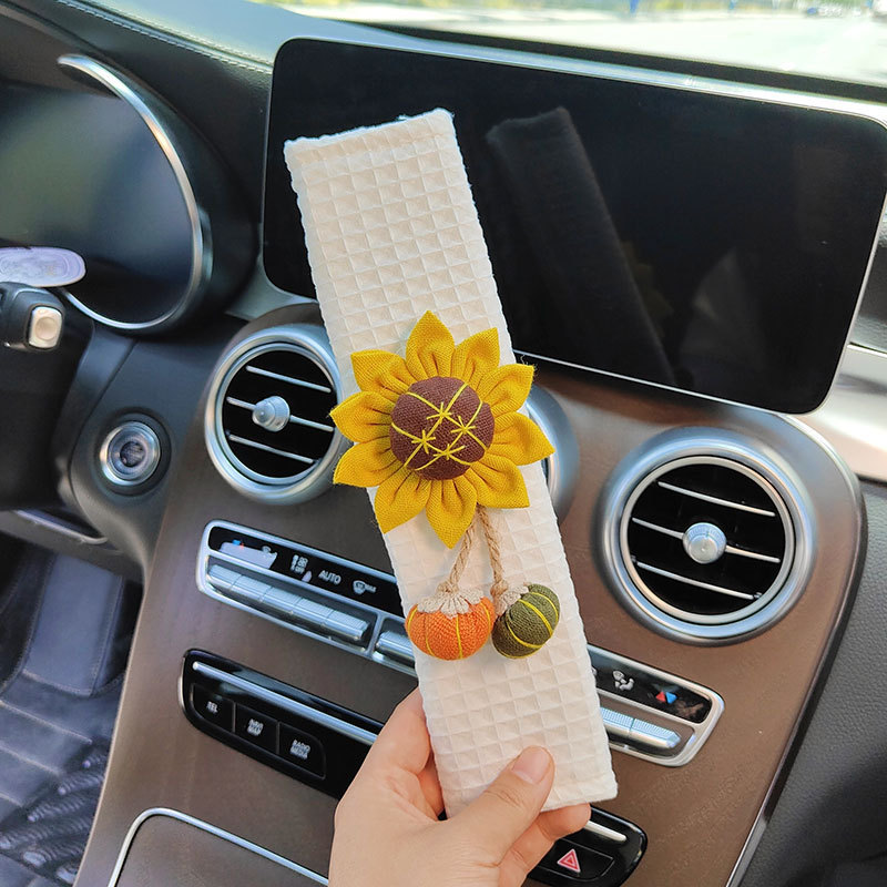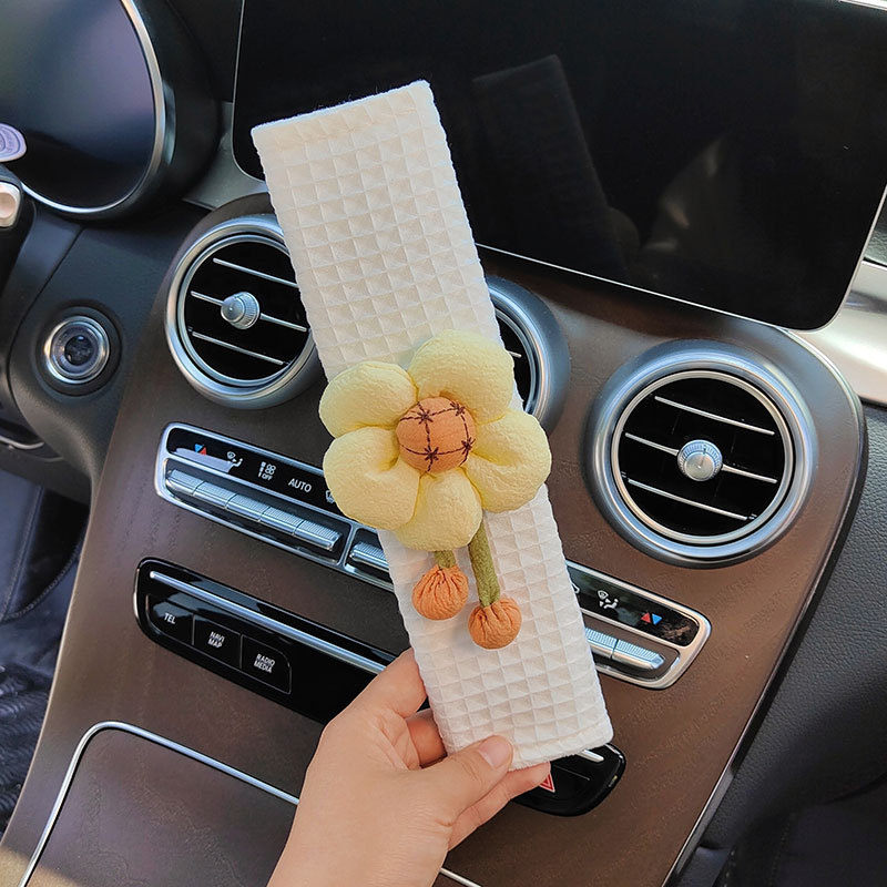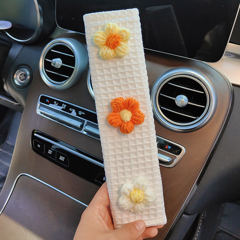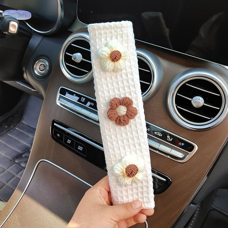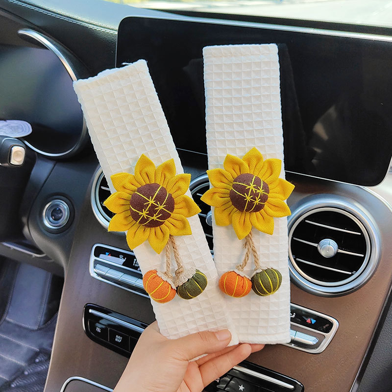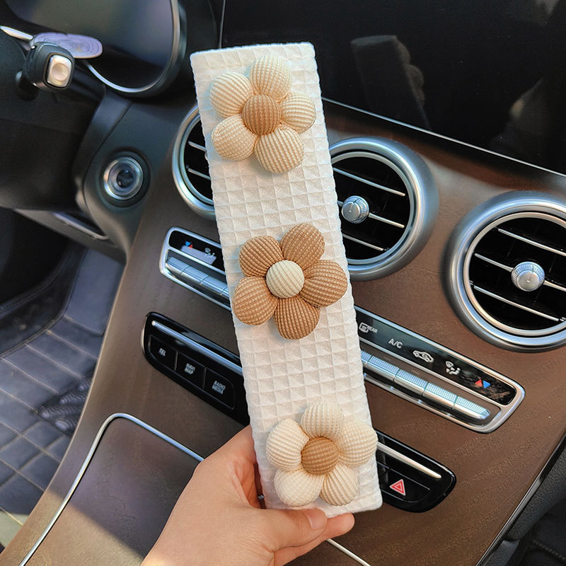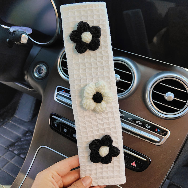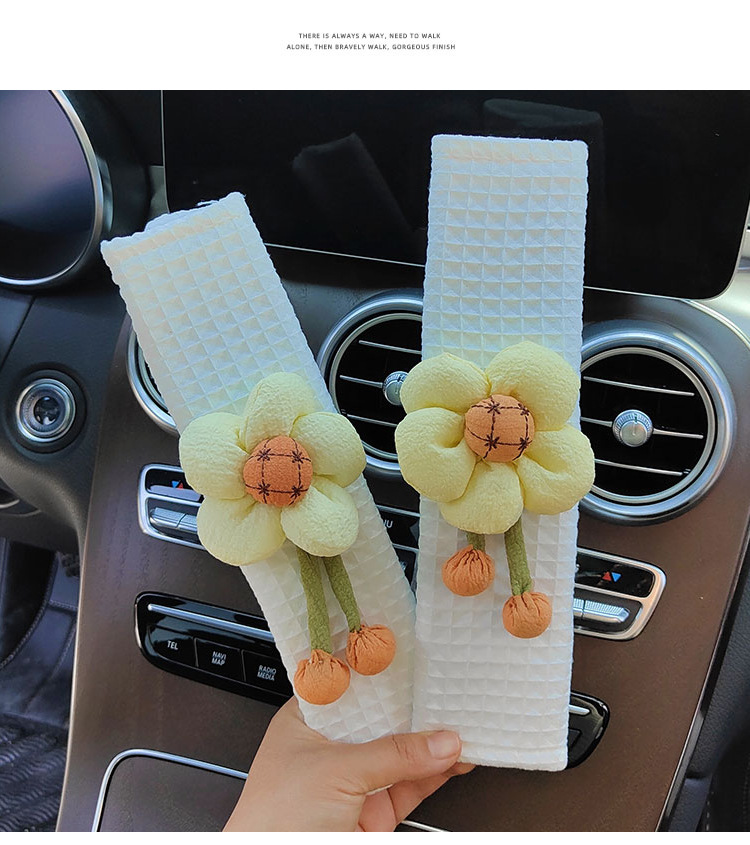 汽车带护肩套女可爱小清新花朵车载保险带套一对四季通用