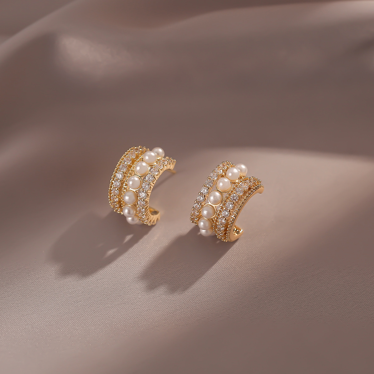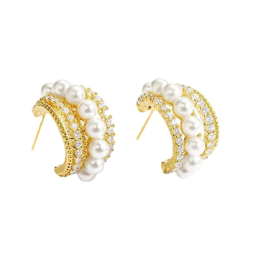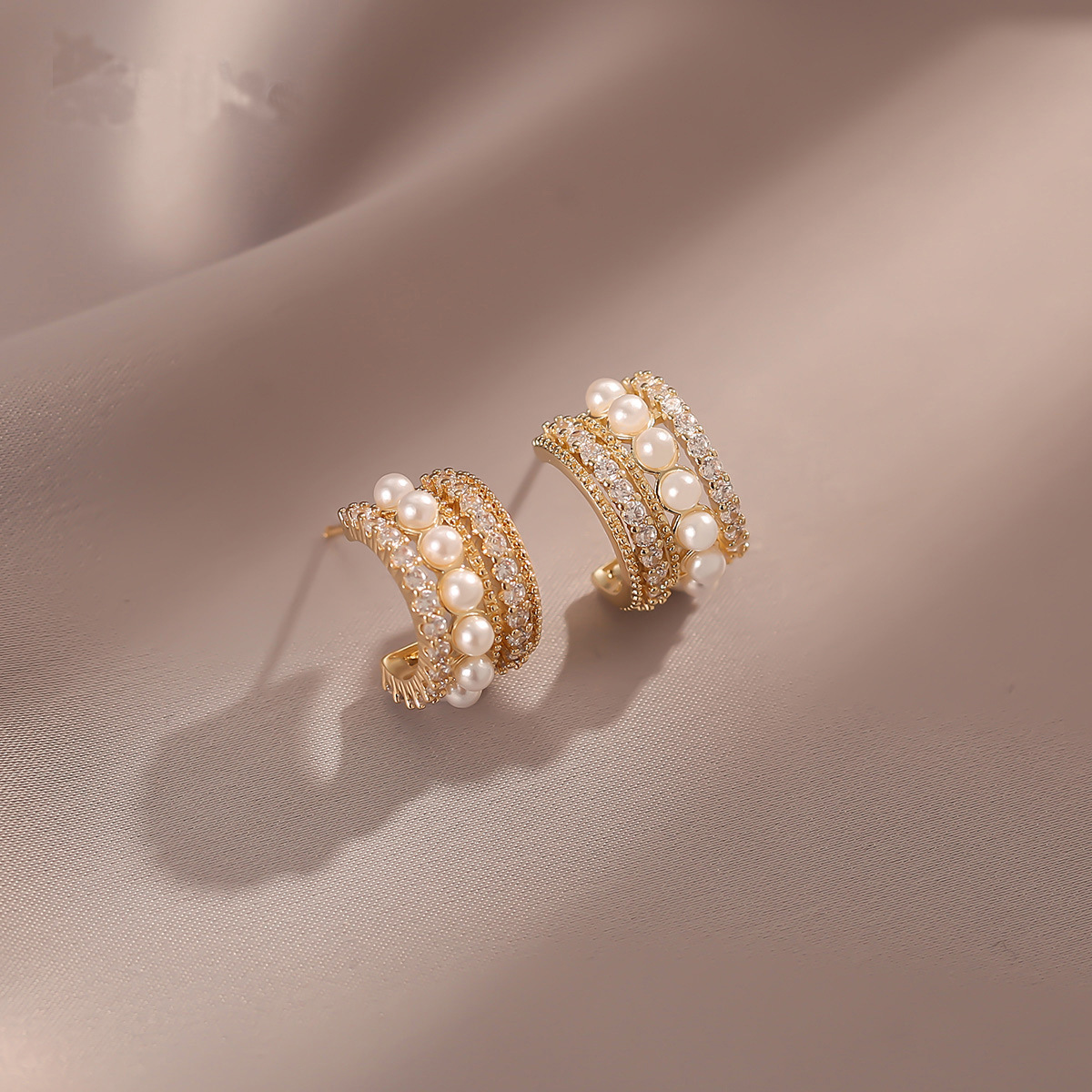 秋冬新款潮小香风C型珍珠耳钉 韩国时尚轻奢耳环小众设计感耳饰女