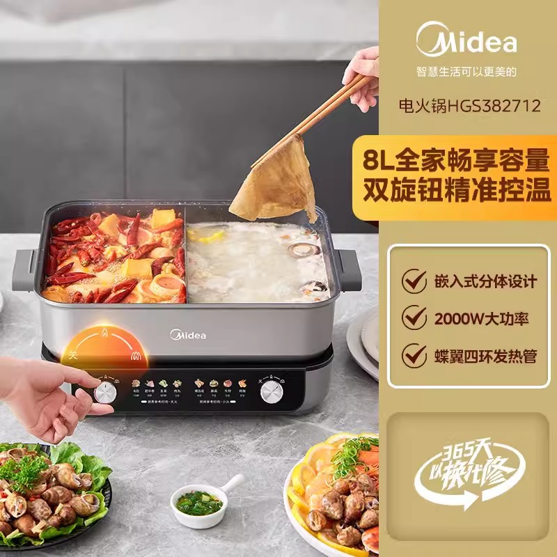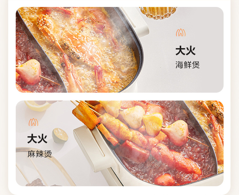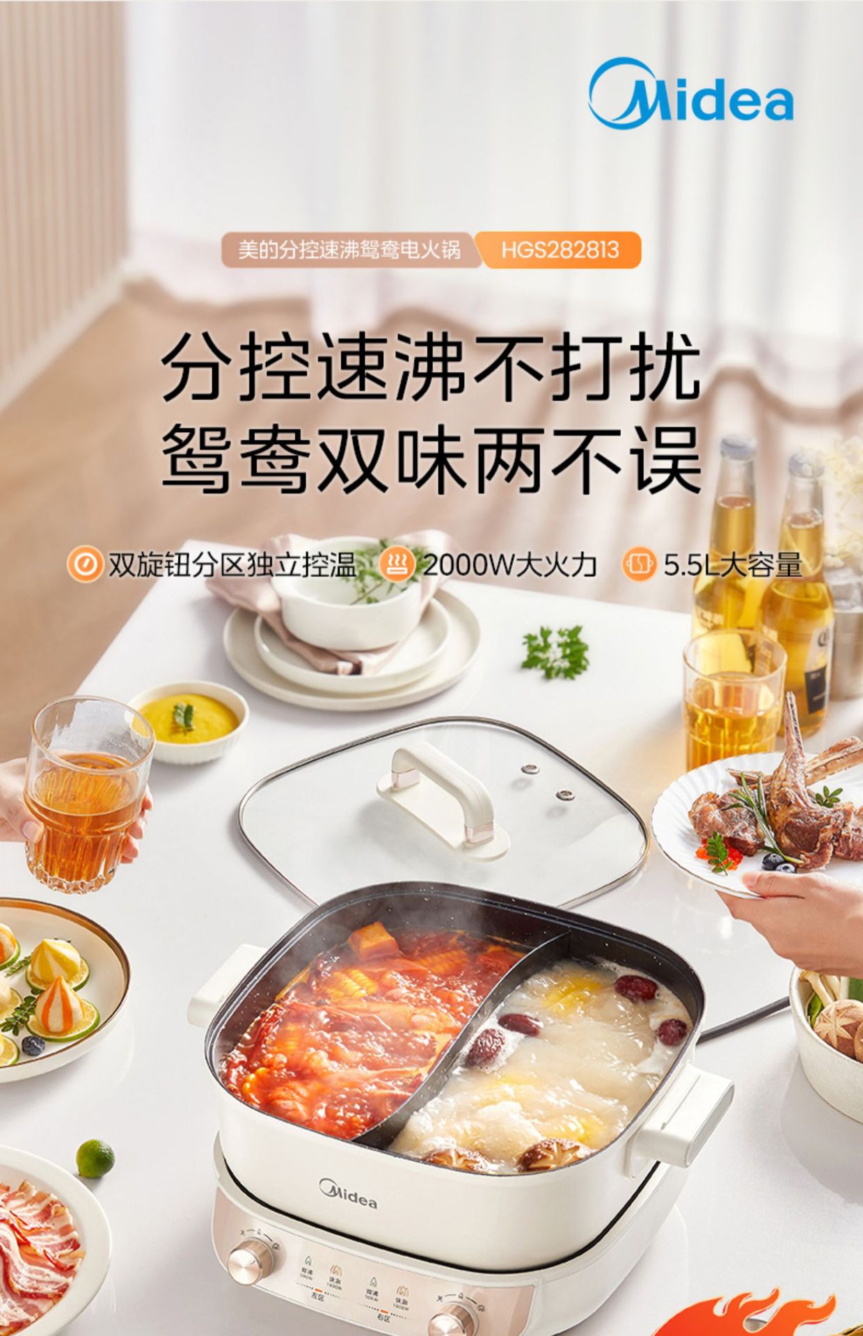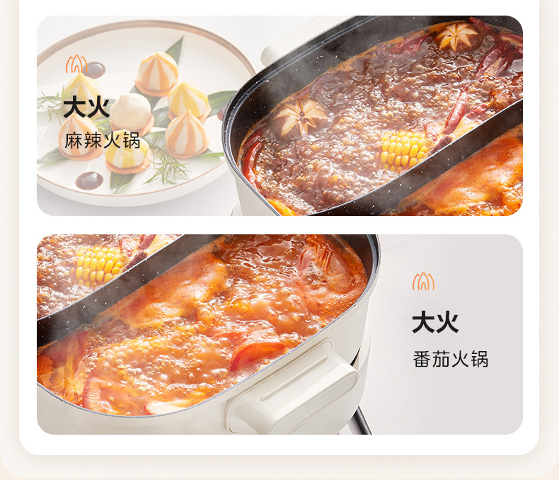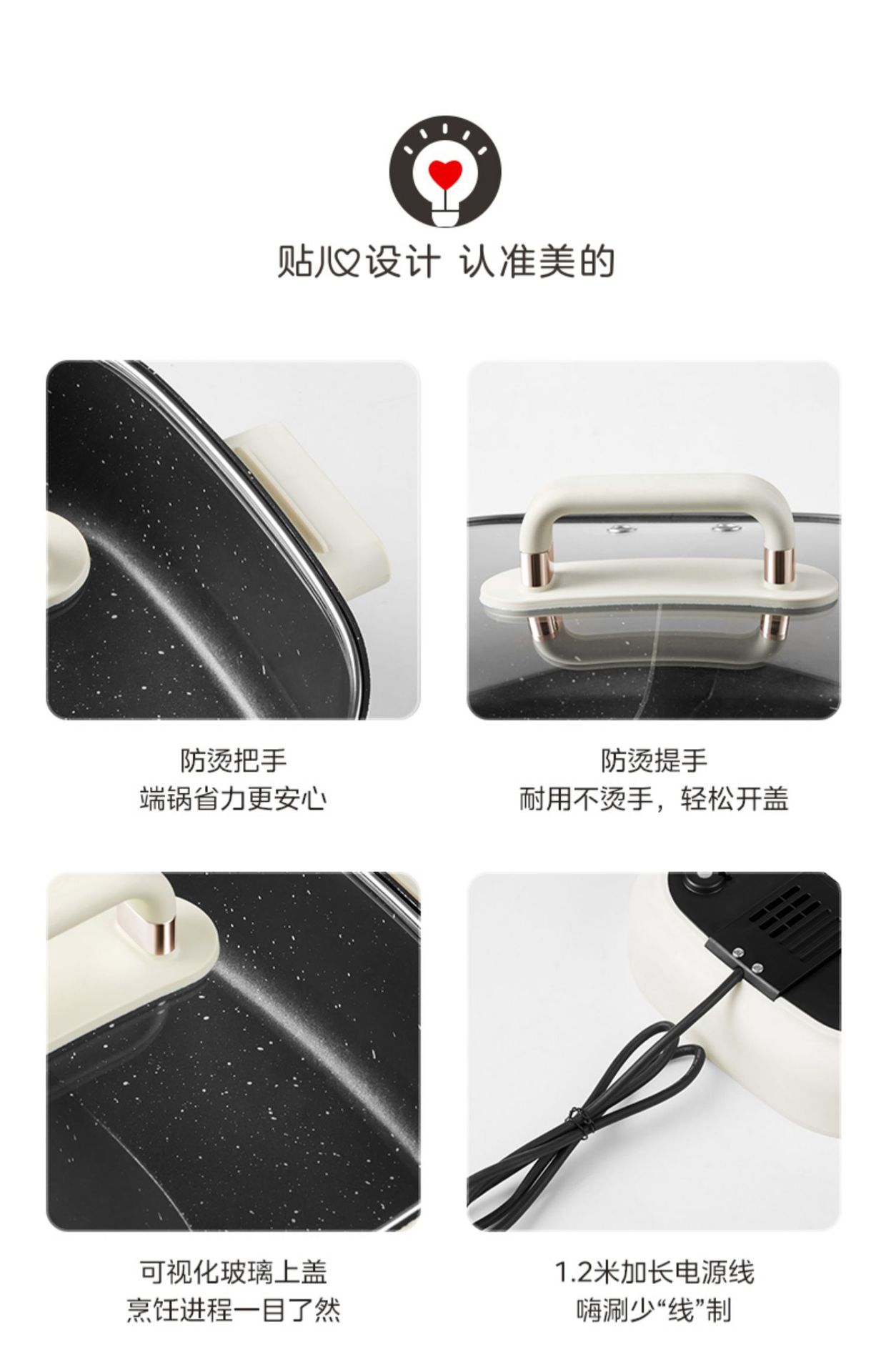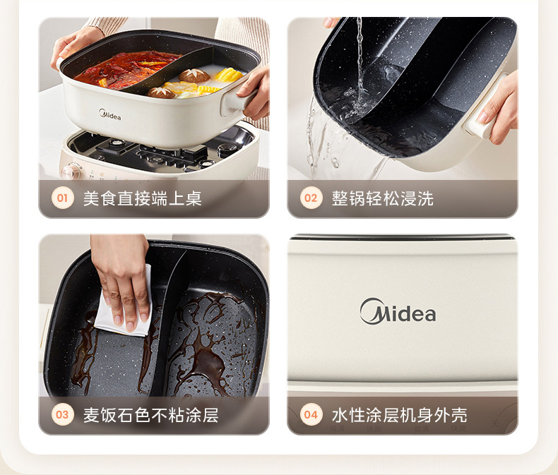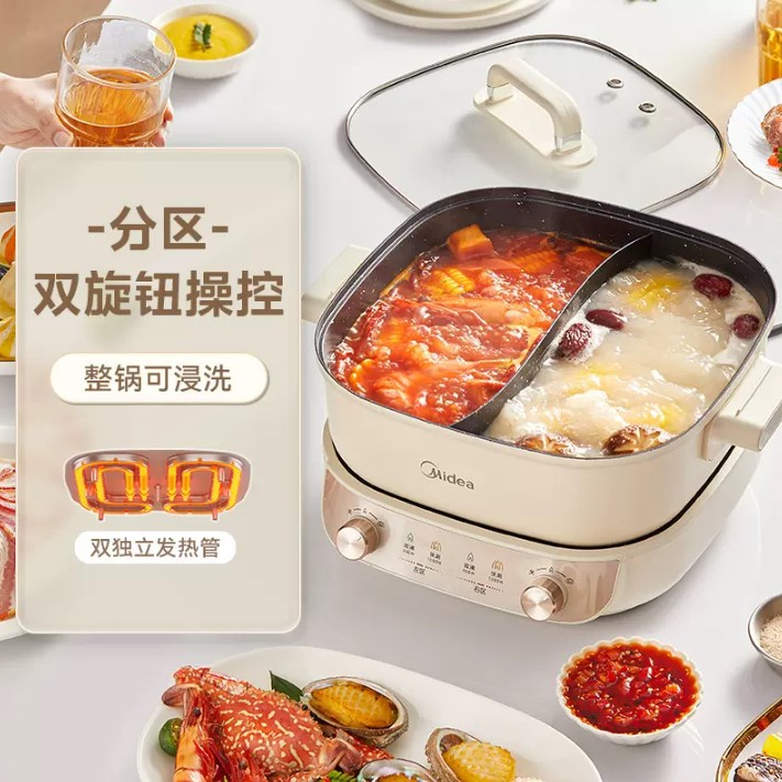美的电火锅家用鸳鸯分体式多功能煮锅煎炒电热锅不粘锅HGS282813