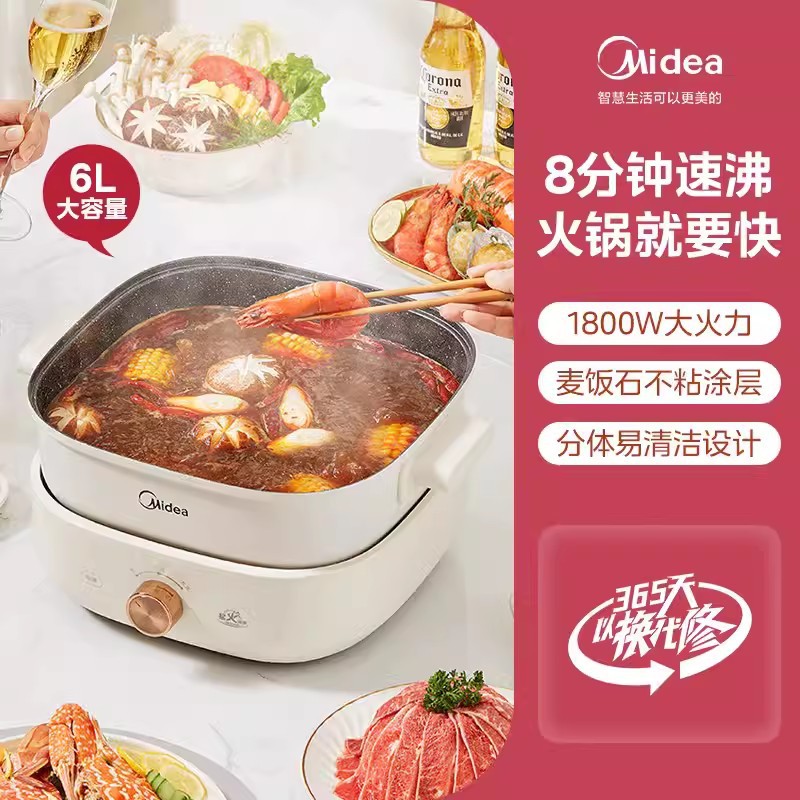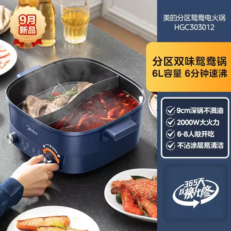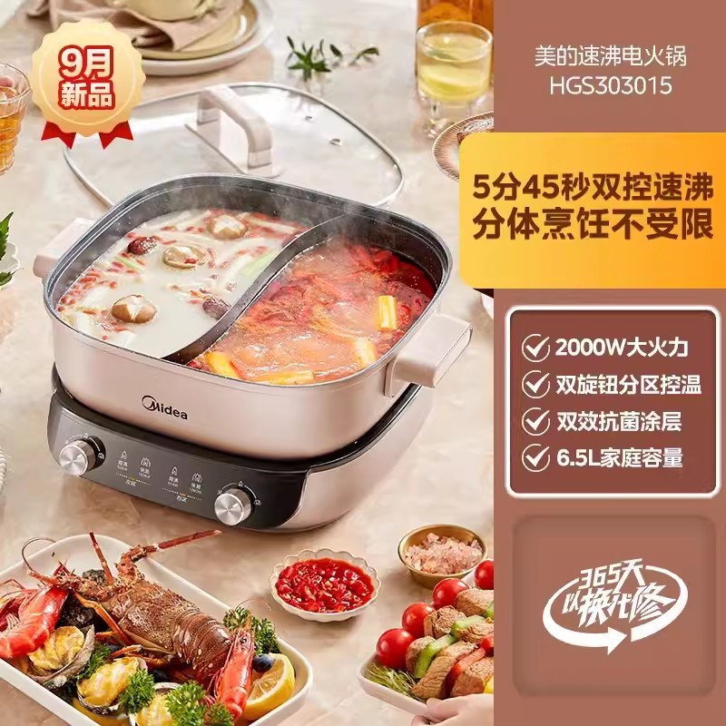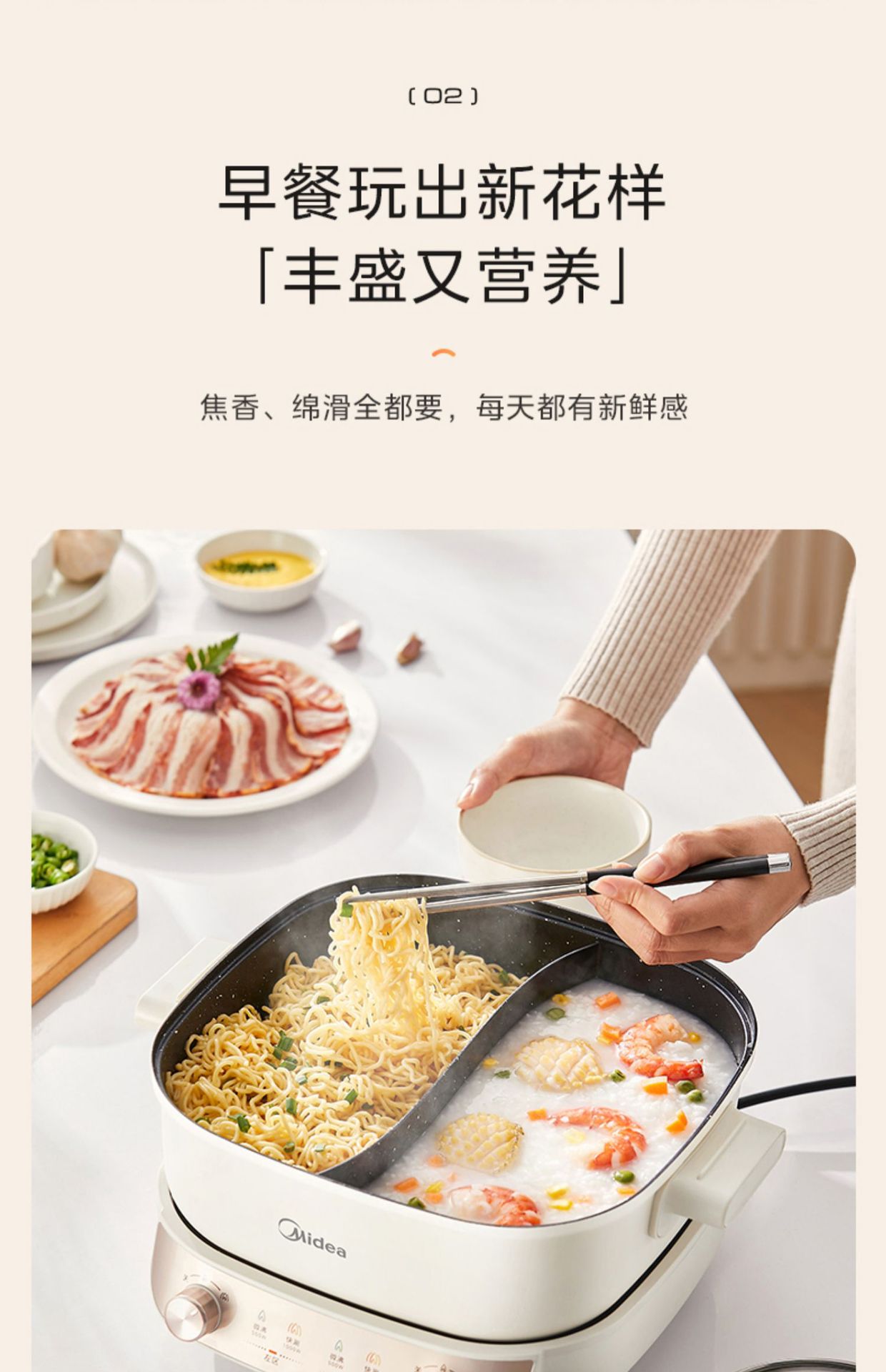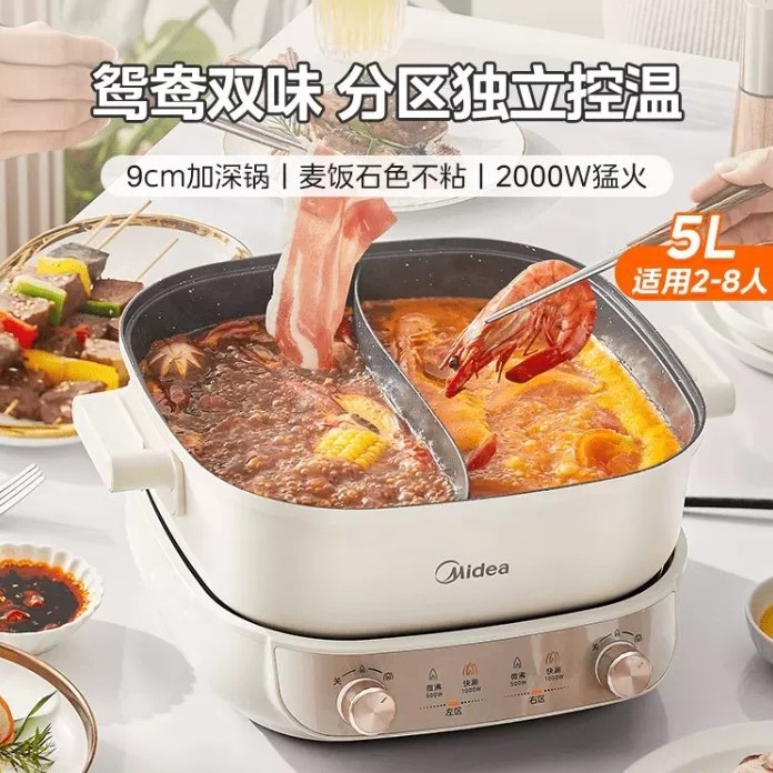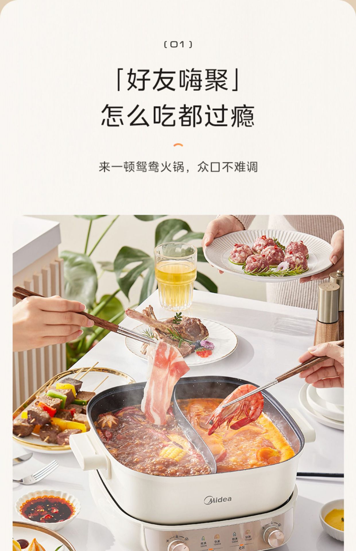 美的电火锅家用鸳鸯分体式多功能煮锅煎炒电热锅不粘锅HGS282813