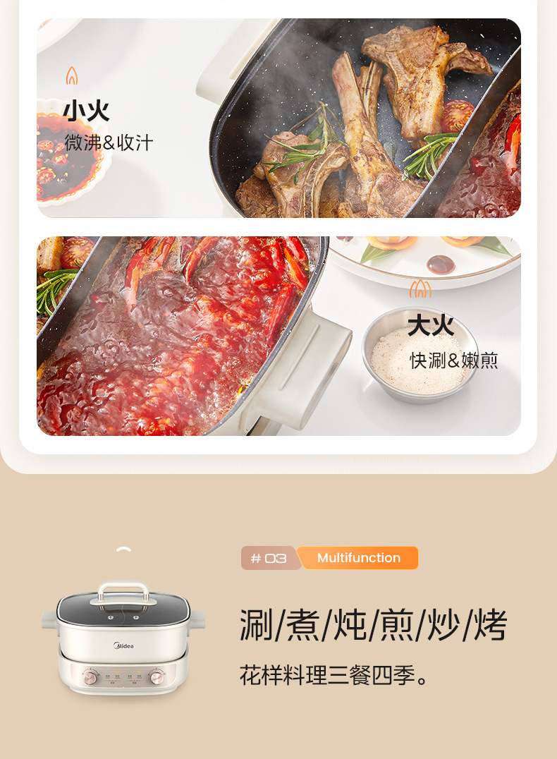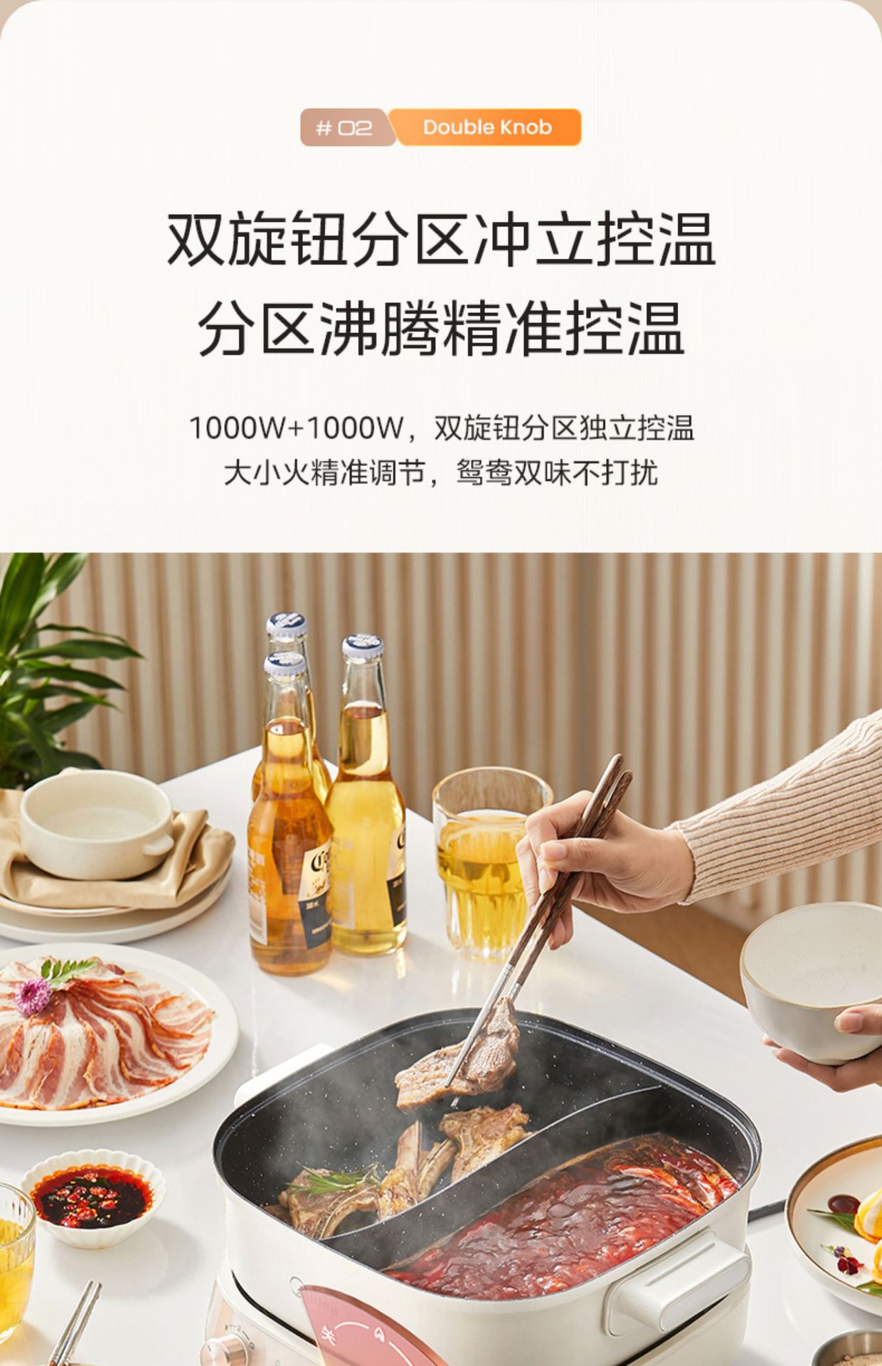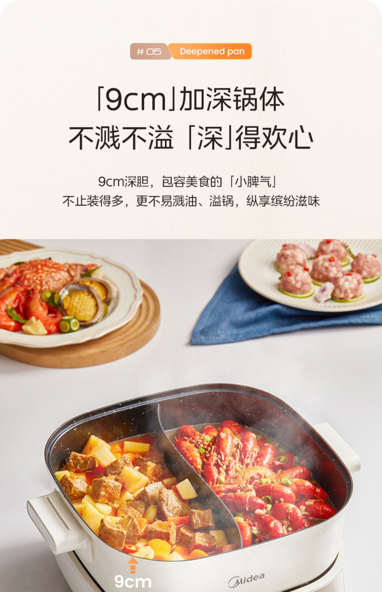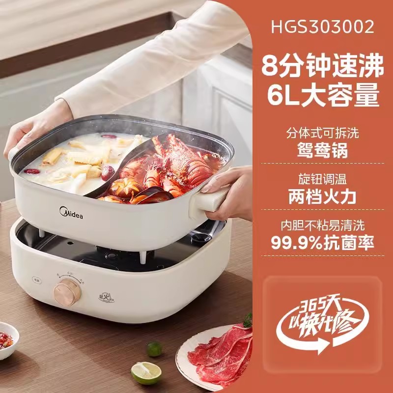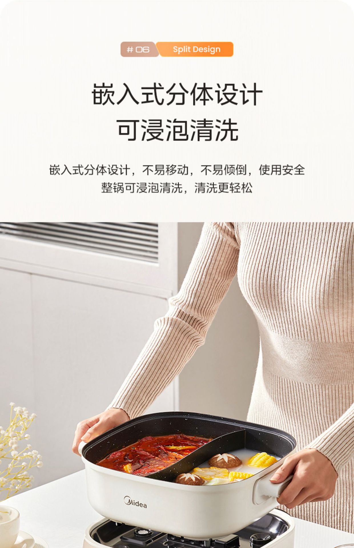 美的电火锅家用鸳鸯分体式多功能煮锅煎炒电热锅不粘锅HGS282813