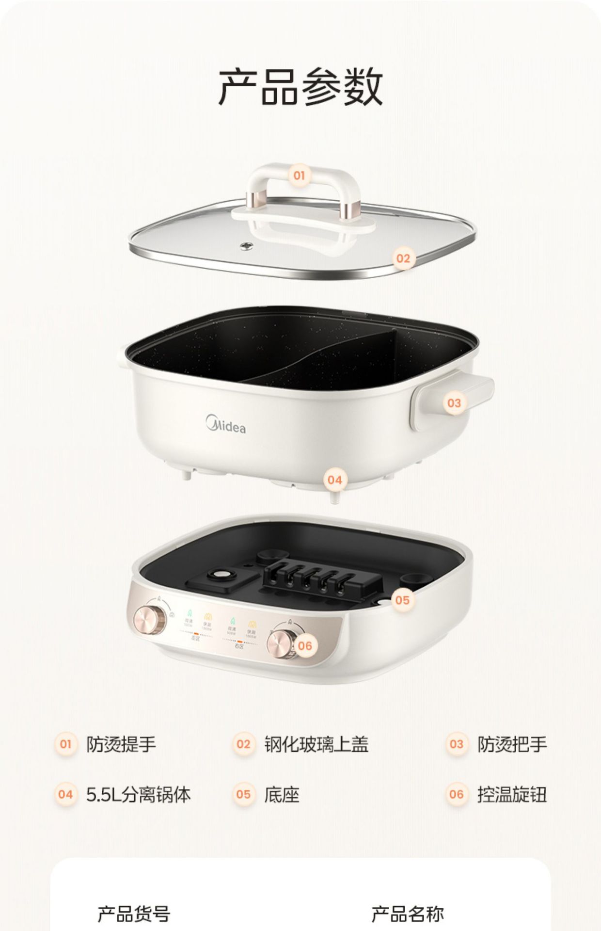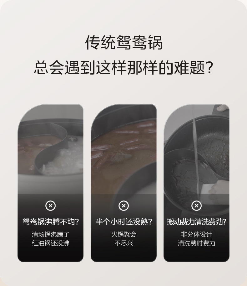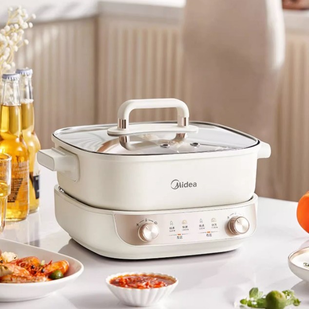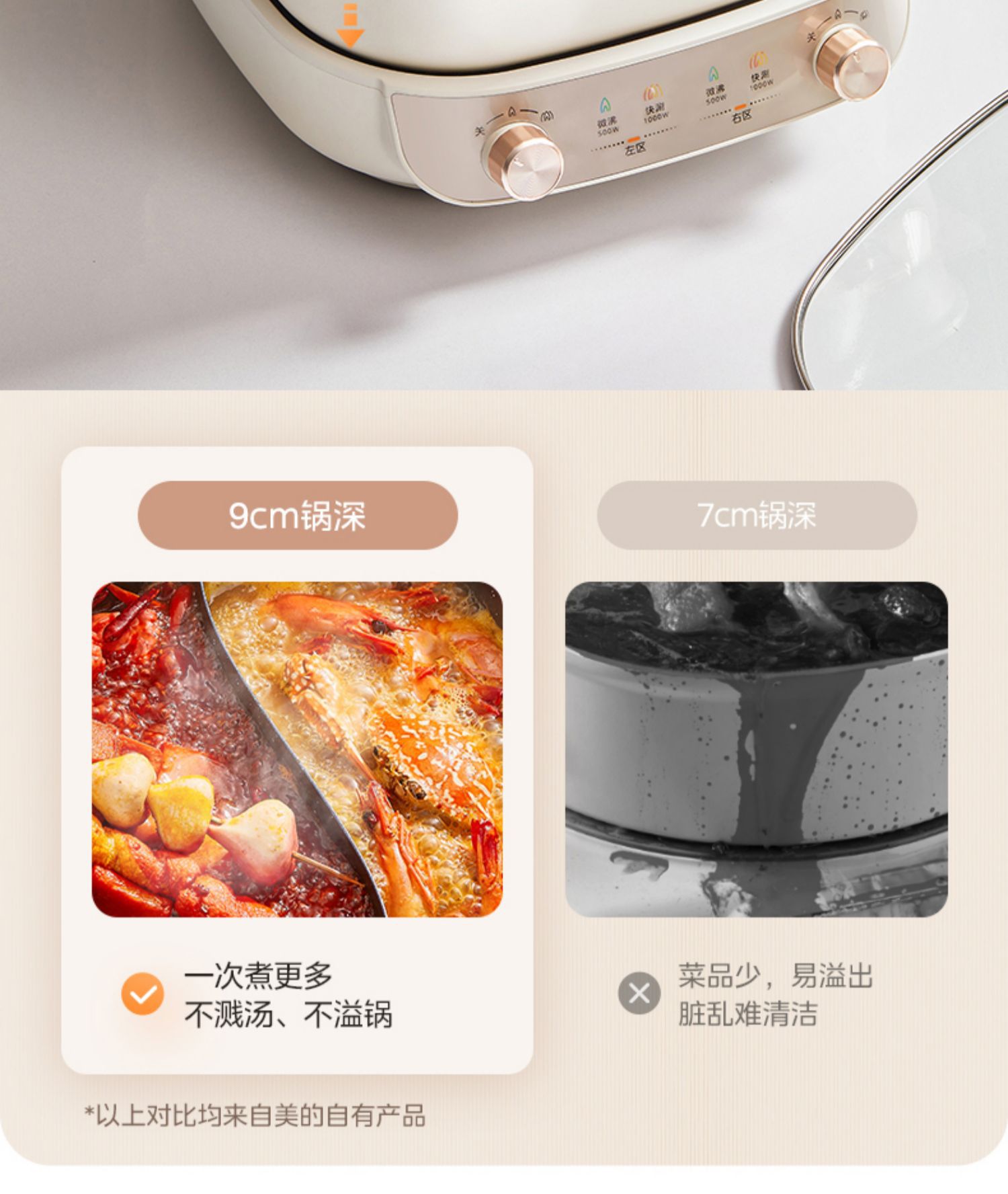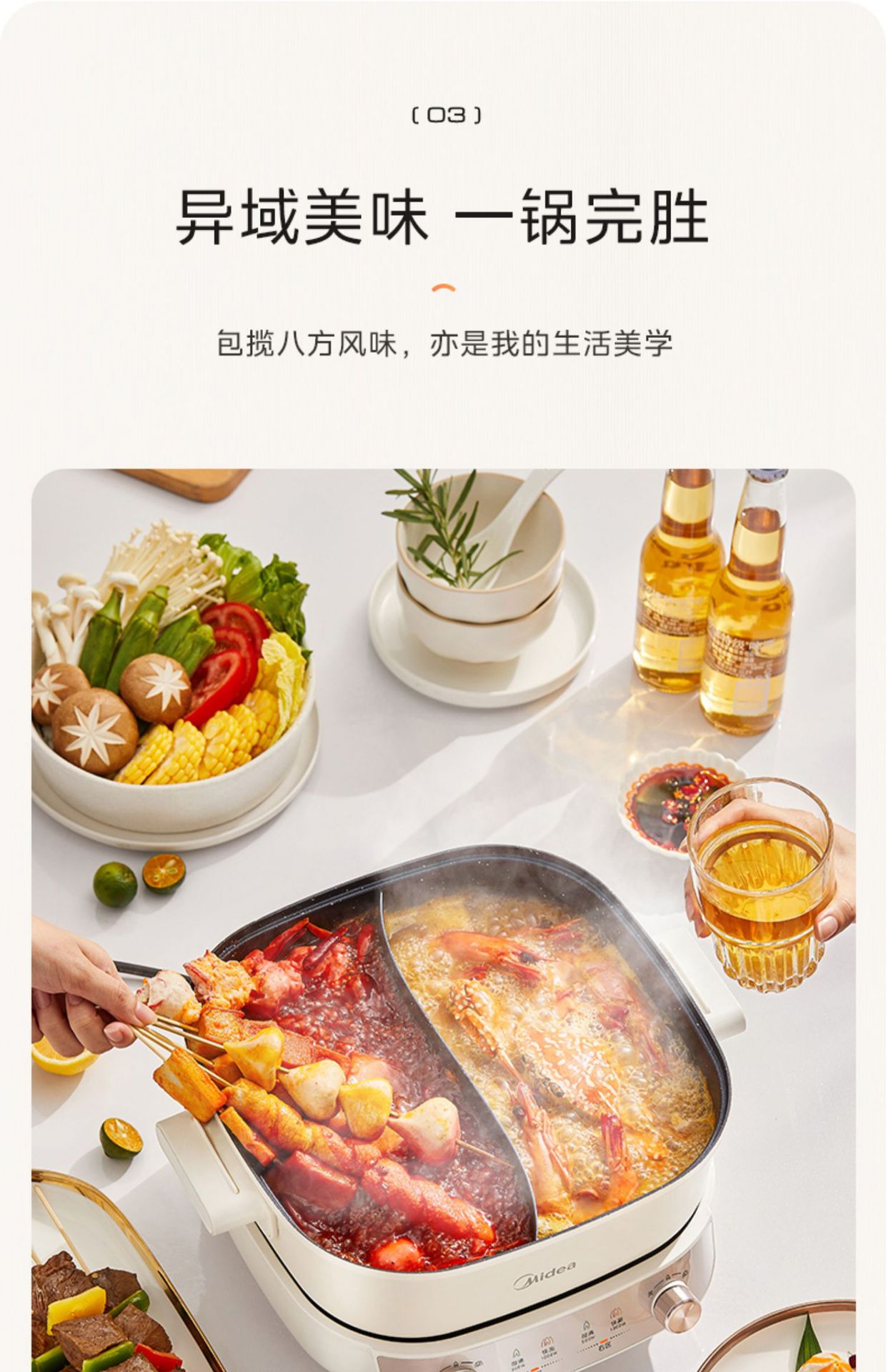 美的电火锅家用鸳鸯分体式多功能煮锅煎炒电热锅不粘锅HGS282813