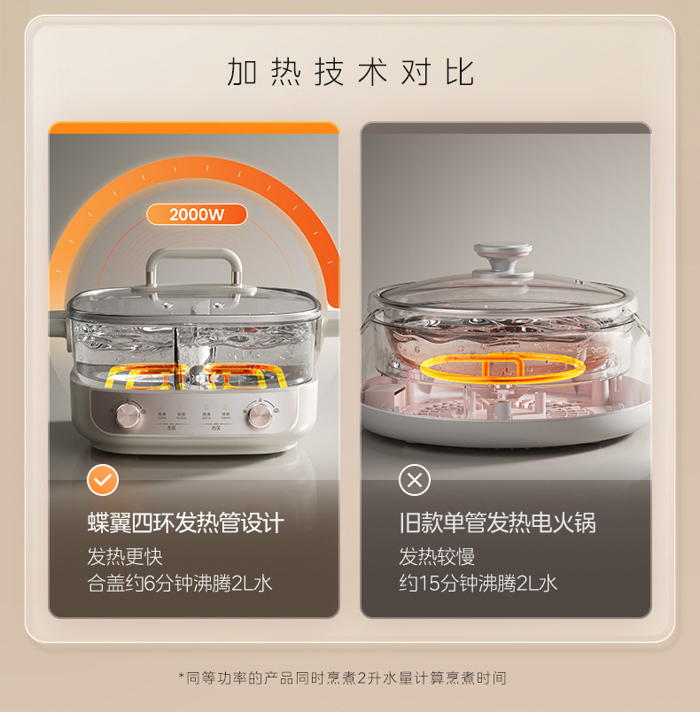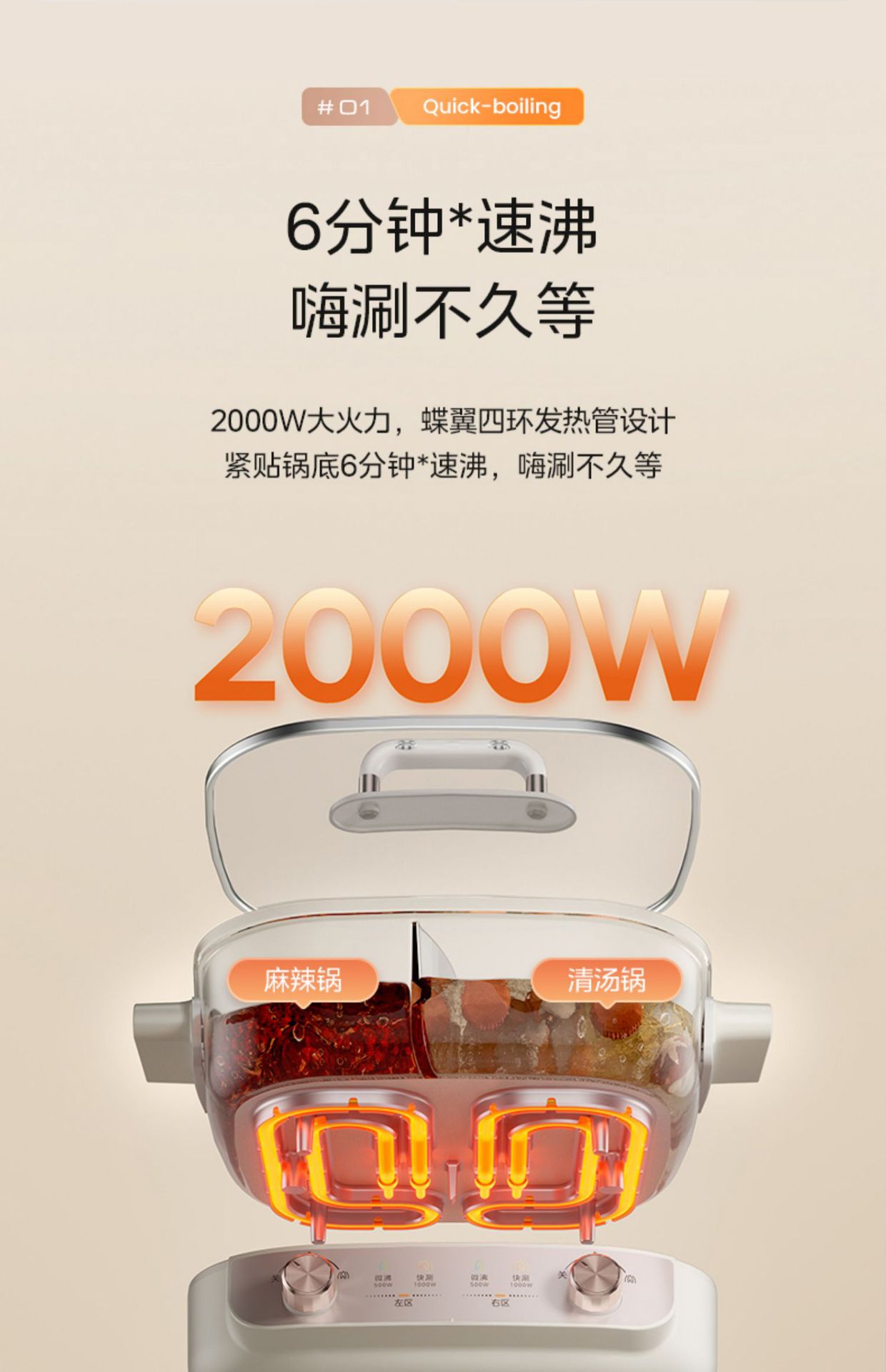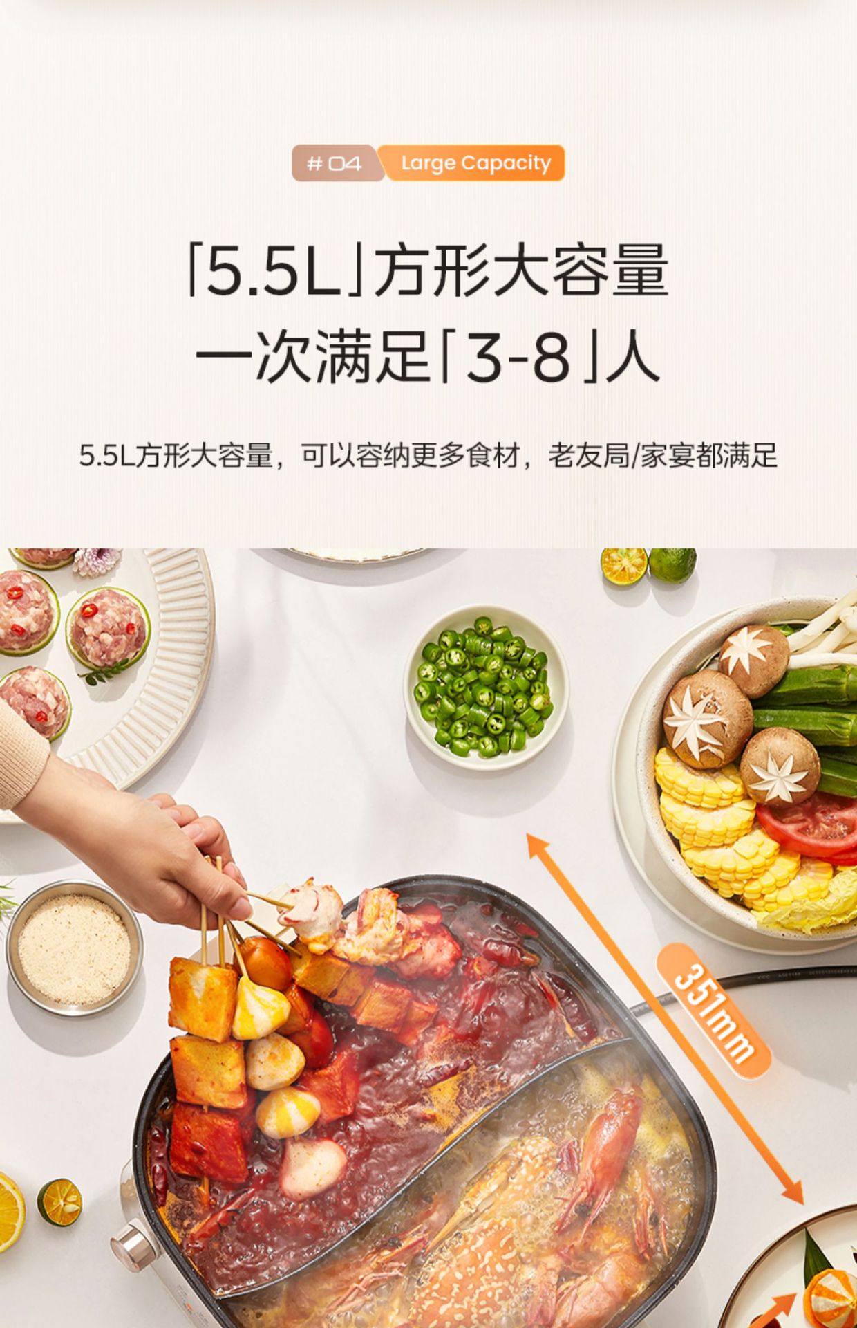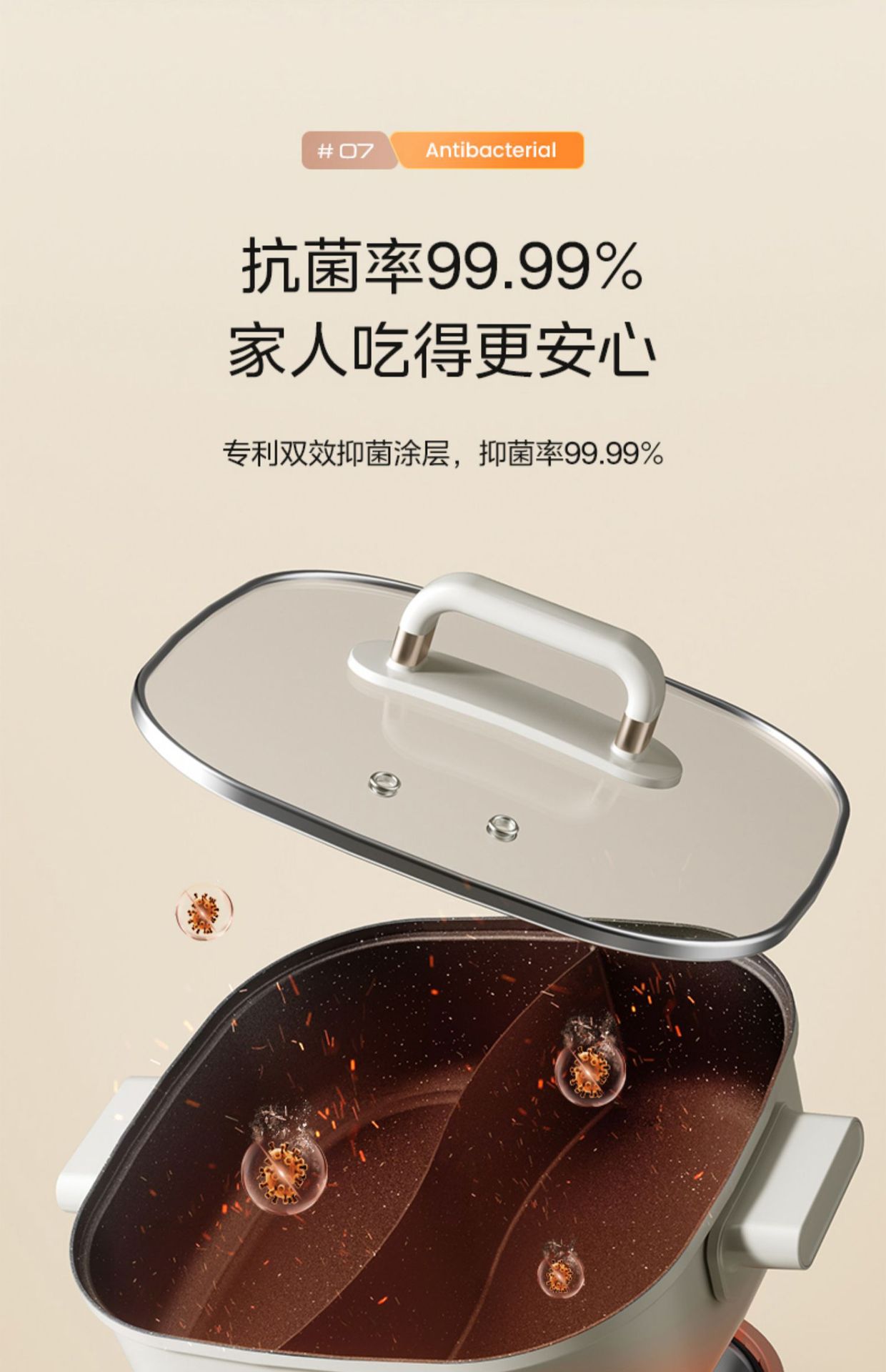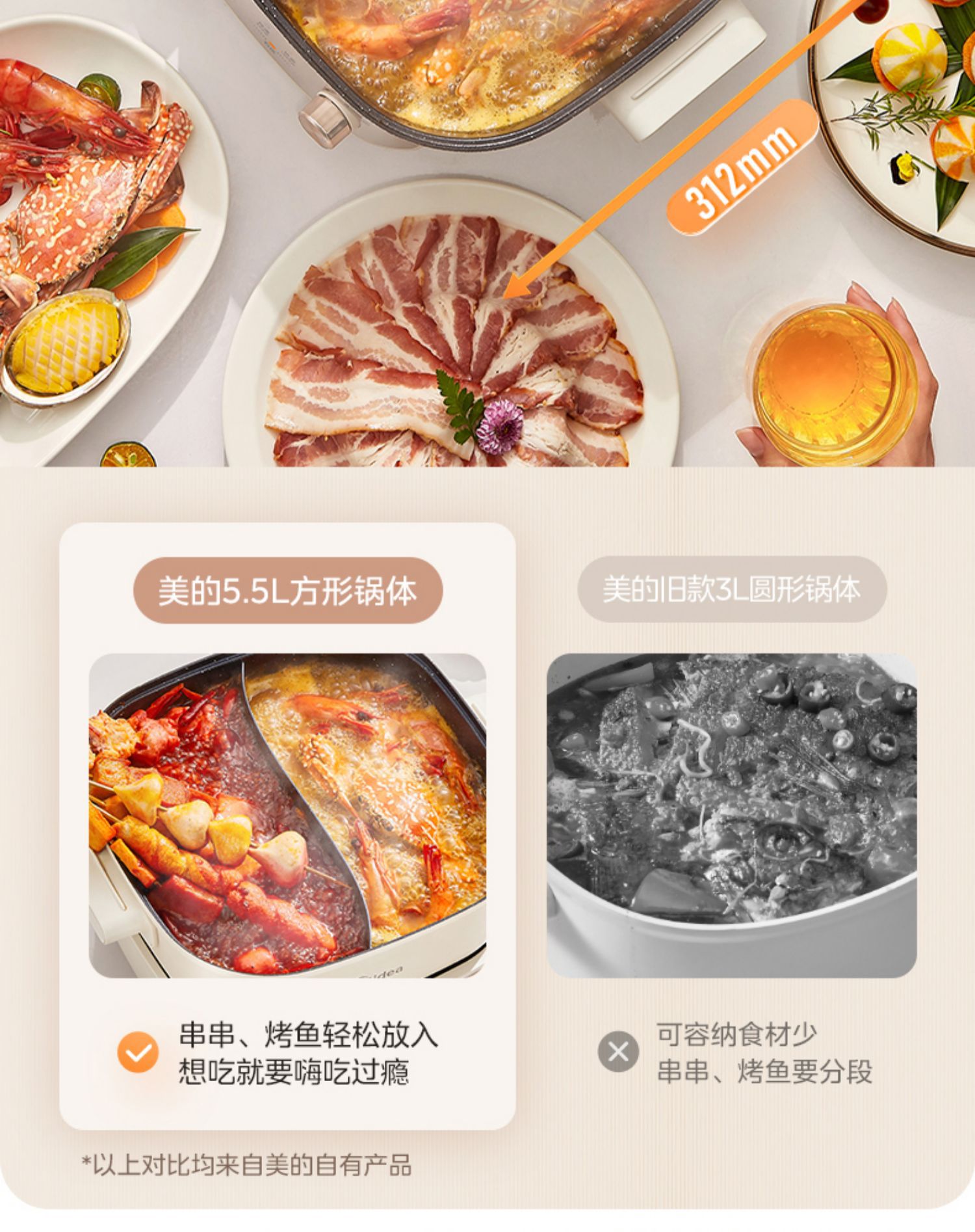 美的电火锅家用鸳鸯分体式多功能煮锅煎炒电热锅不粘锅HGS282813
