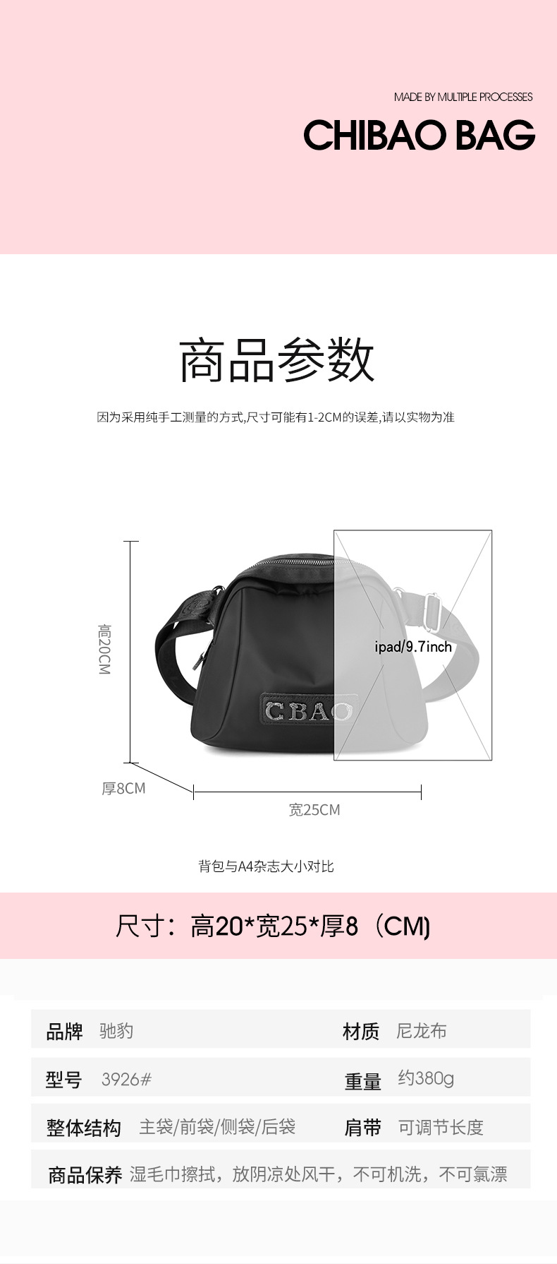 驰豹新款单肩小包包休闲运动斜挎包女包帆布时尚百搭牛津布贝壳包