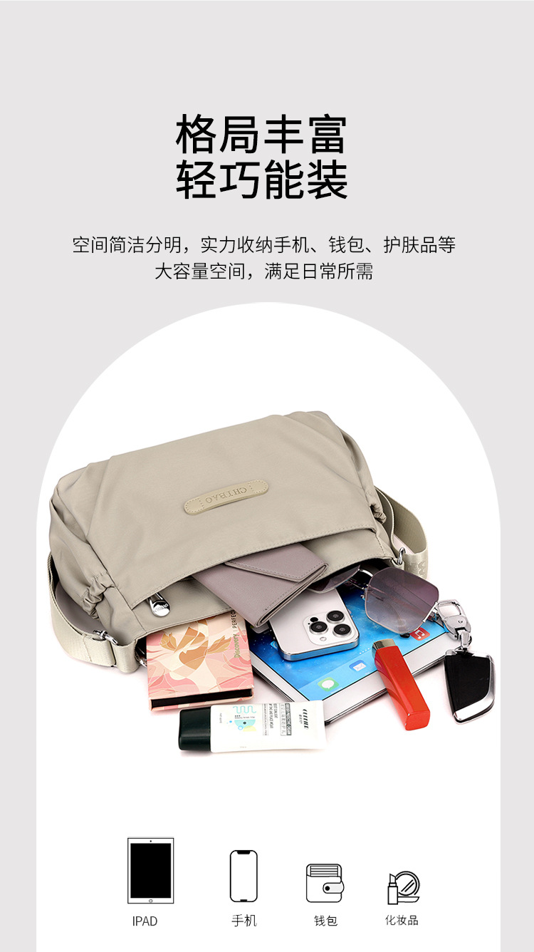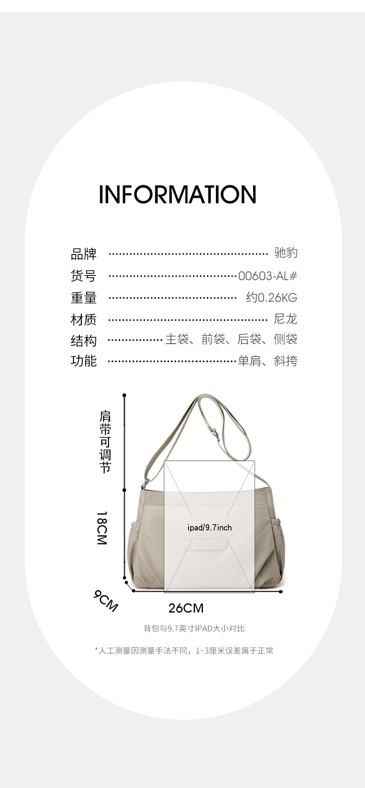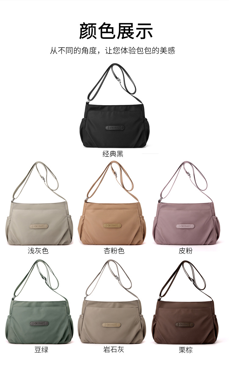 休闲防水尼龙布包时尚斜挎包驰豹简约通勤包大容量女士逛街单肩包