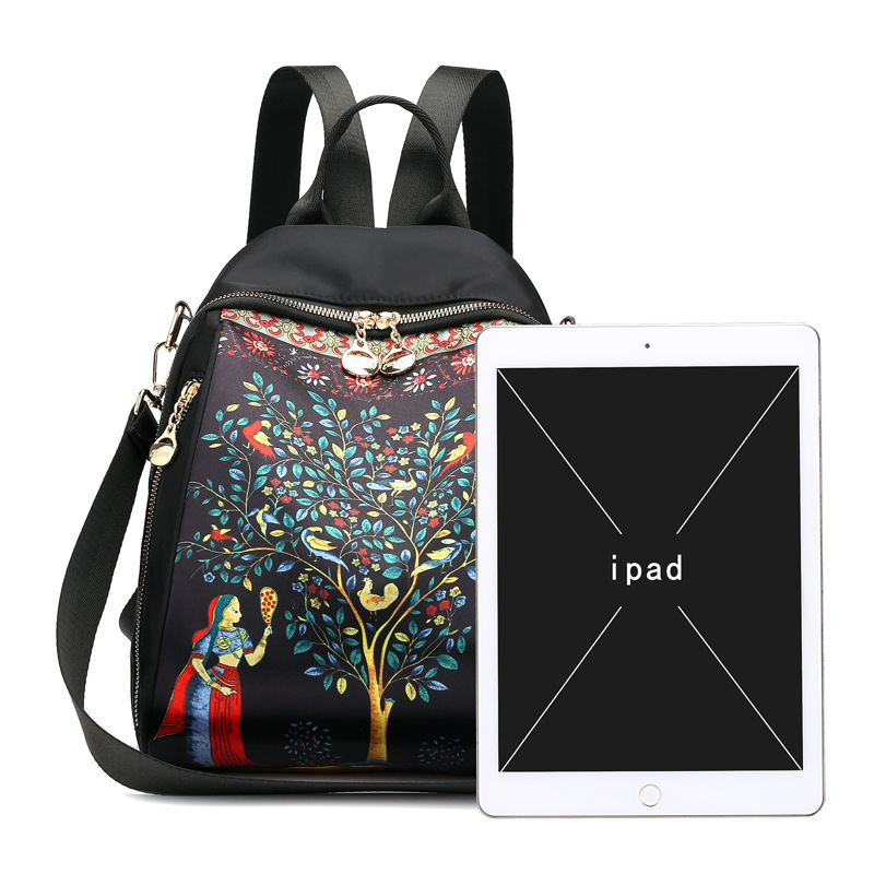 驰豹跨境双肩包女士牛津布多用斜跨贝壳包尼龙印花单肩包小背包潮