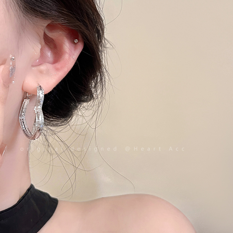 百搭气质几何形爱心耳钉耳饰品小众高级感多层叠戴爱心耳环女批发