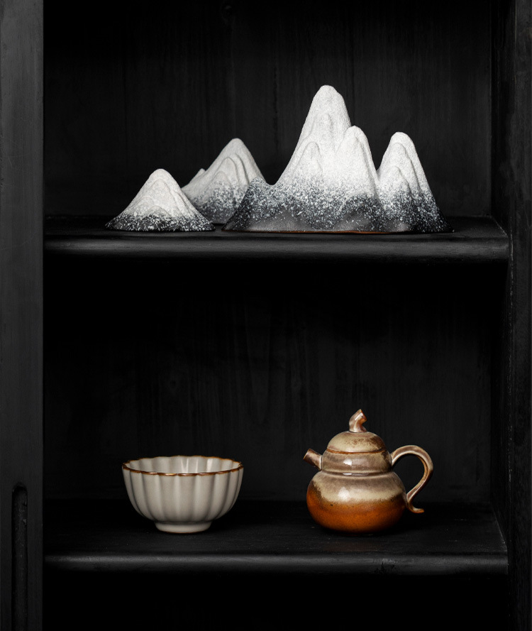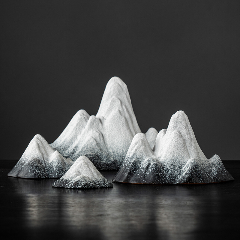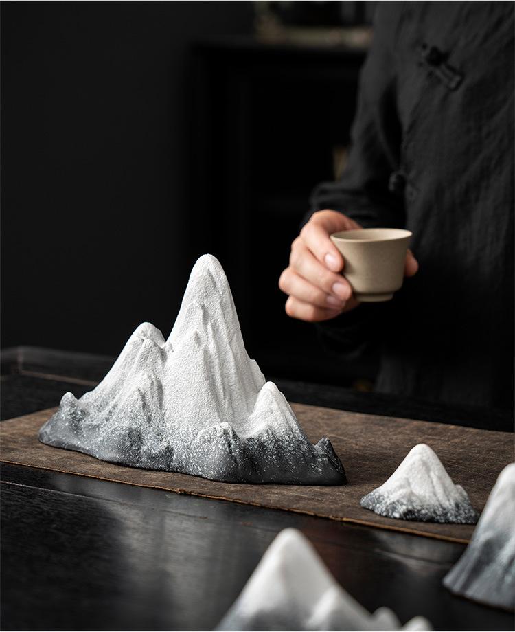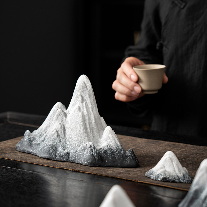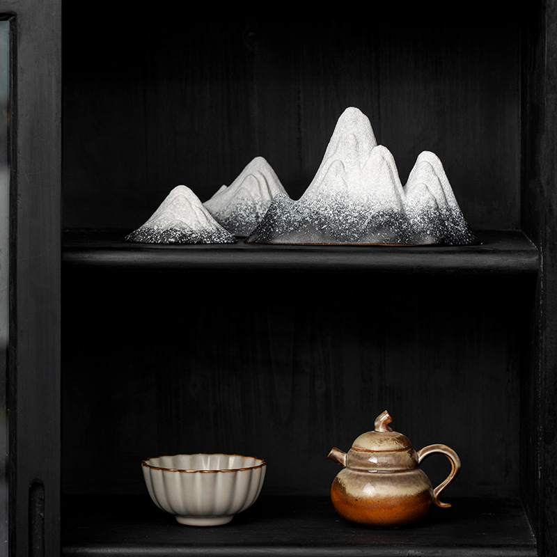 雪山小摆件创意微景观造景陶瓷客厅新中式玄关假山鱼缸造景装饰品