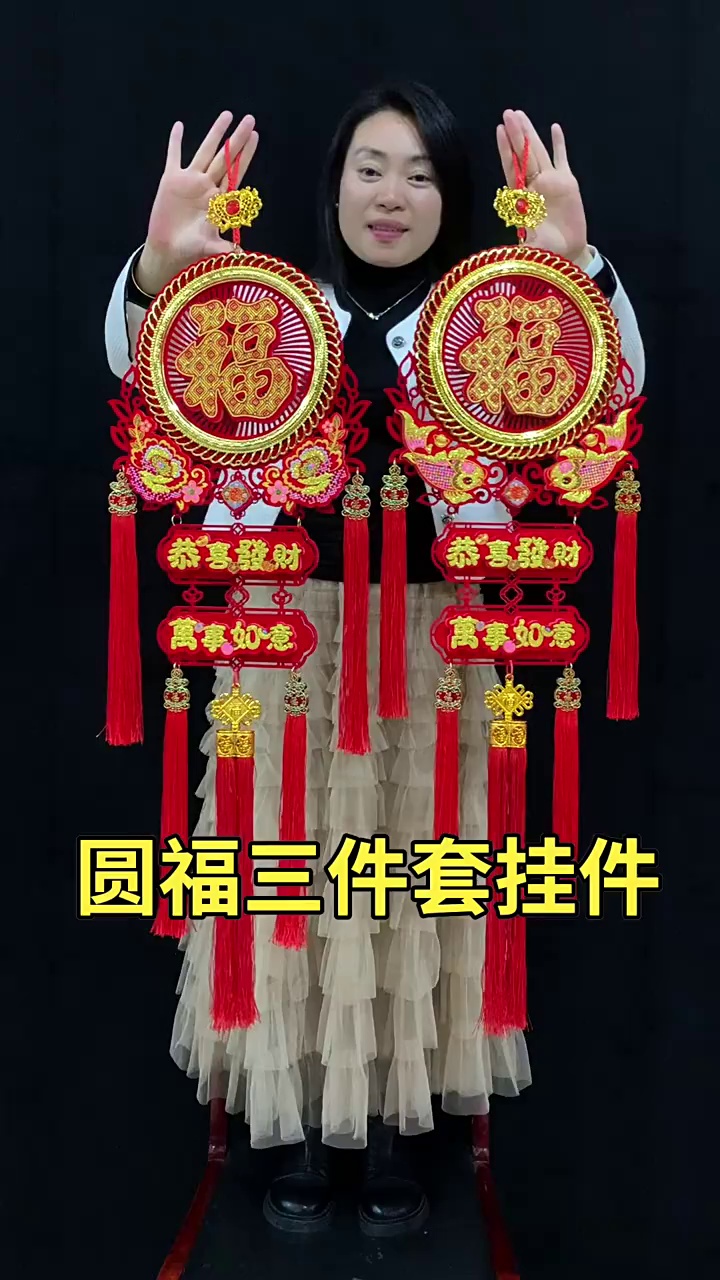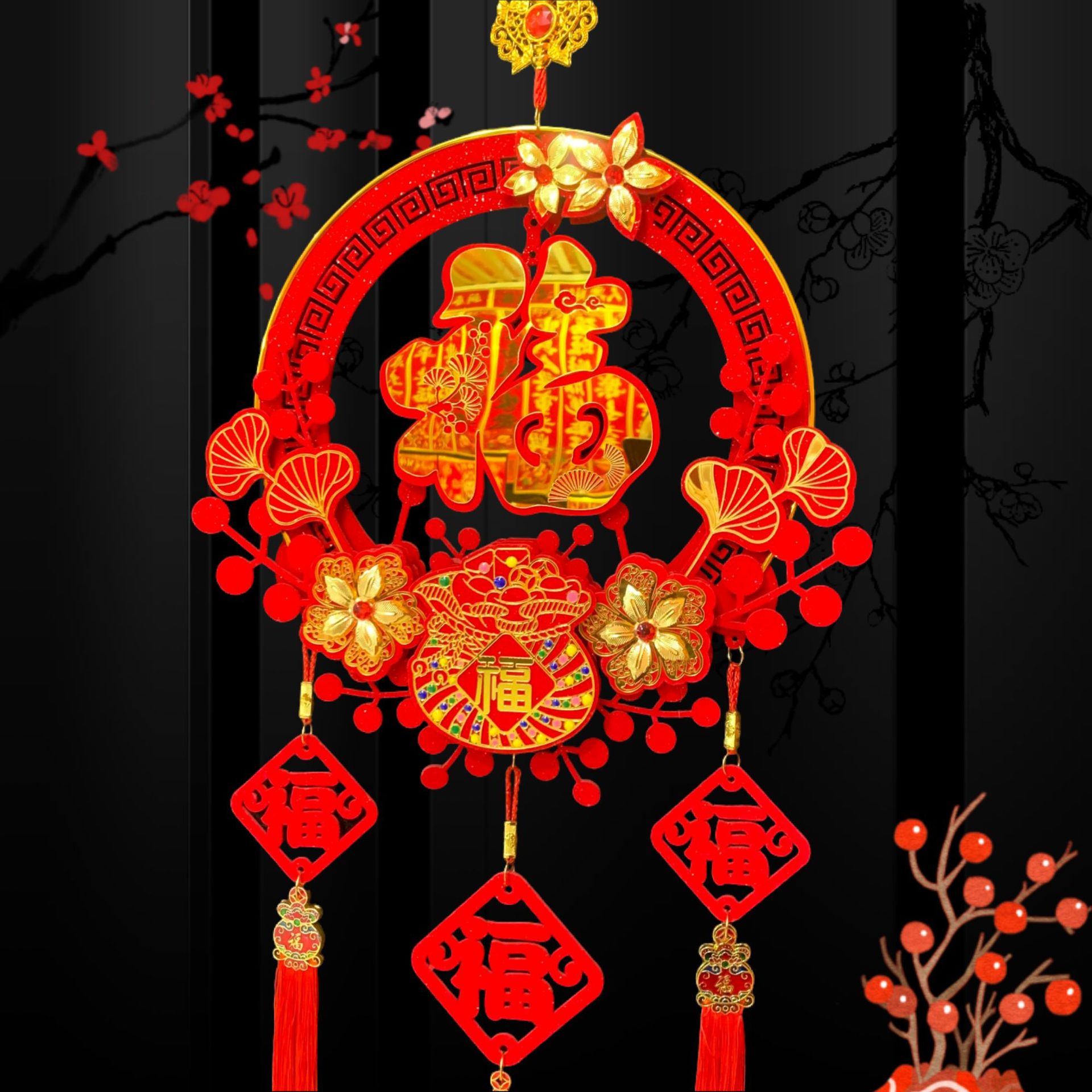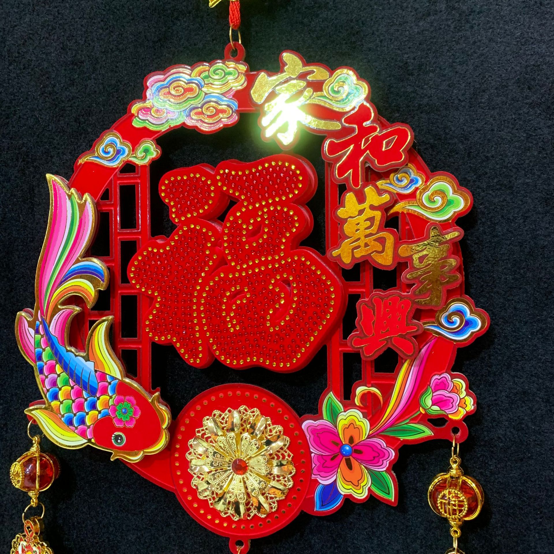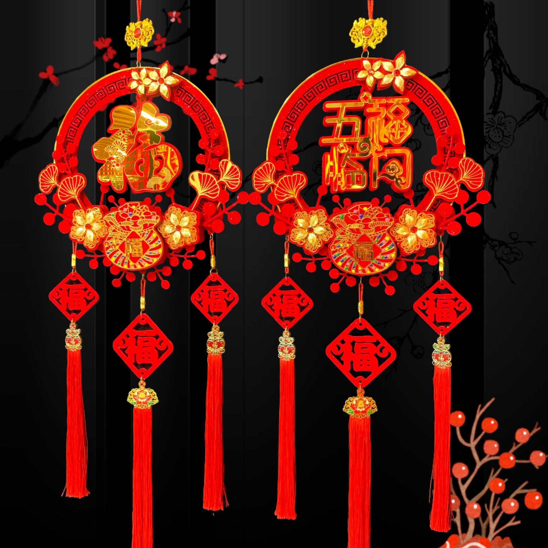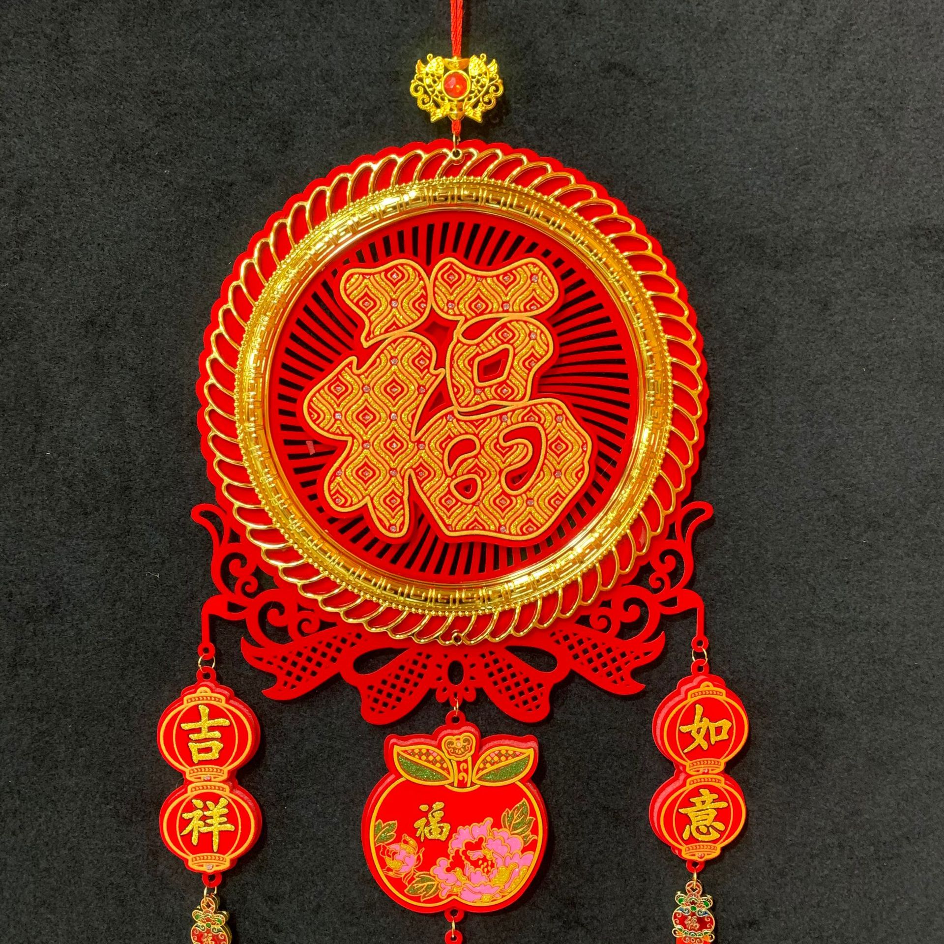 新款春节客厅玄关流苏挂饰装饰圆福红福烫钻亚克力挂件
