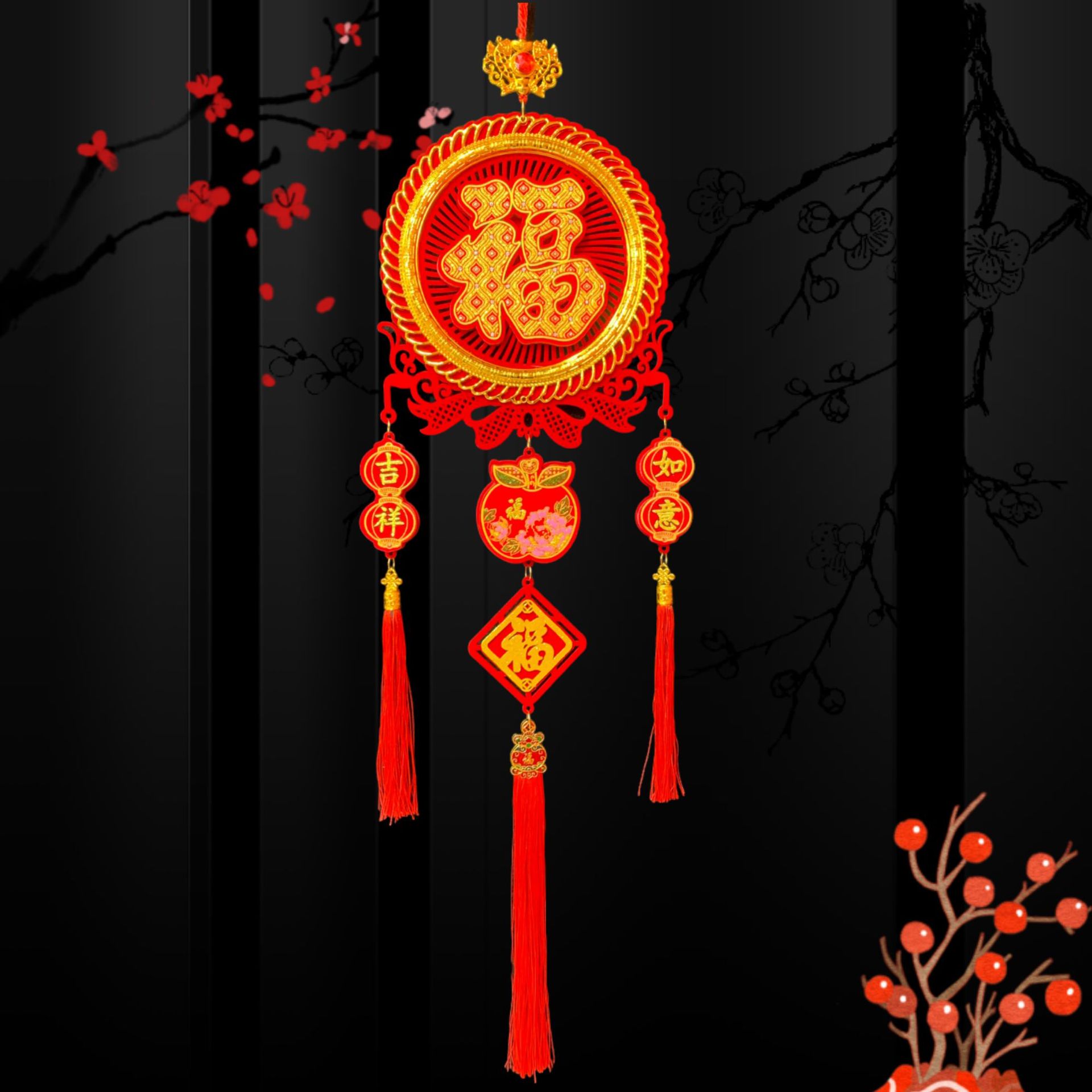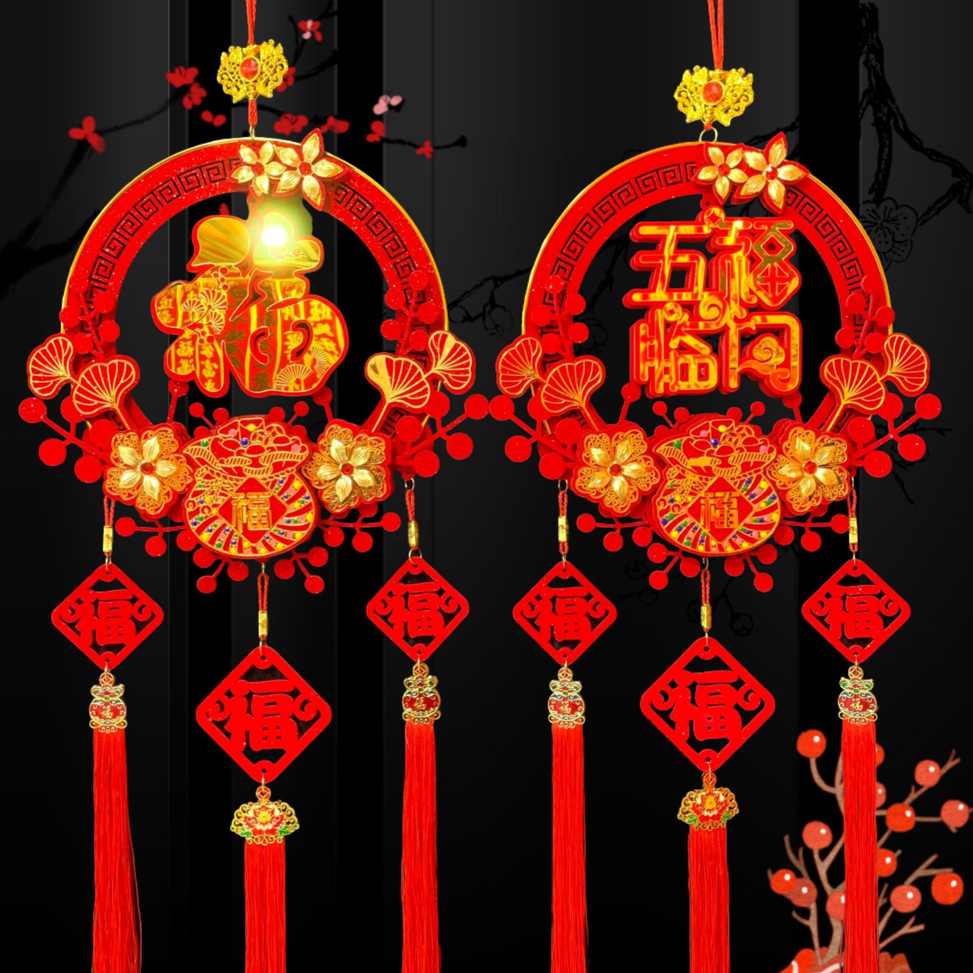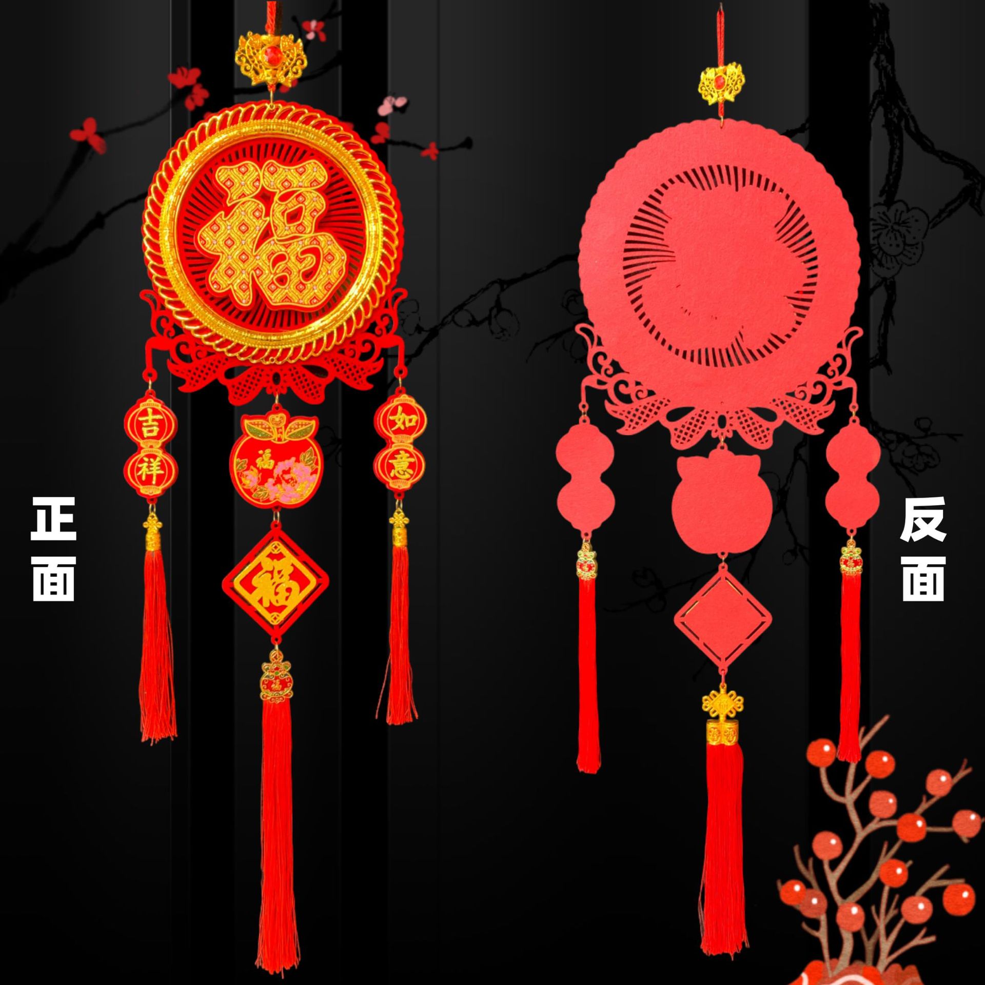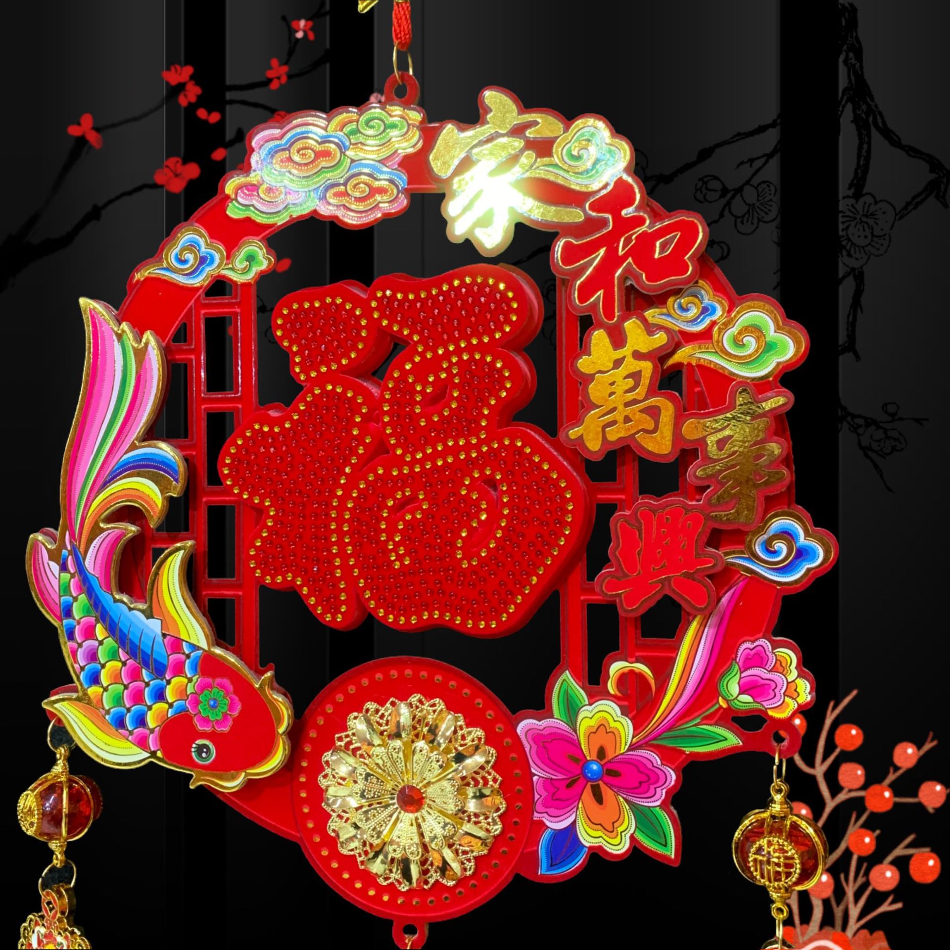 新款春节客厅玄关流苏挂饰装饰圆福红福烫钻亚克力挂件