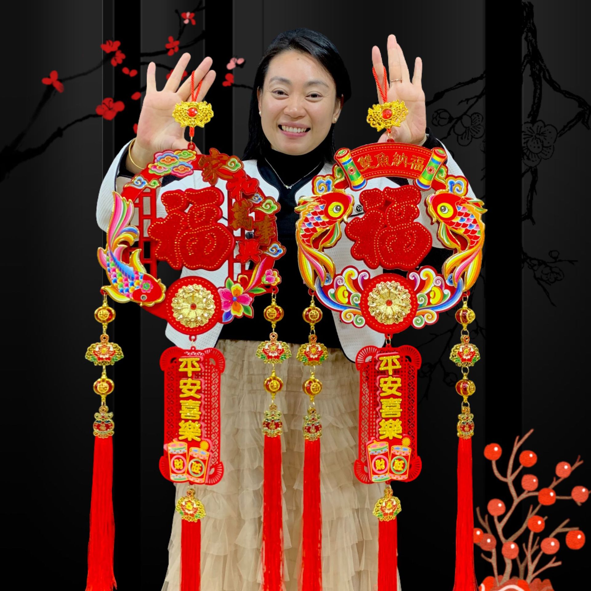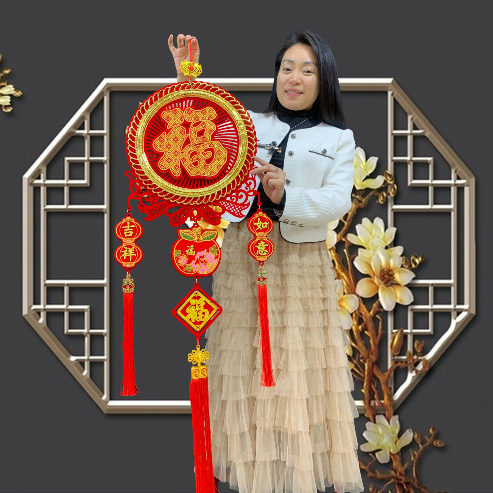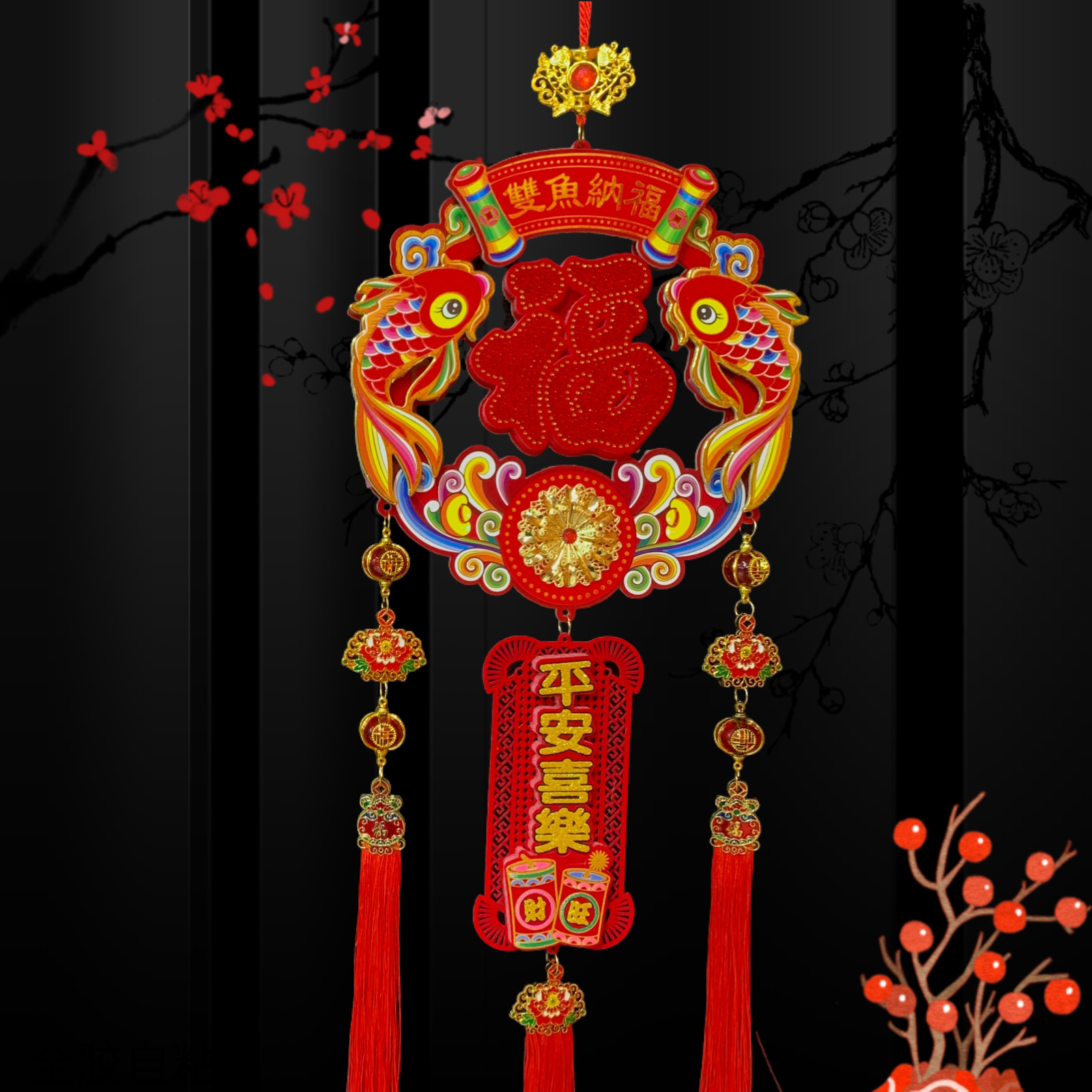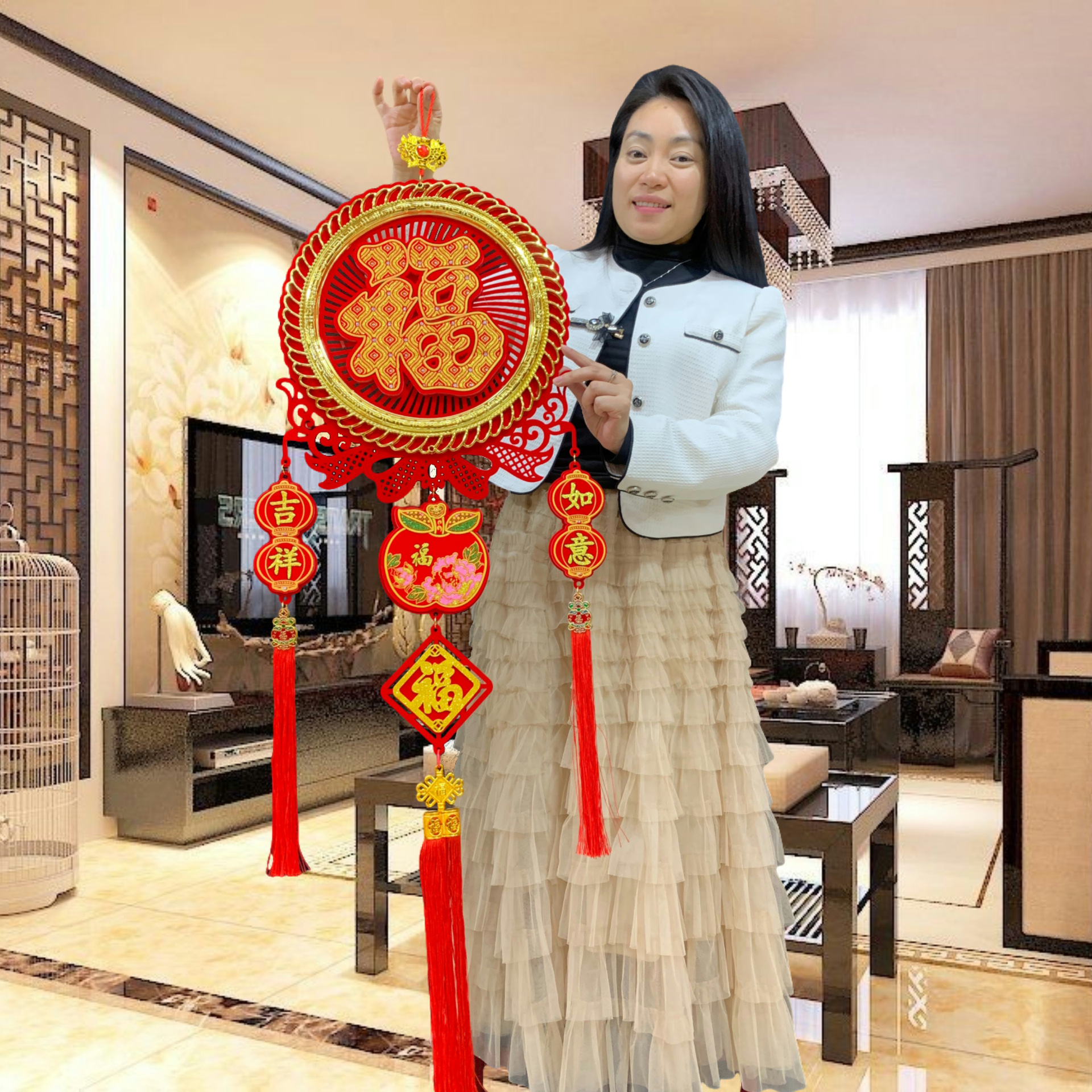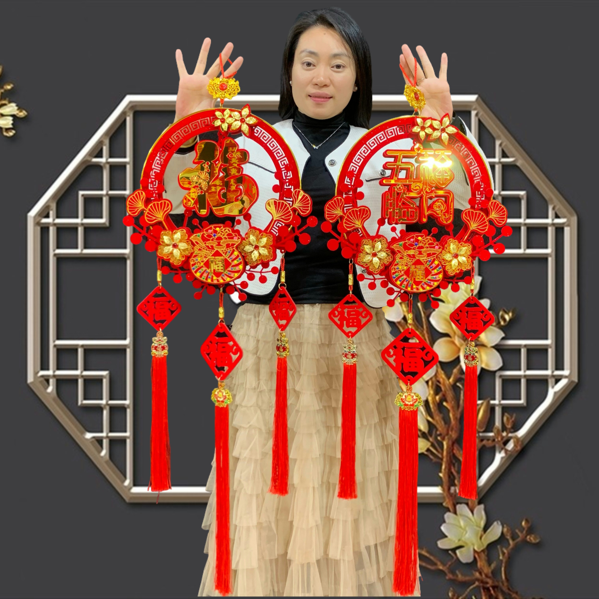 新款春节客厅玄关流苏挂饰装饰圆福红福烫钻亚克力挂件