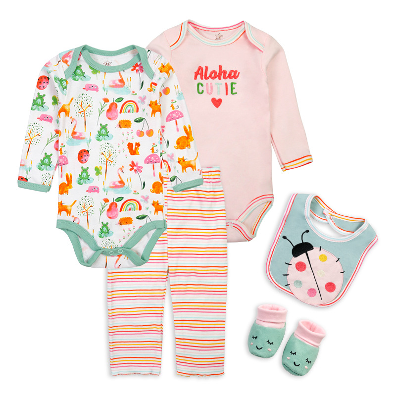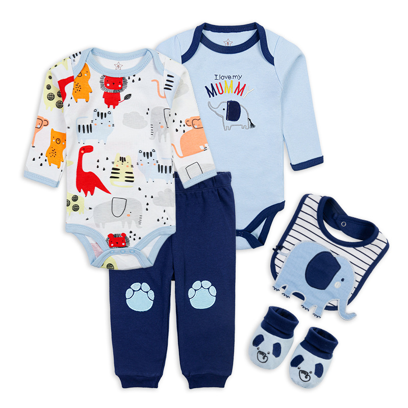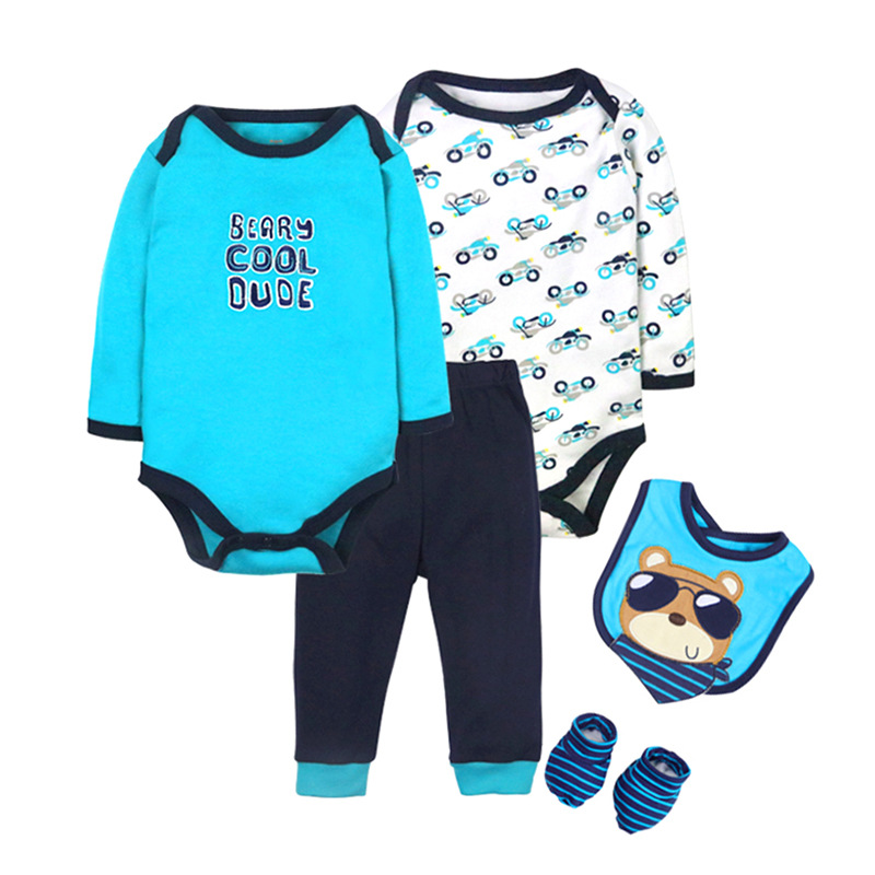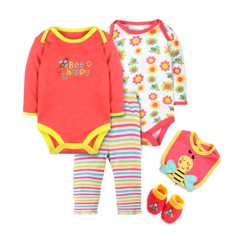 棉童装春季中性现货批发男女长裤套装婴儿衣服男童女童包屁衣