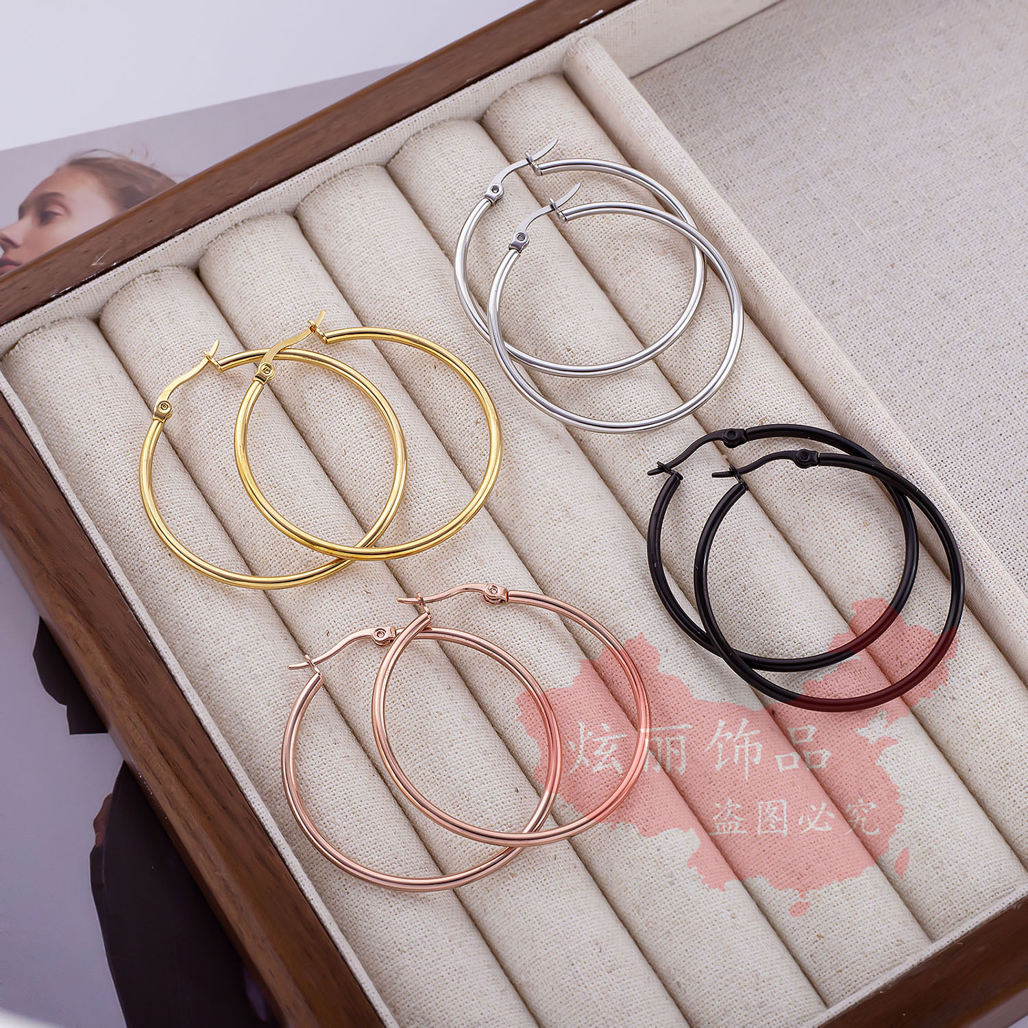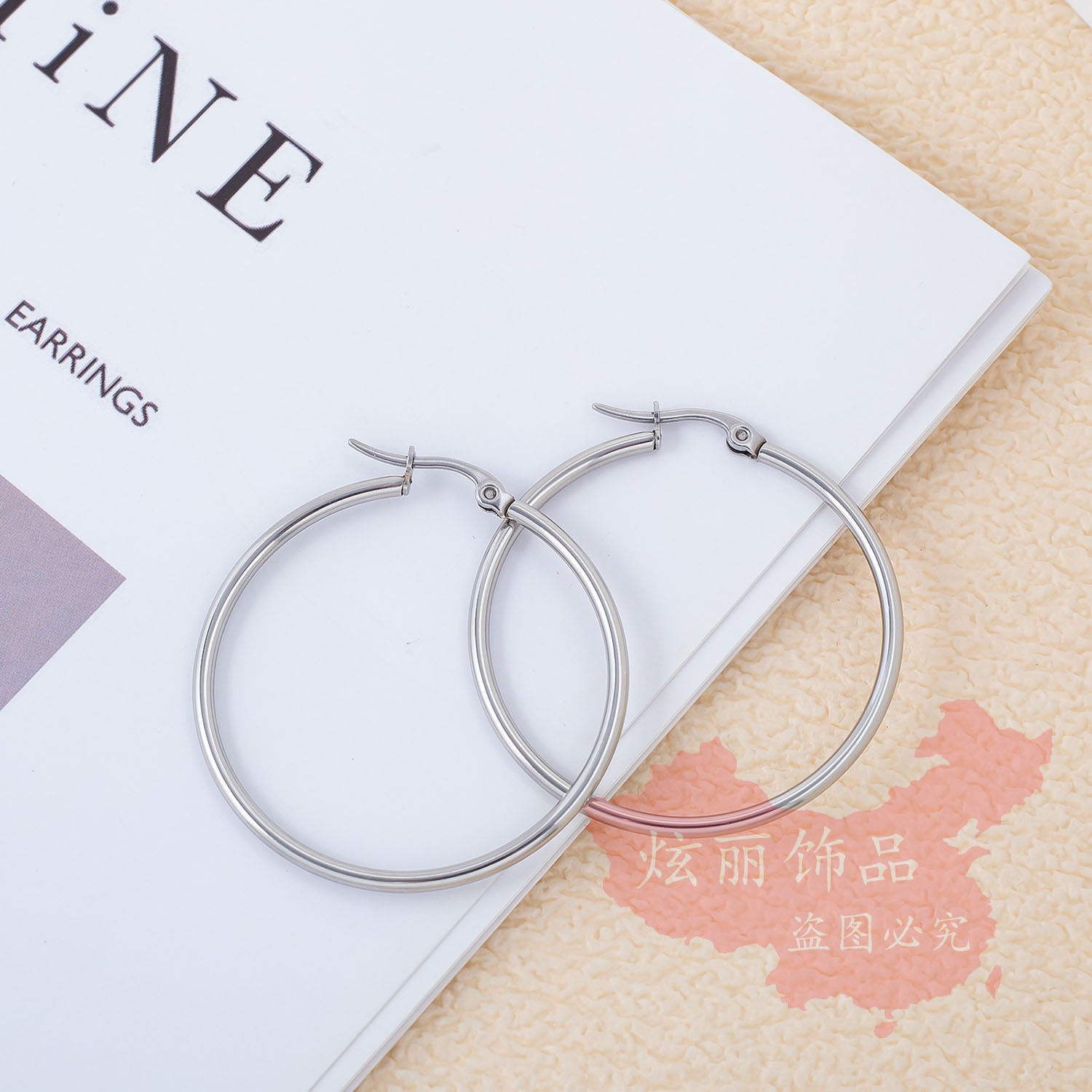 经典不锈钢圆圈圈耳环夸张高级感钛钢防过敏欧美大线耳环扣首饰品