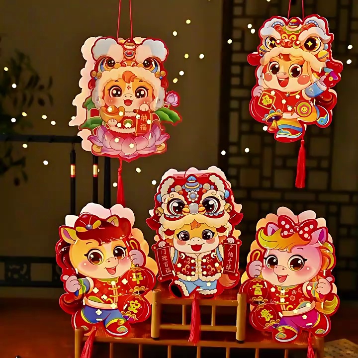 2026新年灯笼马年花灯儿童手工diy材料包发光手提卡通灯笼对春联
