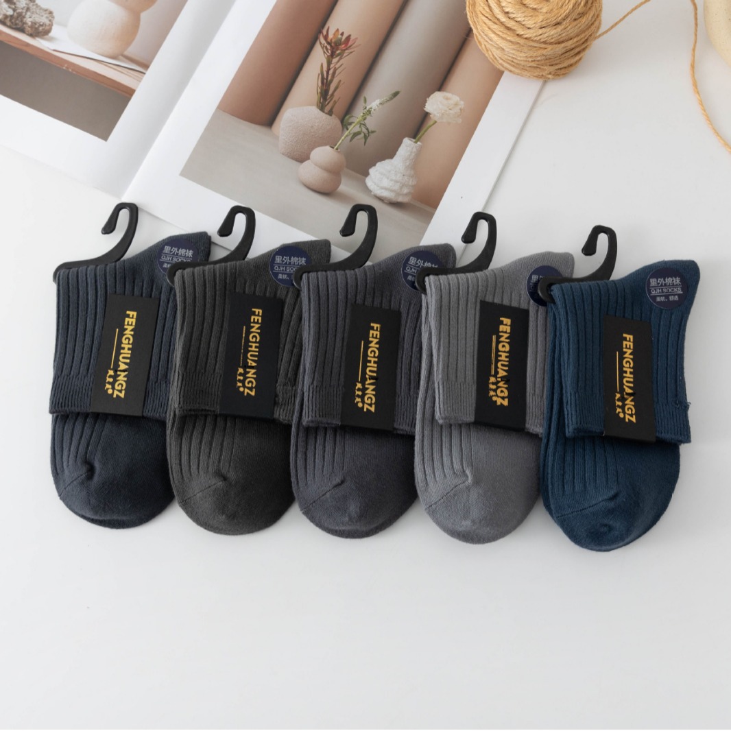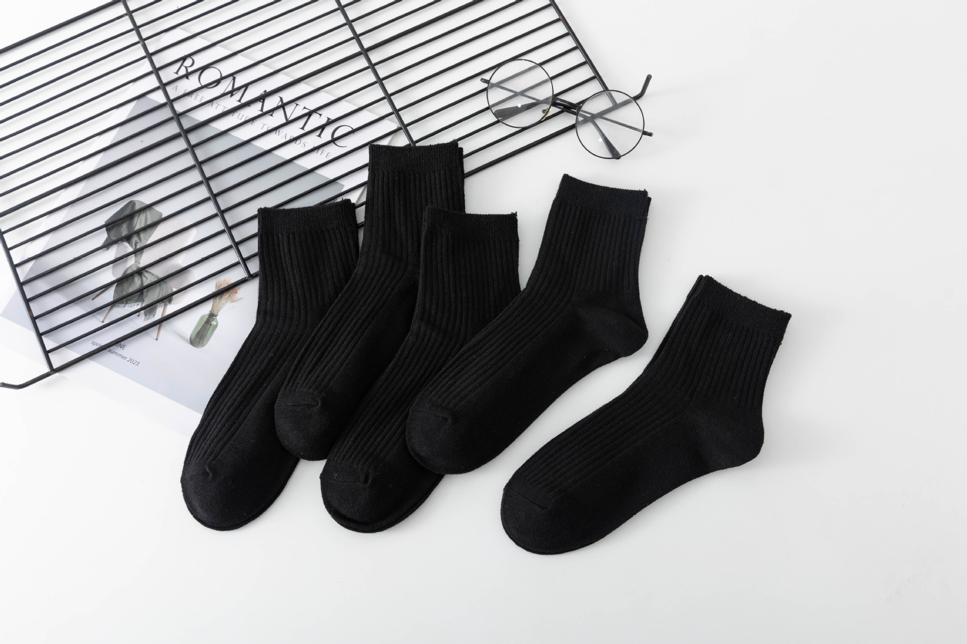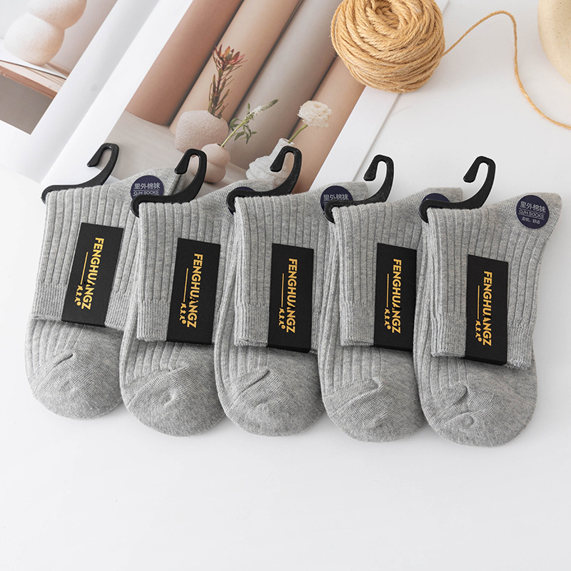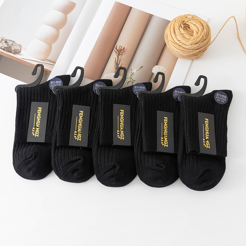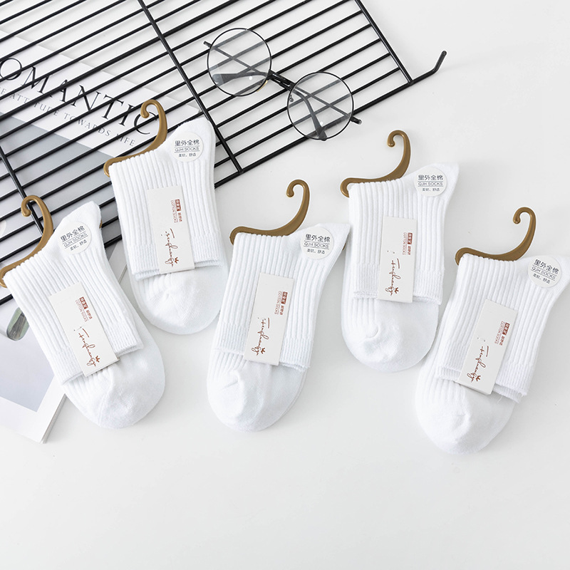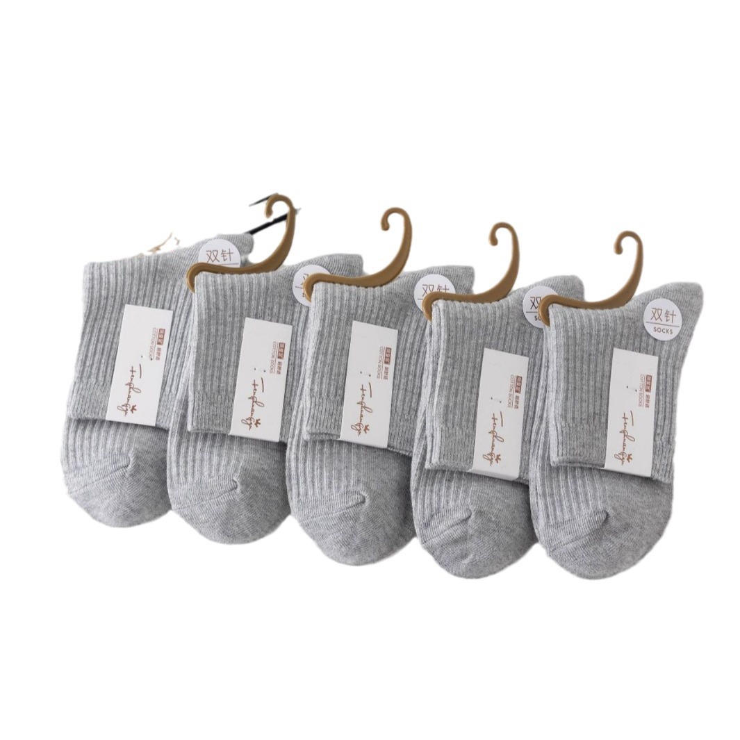 袜子女中筒袜秋冬季男袜中筒百搭纯色竖条棉袜双针宽条四季男女袜