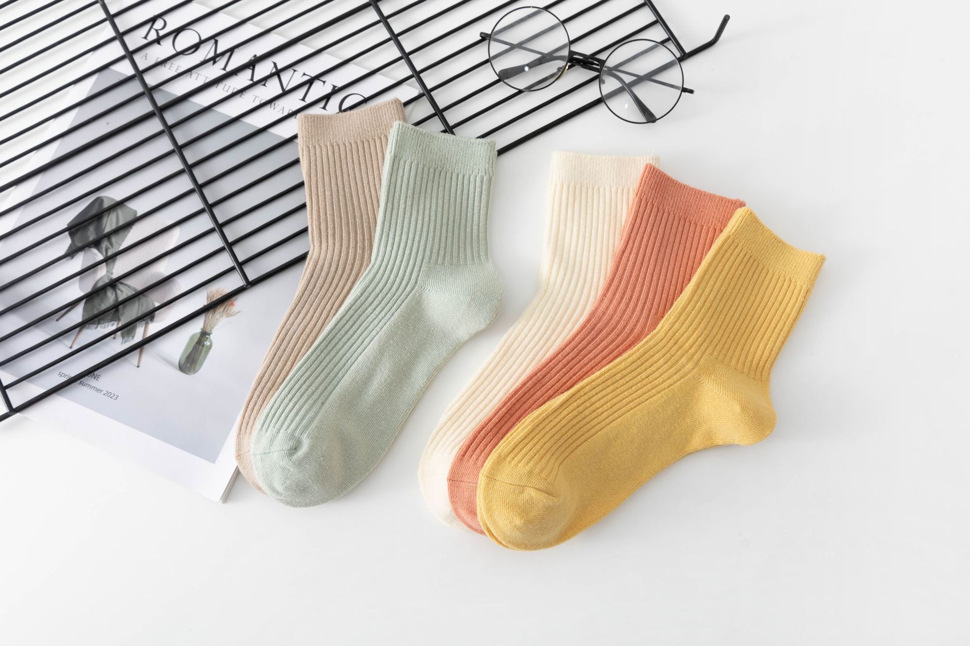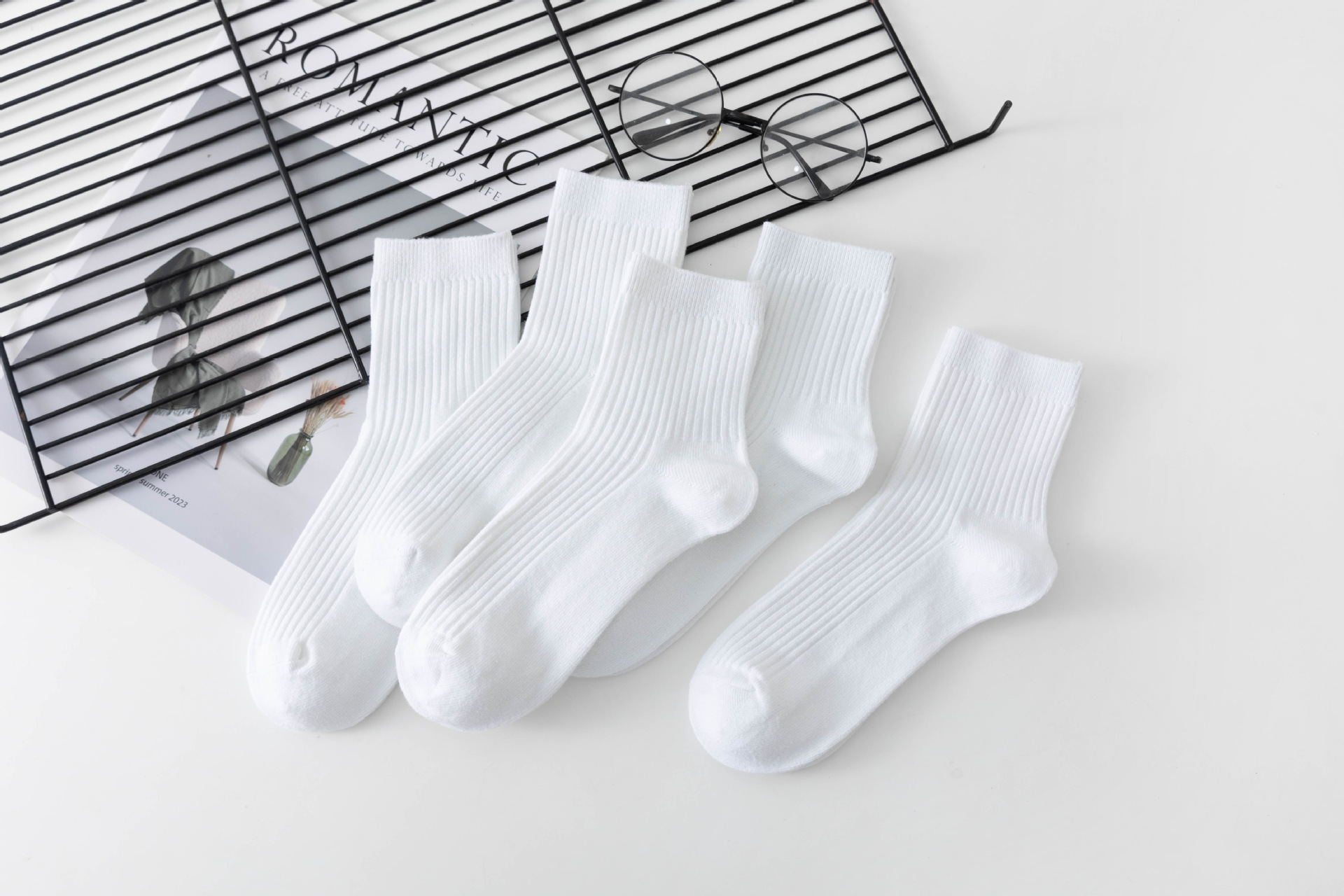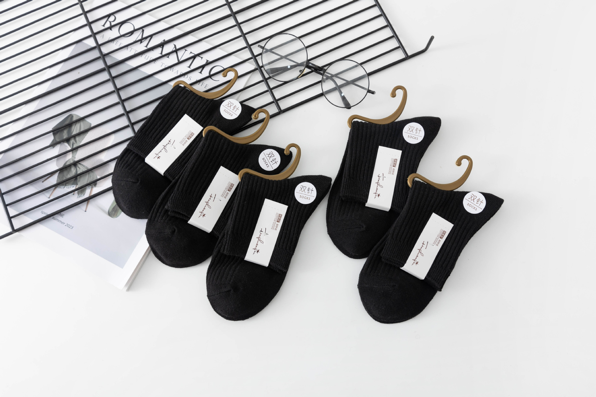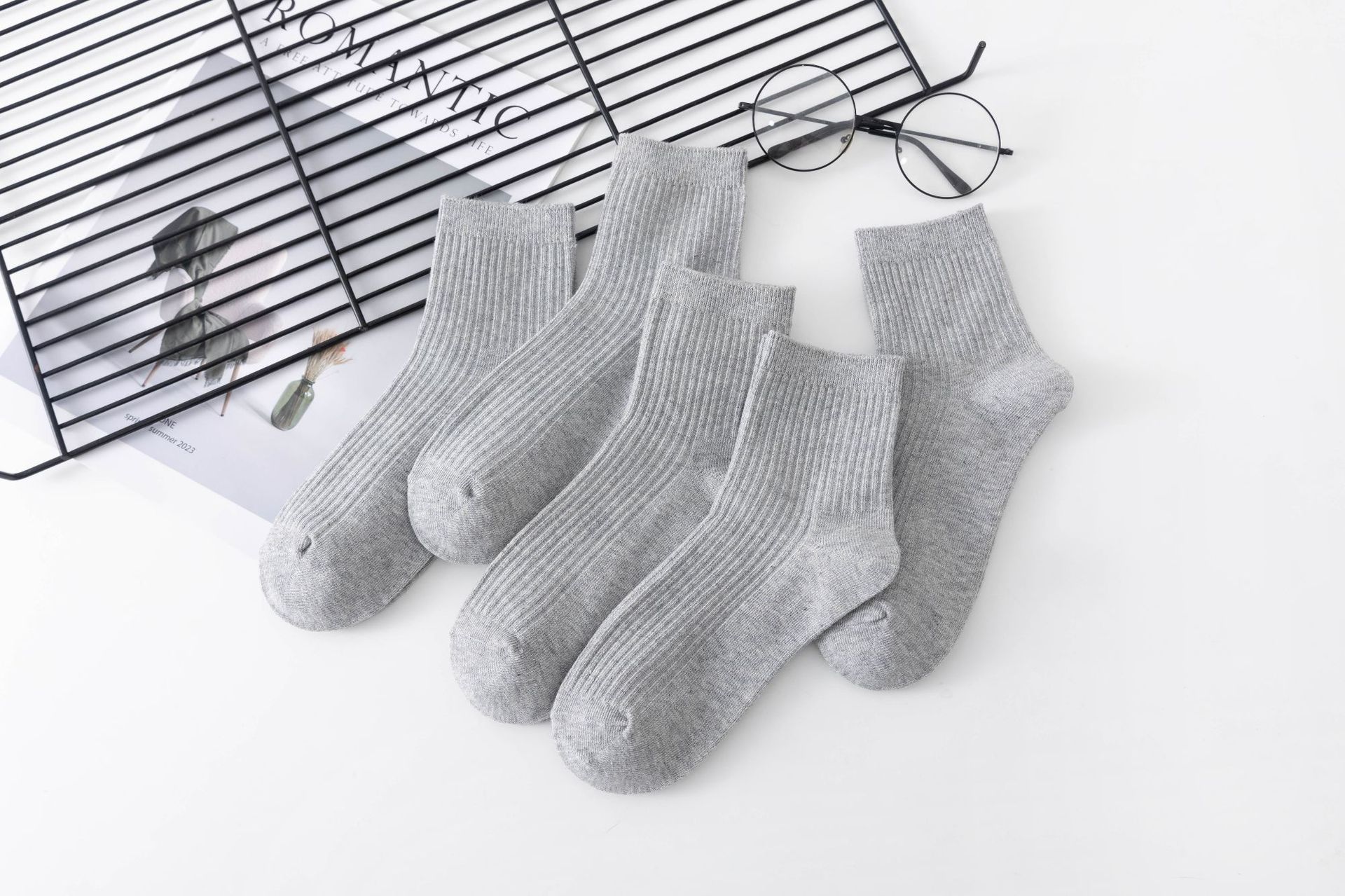袜子女中筒袜秋冬季男袜中筒百搭纯色竖条棉袜双针宽条四季男女袜