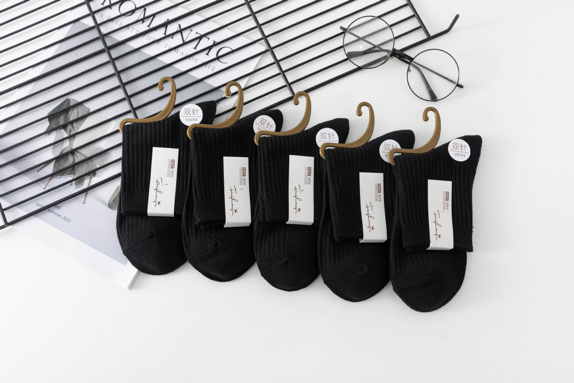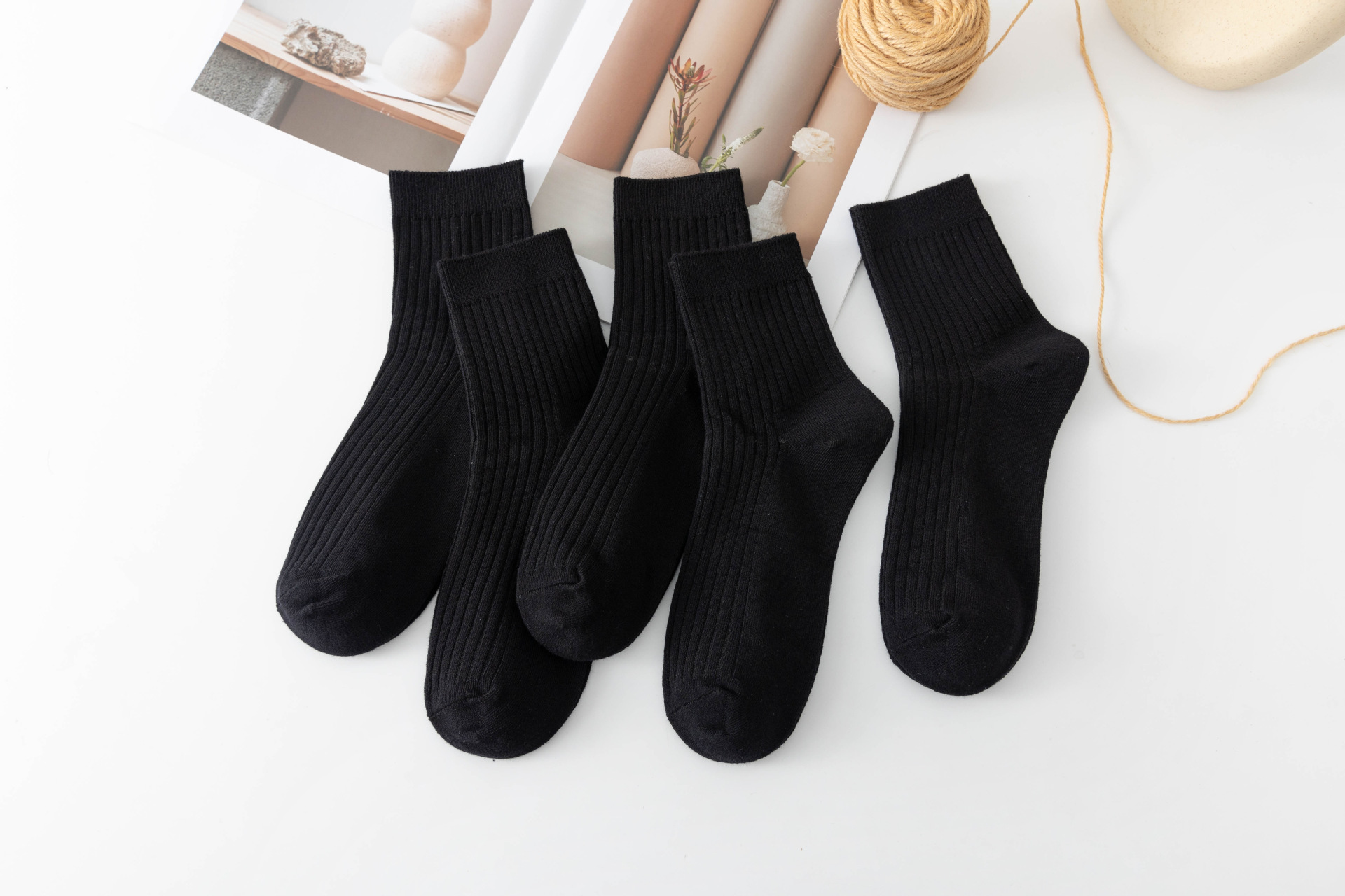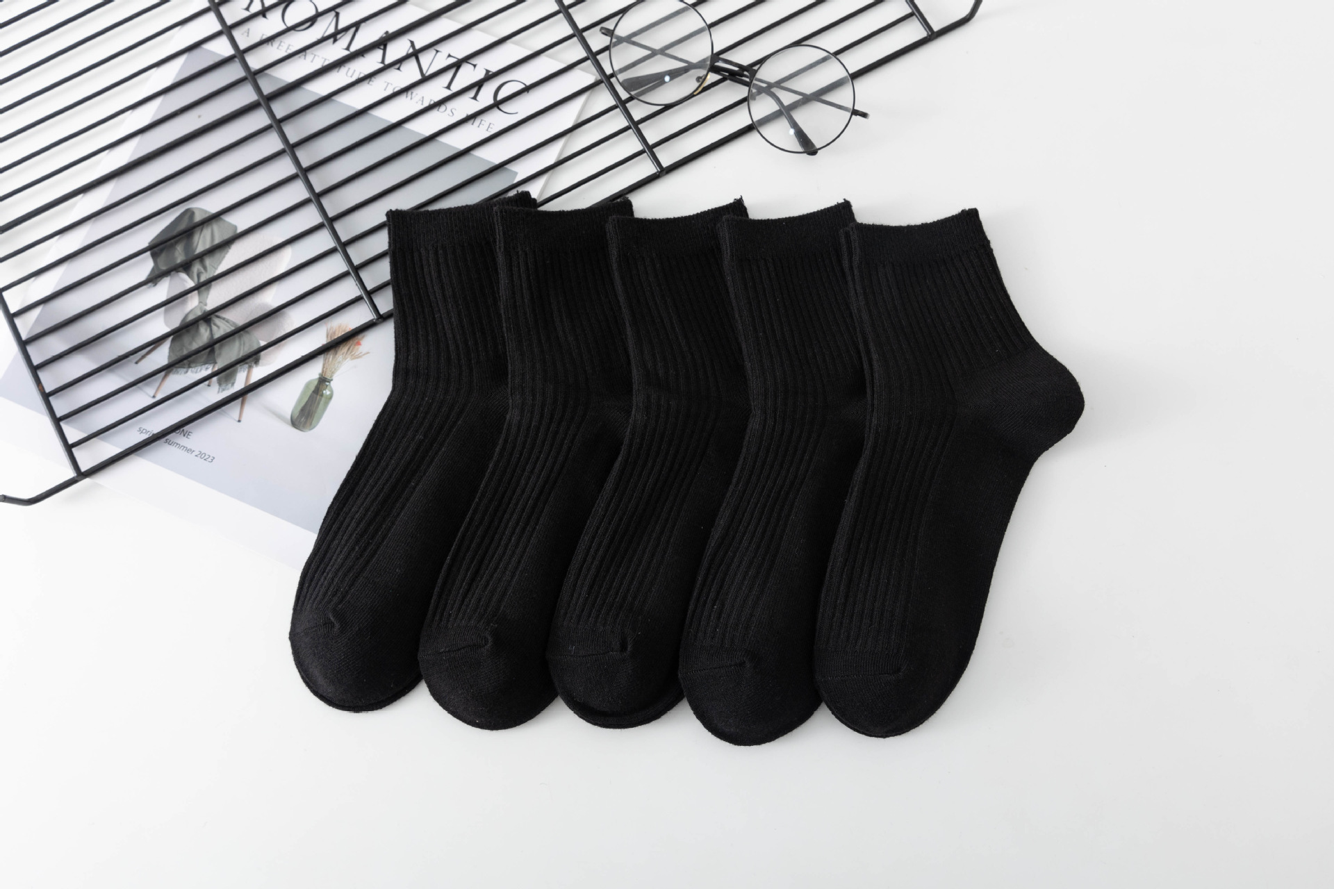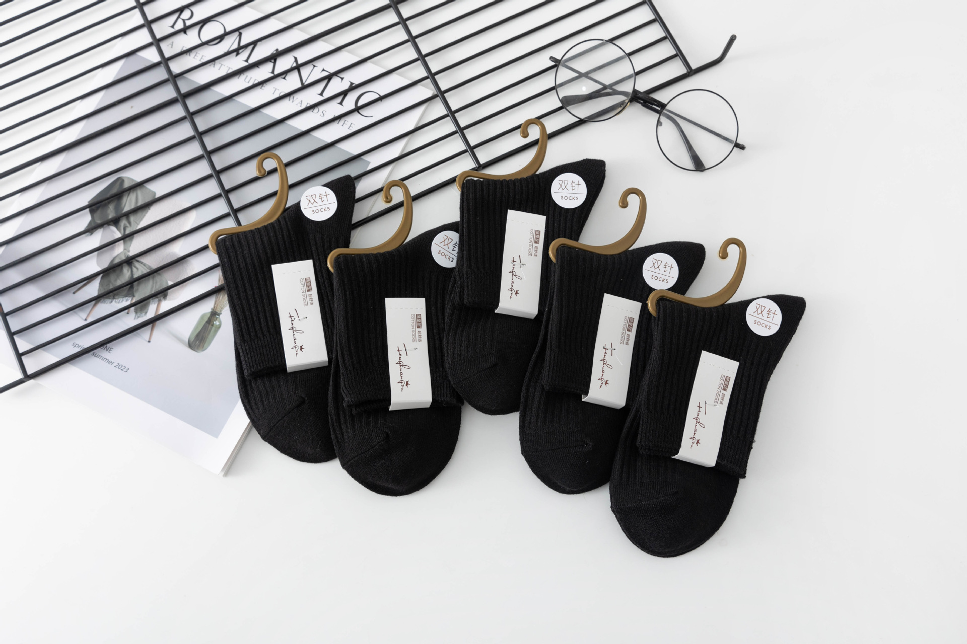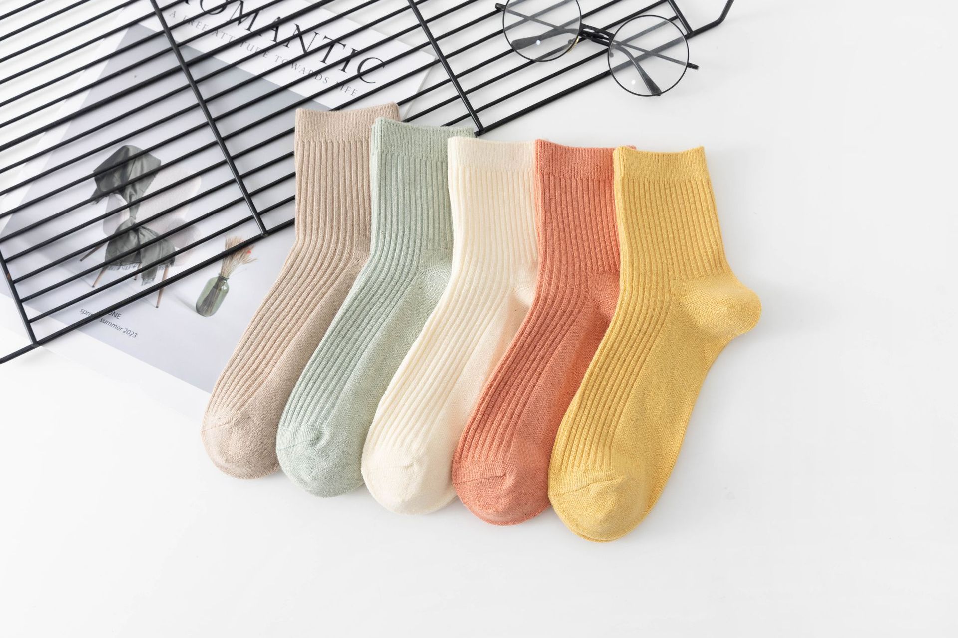 袜子女中筒袜秋冬季男袜中筒百搭纯色竖条棉袜双针宽条四季男女袜
