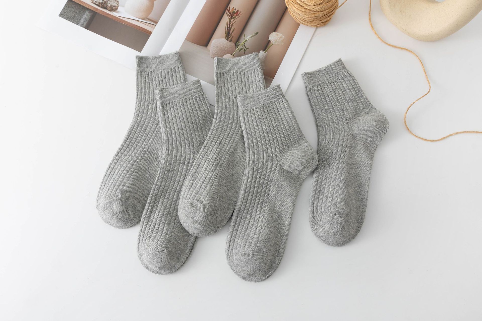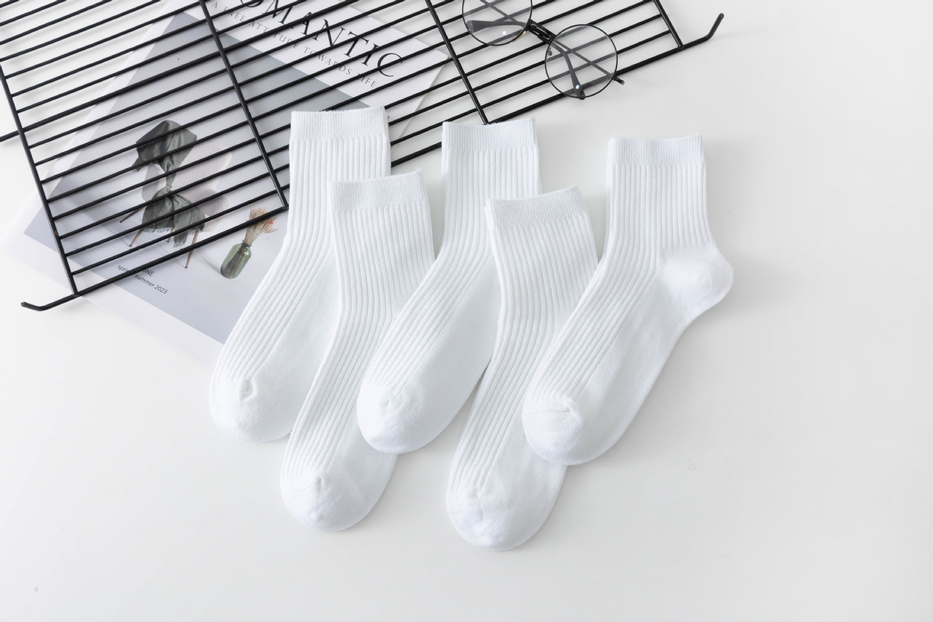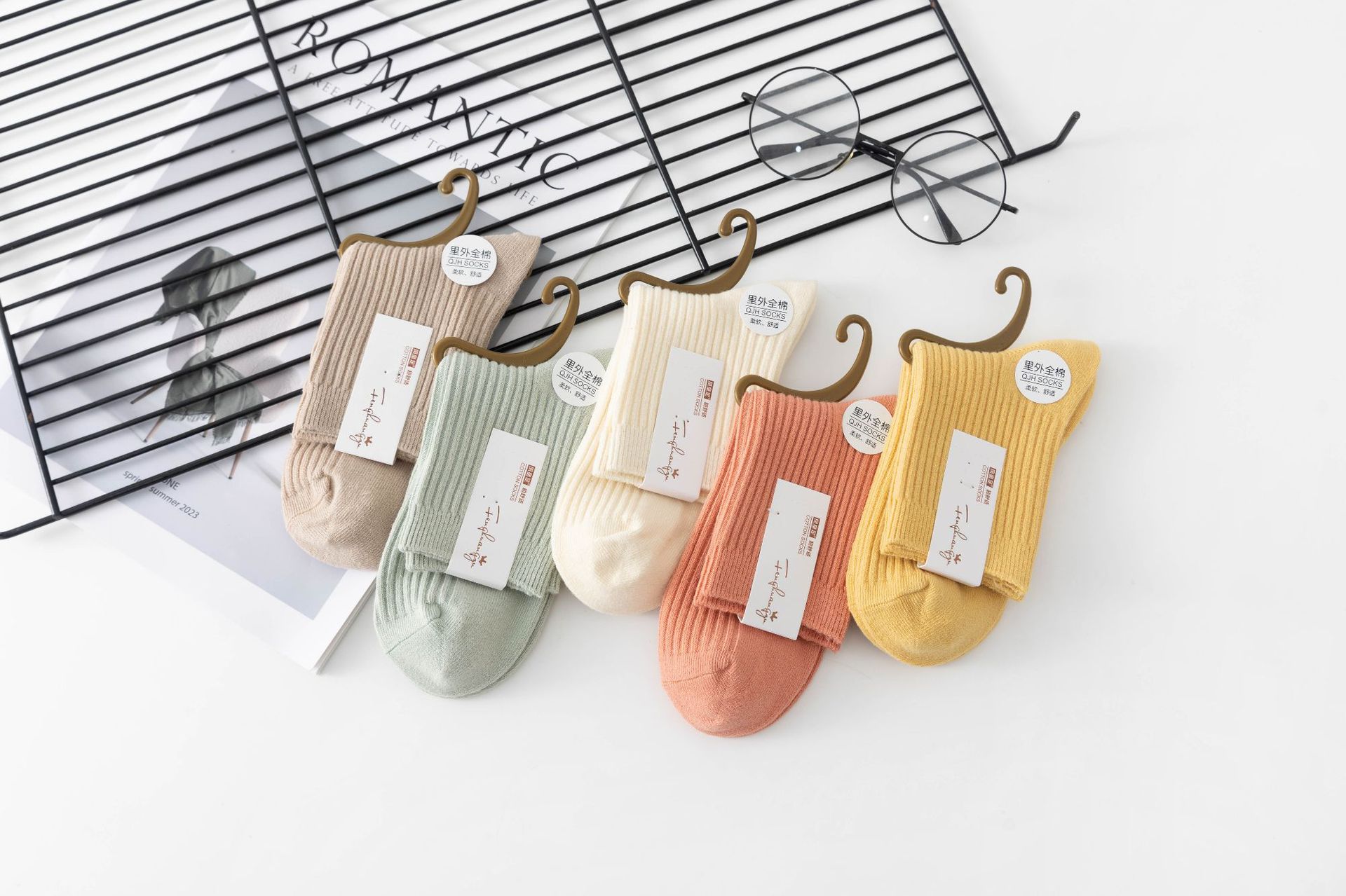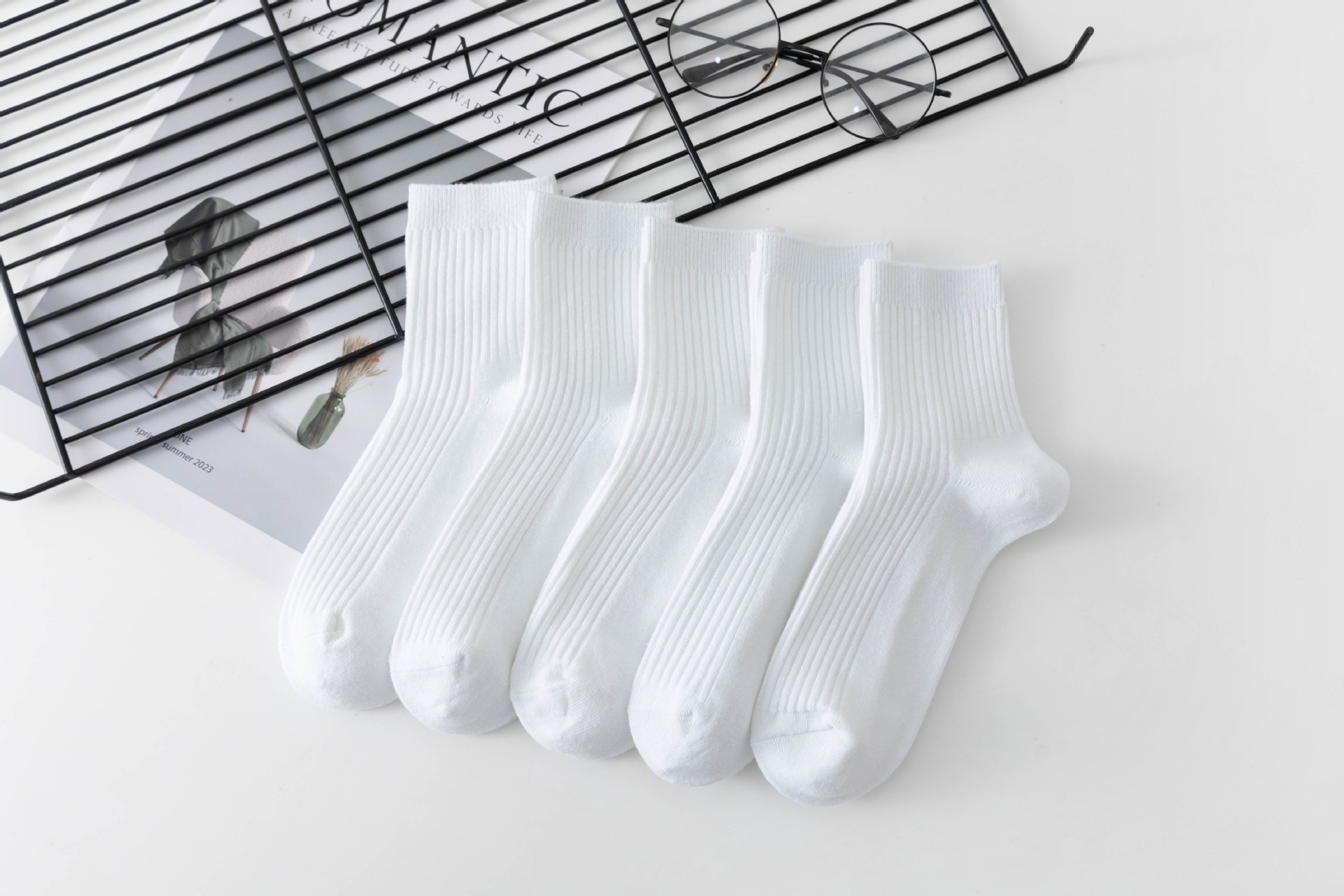 袜子女中筒袜秋冬季男袜中筒百搭纯色竖条棉袜双针宽条四季男女袜