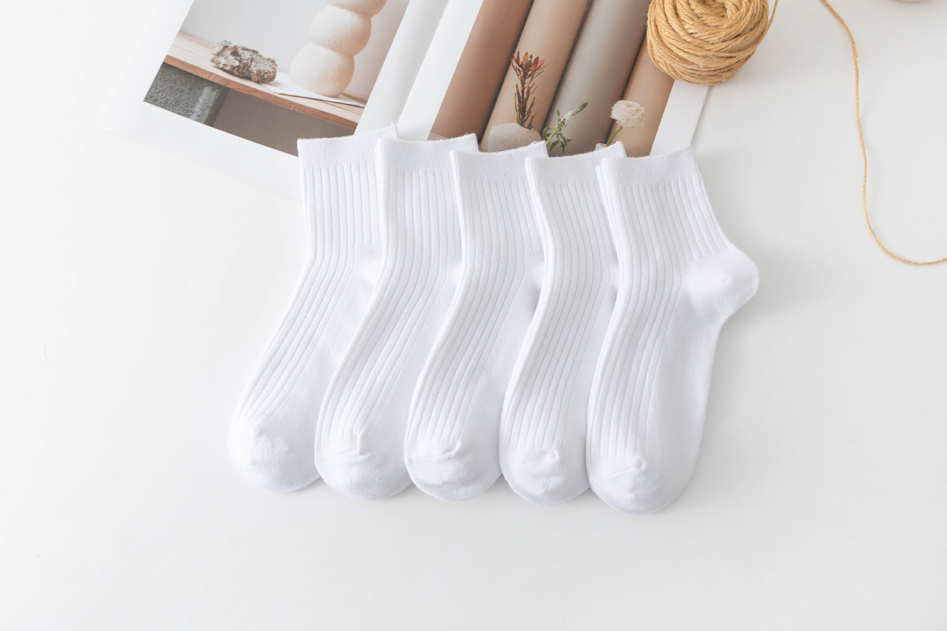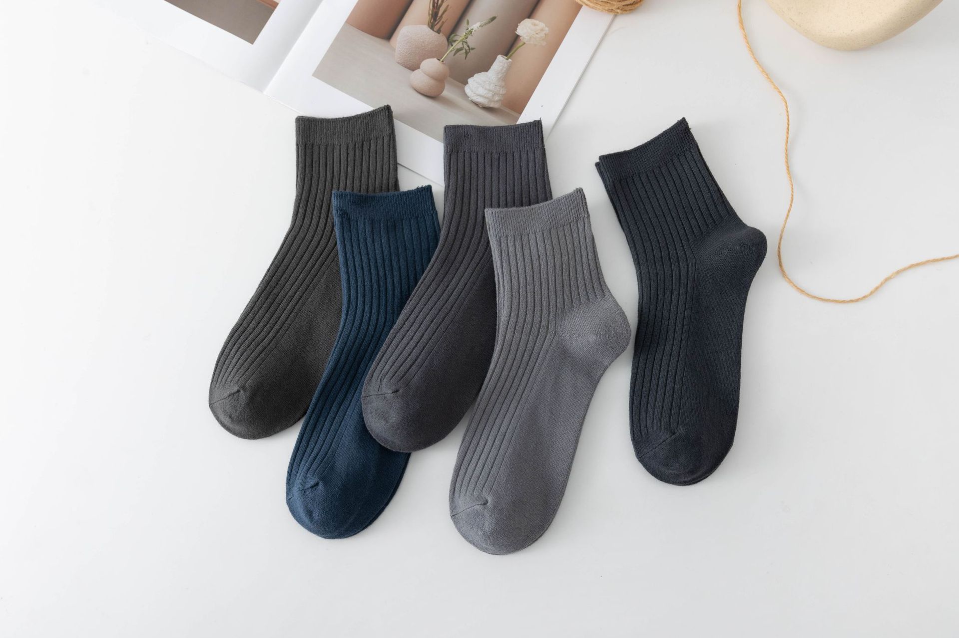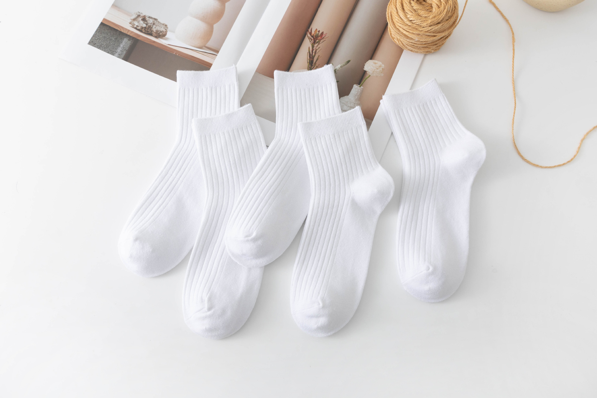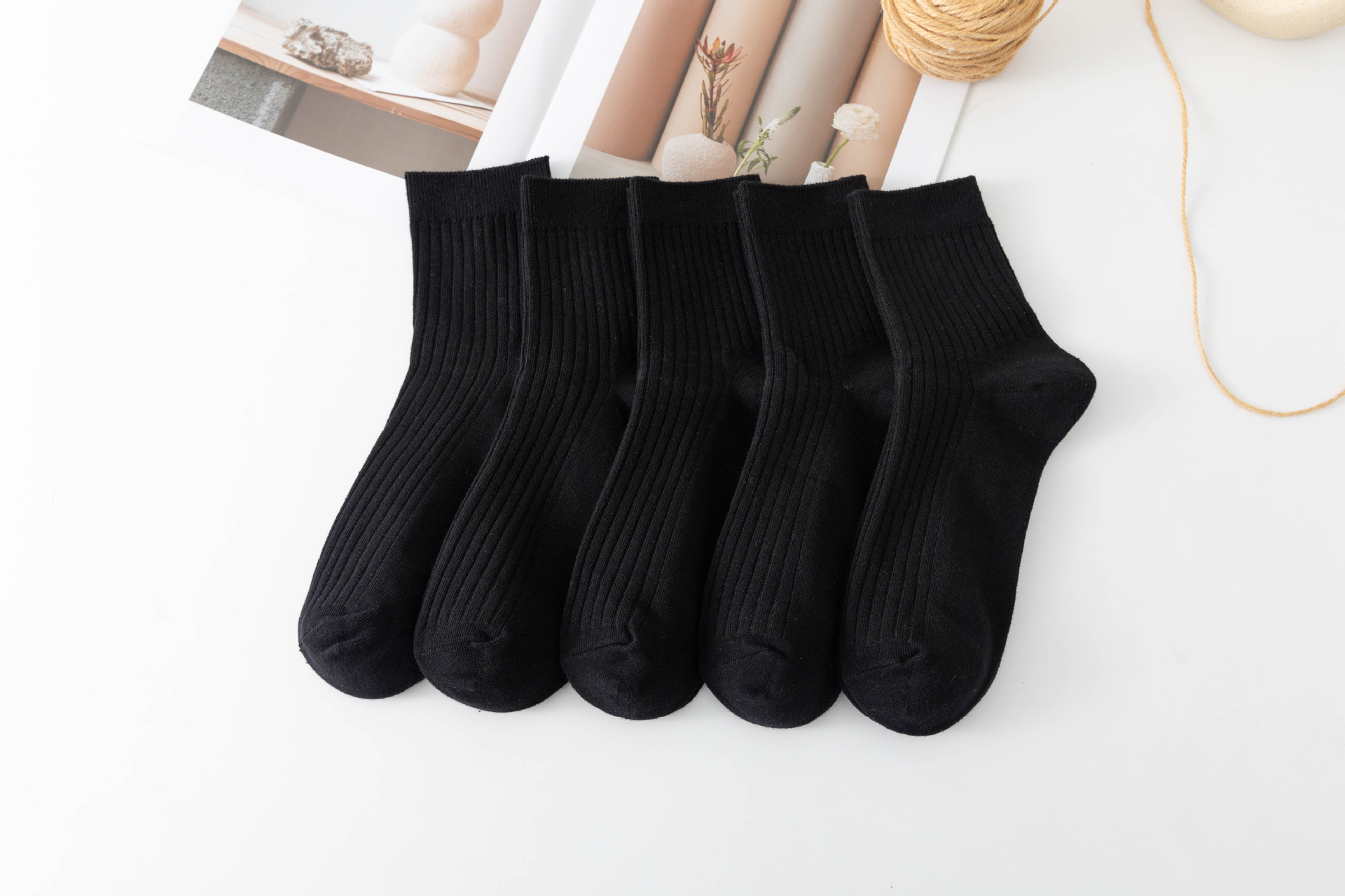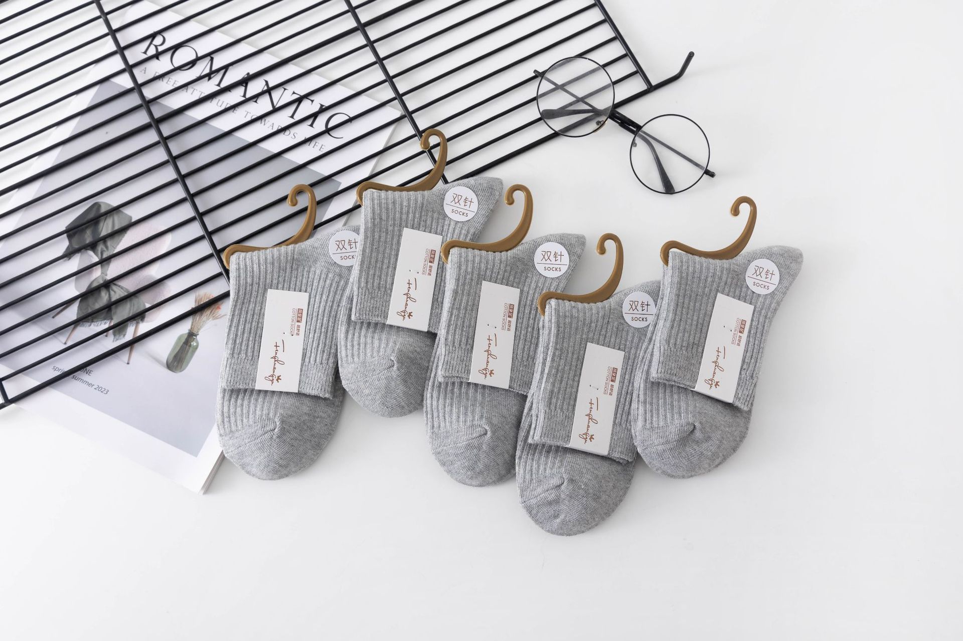 袜子女中筒袜秋冬季男袜中筒百搭纯色竖条棉袜双针宽条四季男女袜