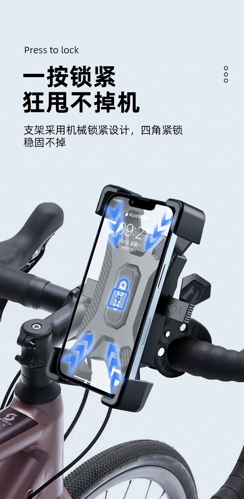 KP-919手机支架自行车电动车摩托车通用型导航车把固定重力支架