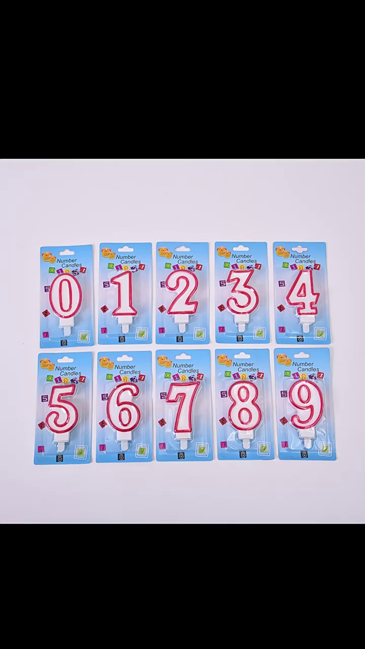 经典红边数字蜡烛无烟带底座儿童周岁生日派对庆生蛋糕装饰用品