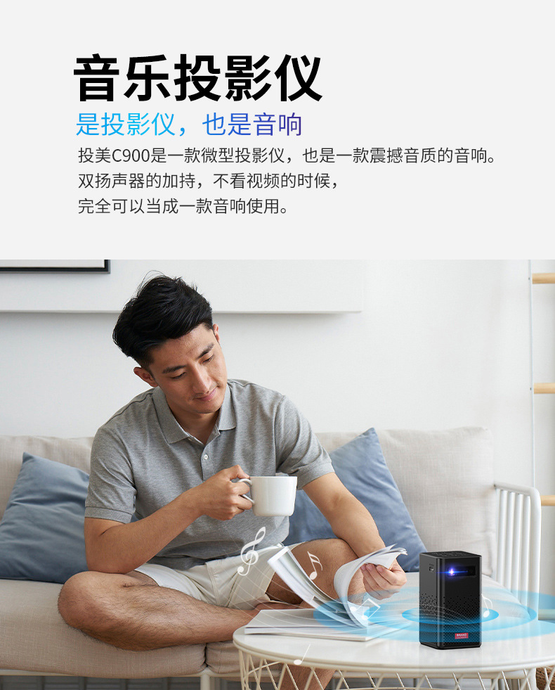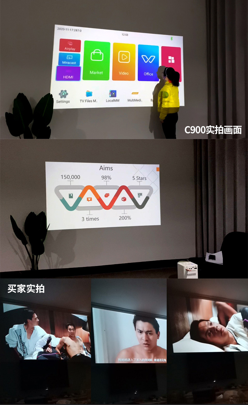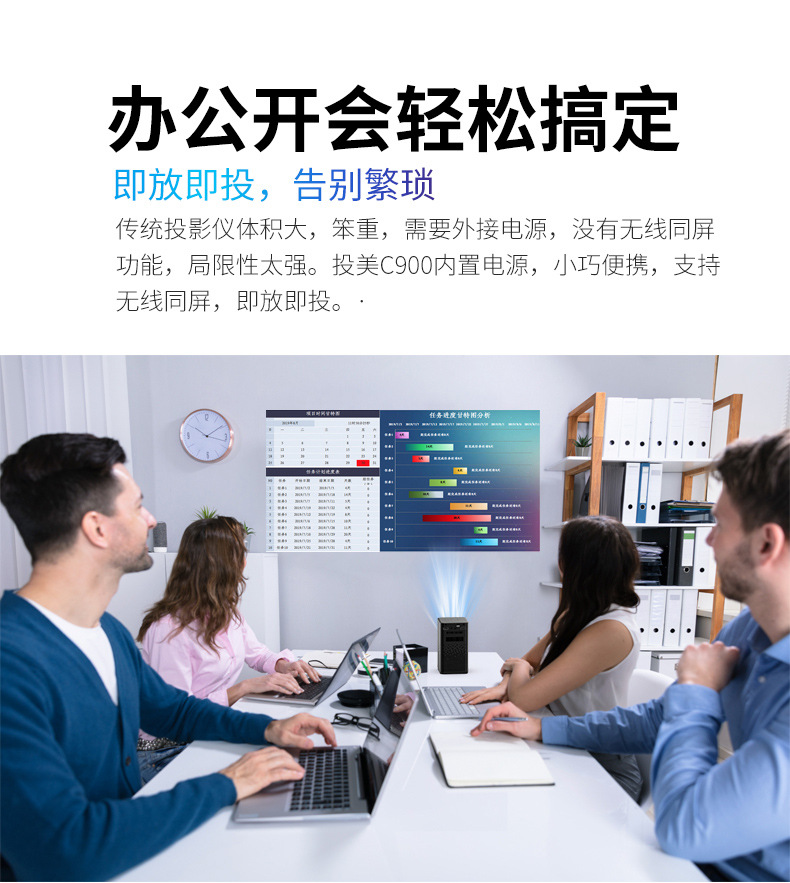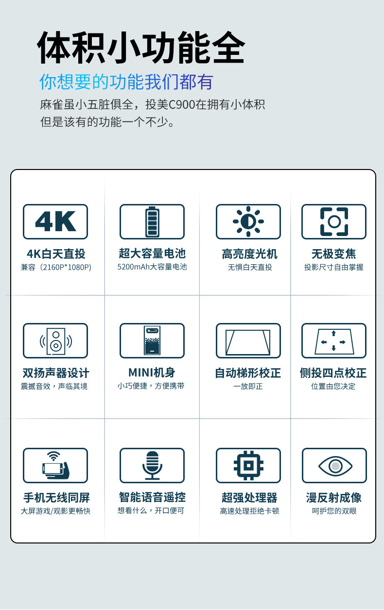 C900投影仪 便携式小型高清4k卧室宿舍内置电池家用酒店投影机