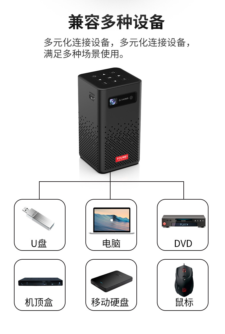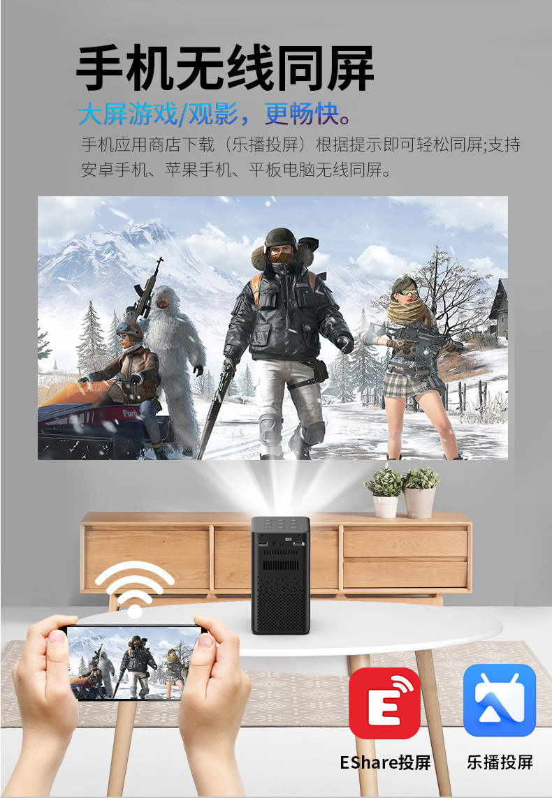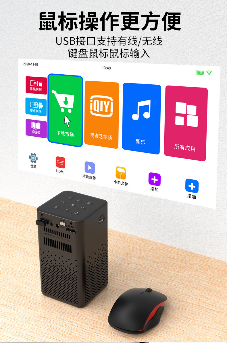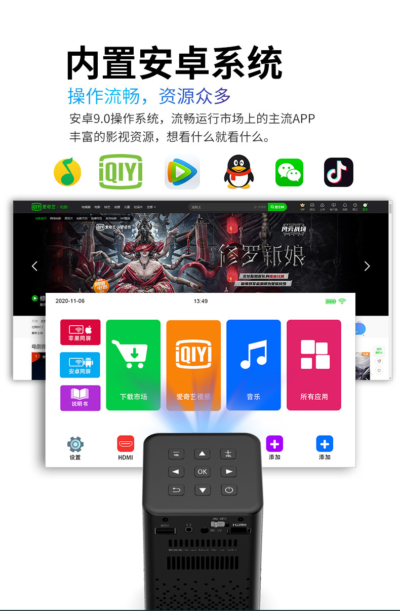 激光DLP 微型投影仪,自带包包,支架,电源,遥控,支持多国语言,安卓9.0系统,支持OEM,ODM