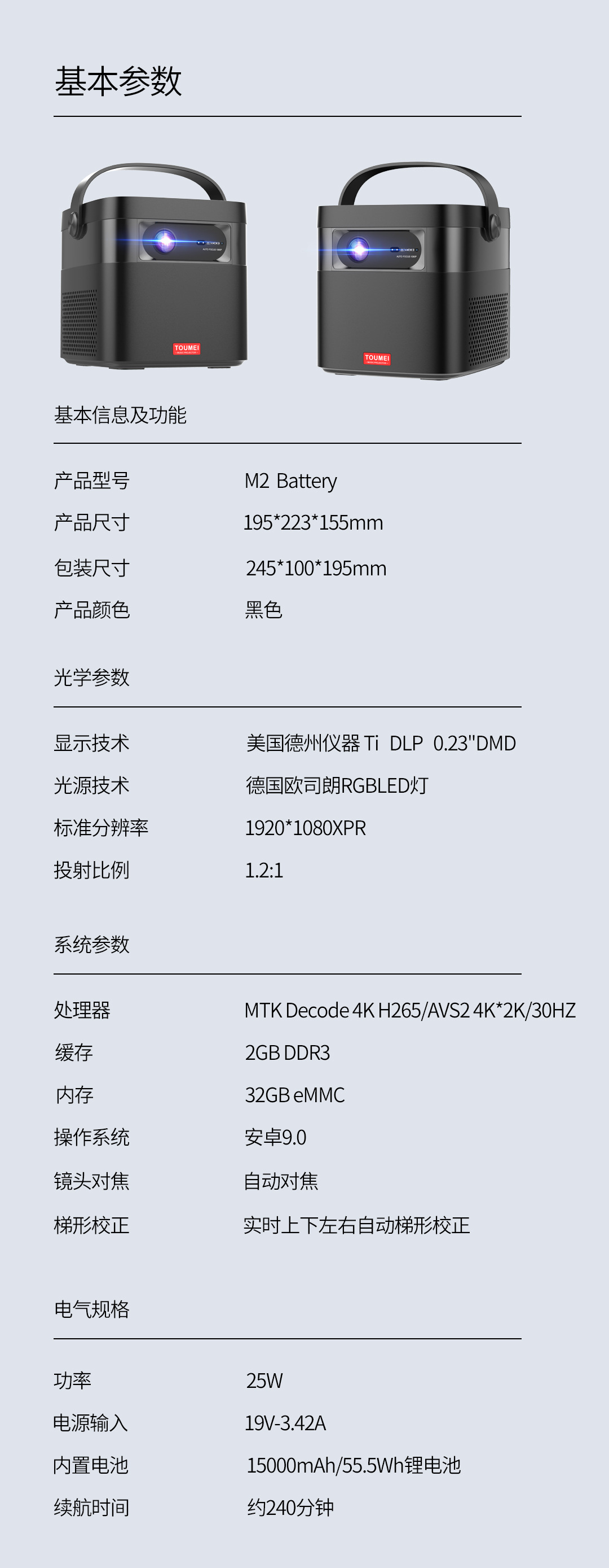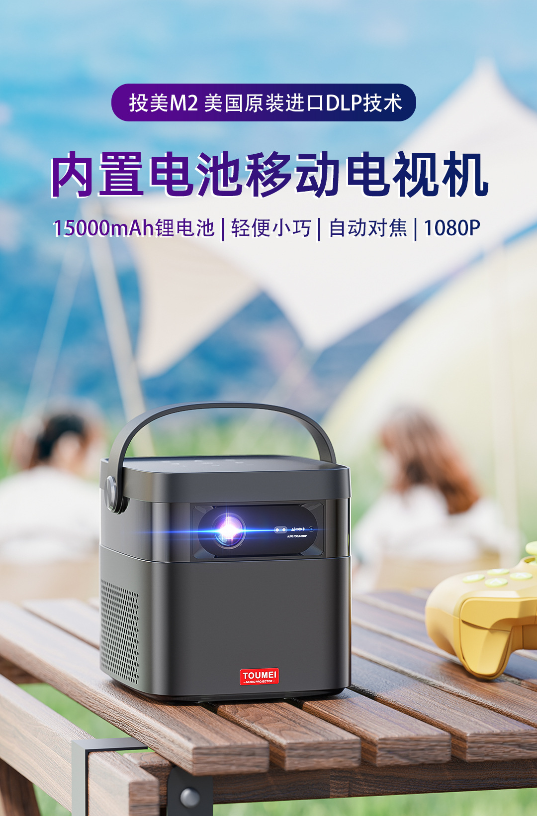 M2微型投影仪户外大容量电池露营餐饮酒店民宿可手提移动便携投影