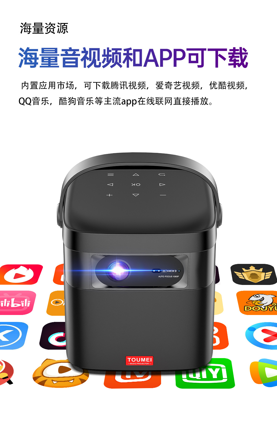 M2 1080P DLP 内置电池,自动对焦,跃动T型矫正,自带户外包包,户外,家用都可以,英文版本还有分GTV 版本,自带谷歌原装系统,客户选择版本可以联系客服。GTV 版本成本贵200元,请知悉!支持定制OEM 。