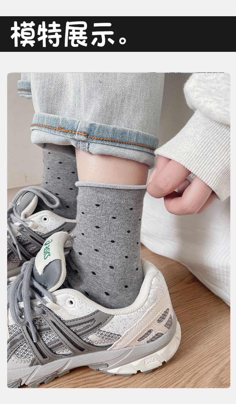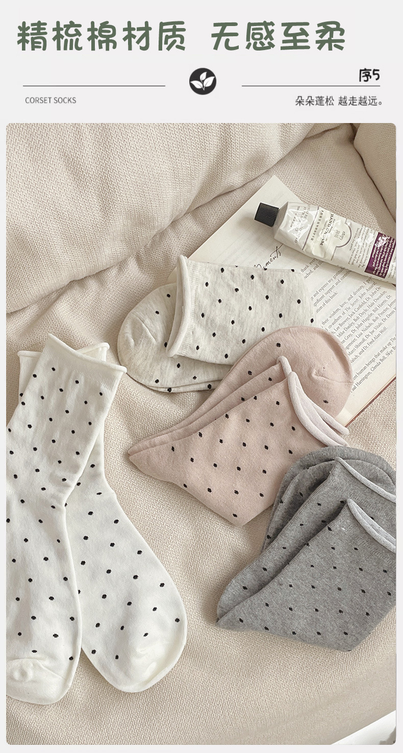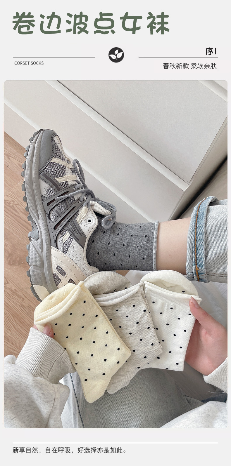 波点袜子女 小红书同款木耳边中筒袜棉质日系卷边堆堆袜2024新款
