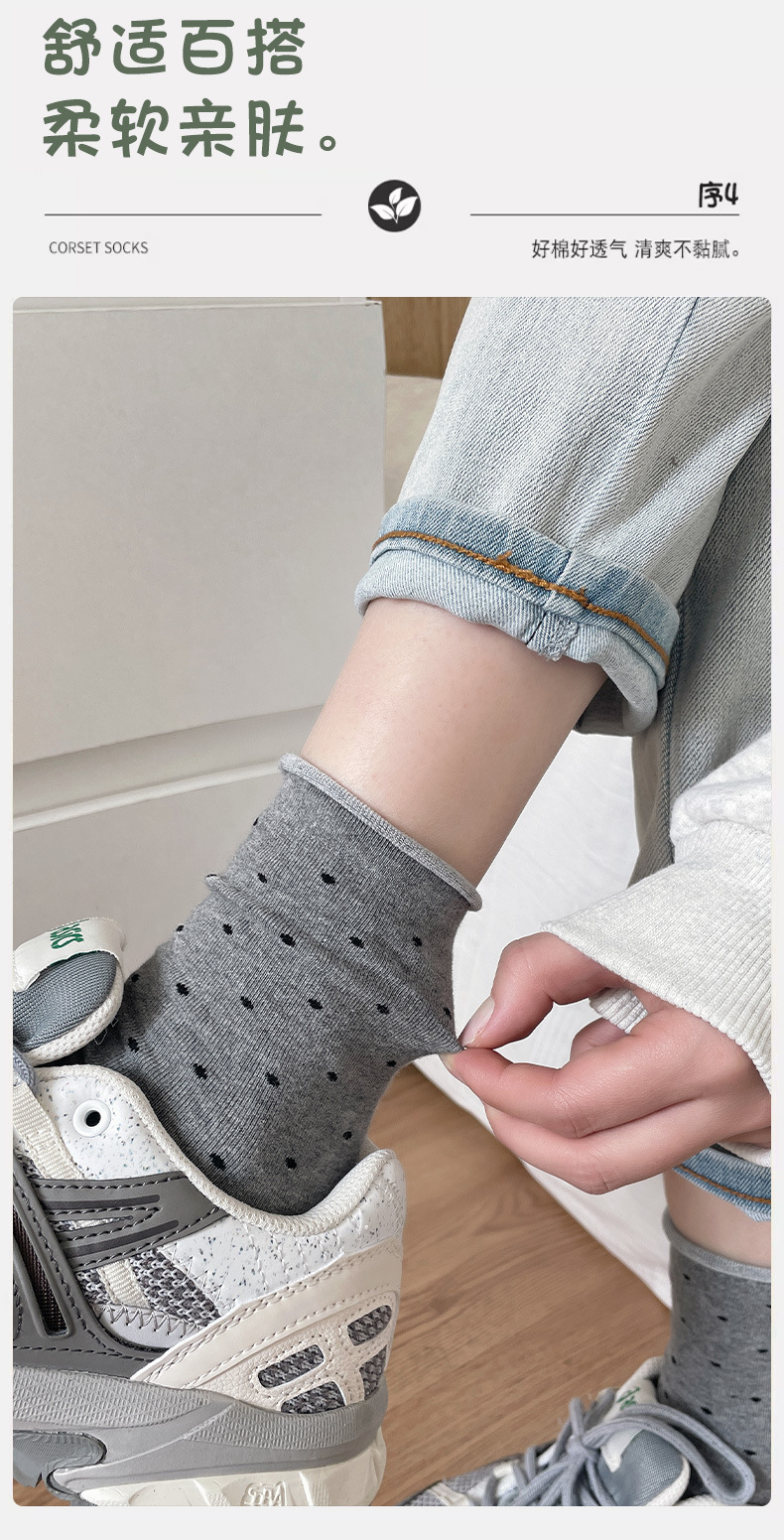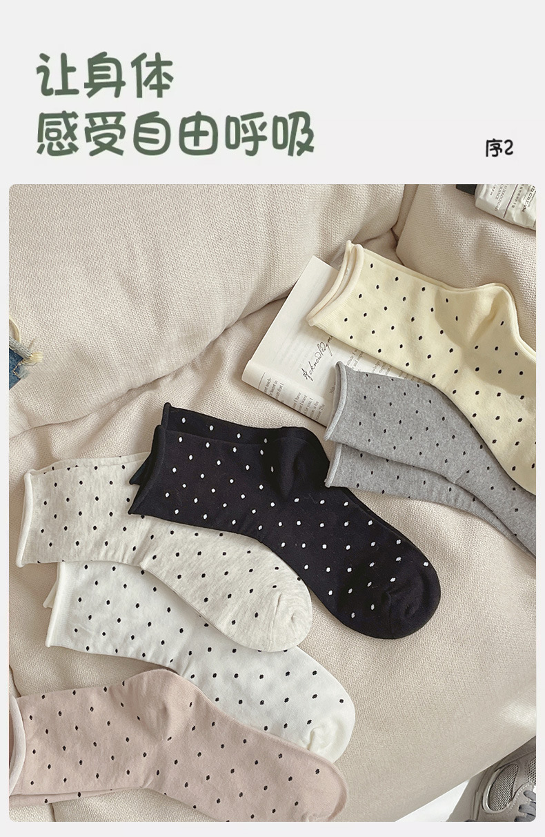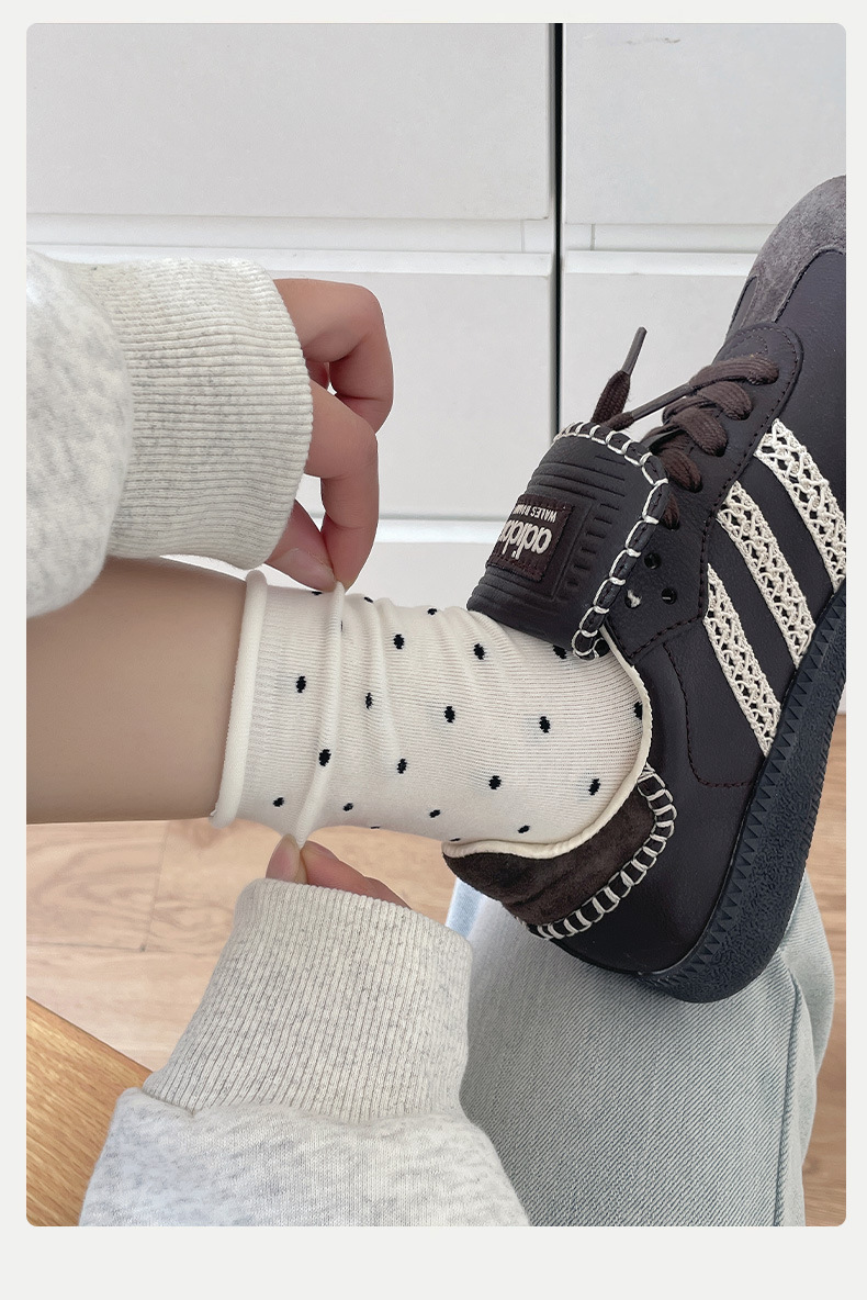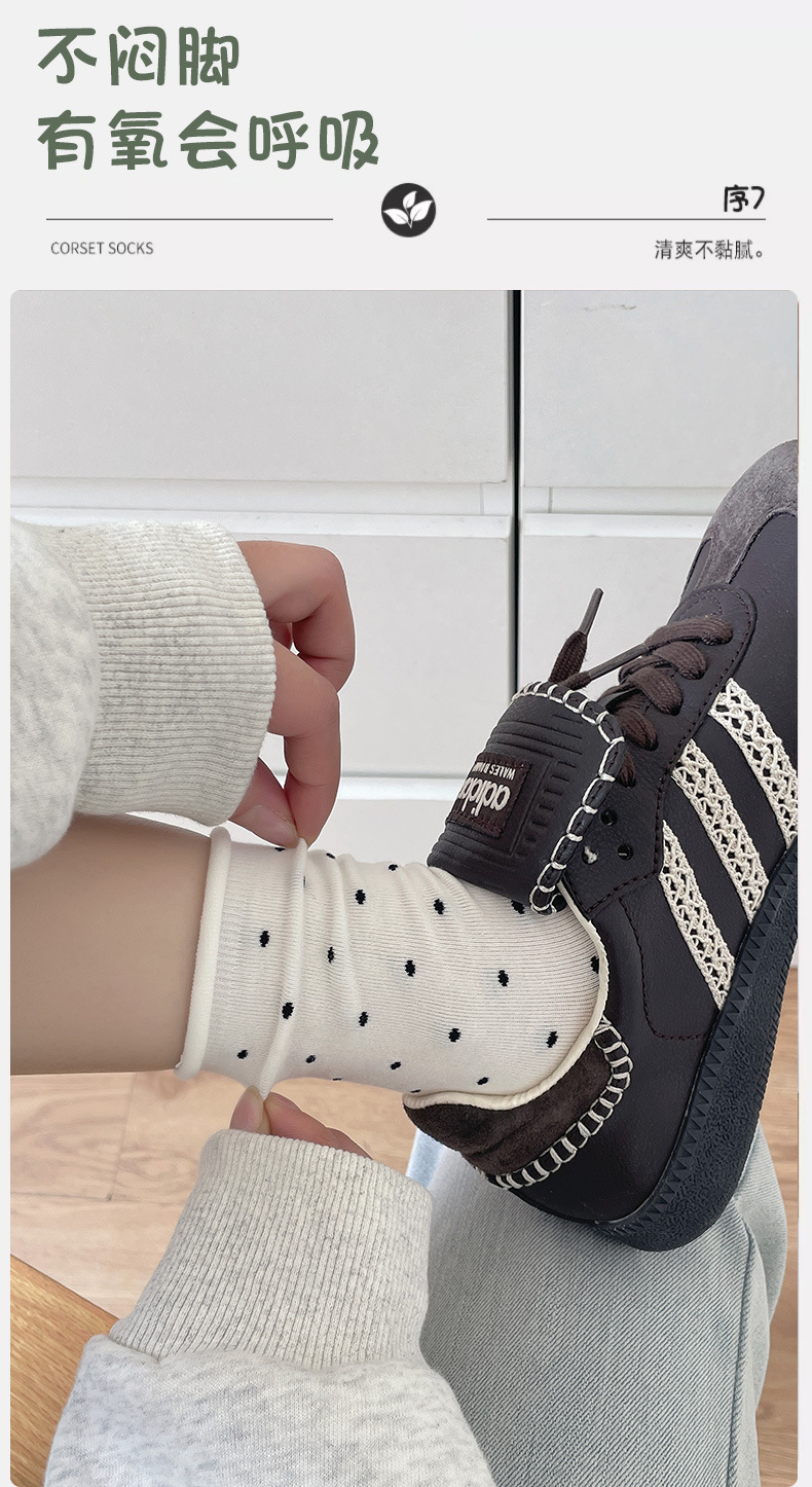 波点袜子女 小红书同款木耳边中筒袜棉质日系卷边堆堆袜2024新款