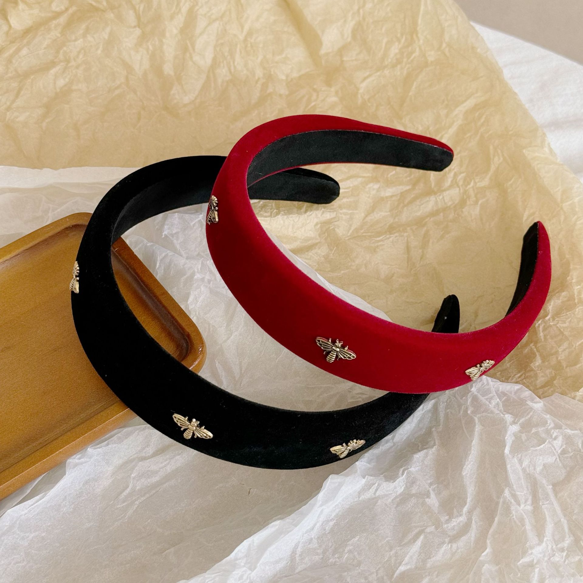 小蜜蜂黑色丝绒发箍女秋冬高级感高颅顶压发洗脸头箍发卡头饰发饰