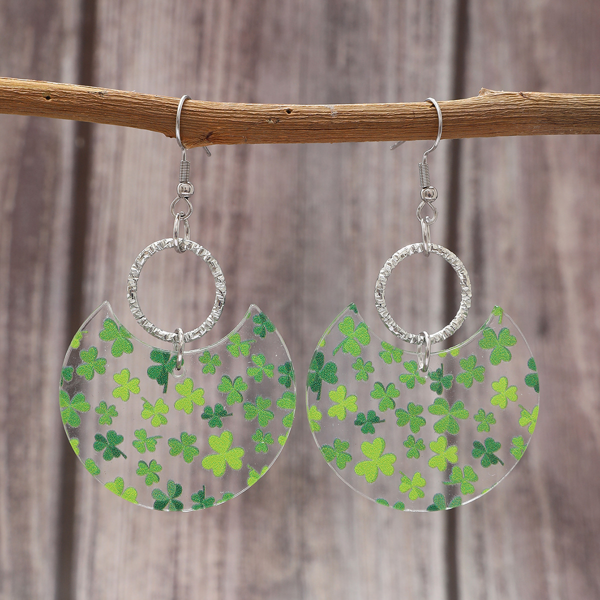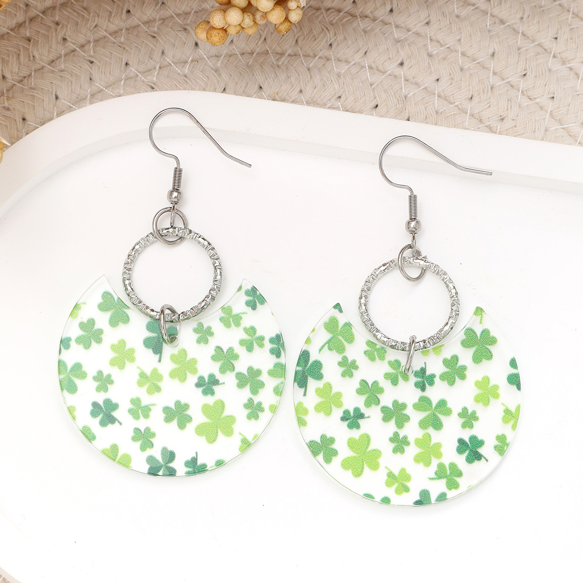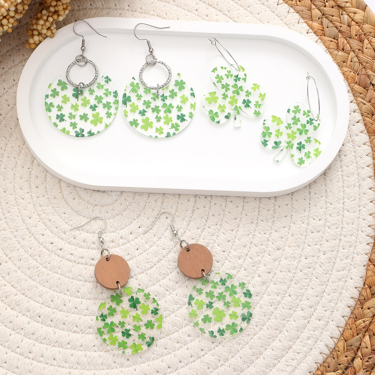 新款圣帕特里克节狂欢派对尚创意配件四叶草耳环亚克力欧美耳坠